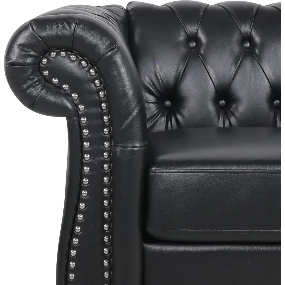 - Chesterfield Style: Designed With The Traditional Chesterfield Style Of The Tufted Leather Sofa, The Couch Brings An Atmosphere Of Luxury With Tufted Deep Button, Nailhead Accents, Scrolled Arms.
