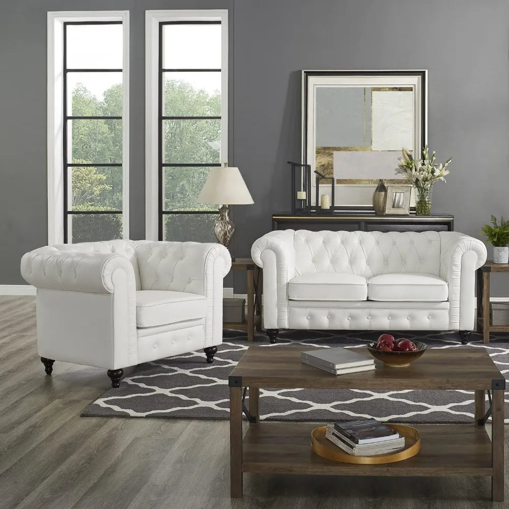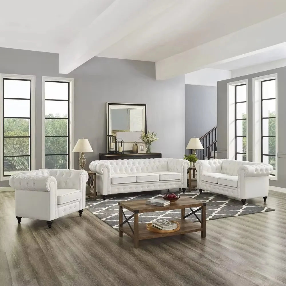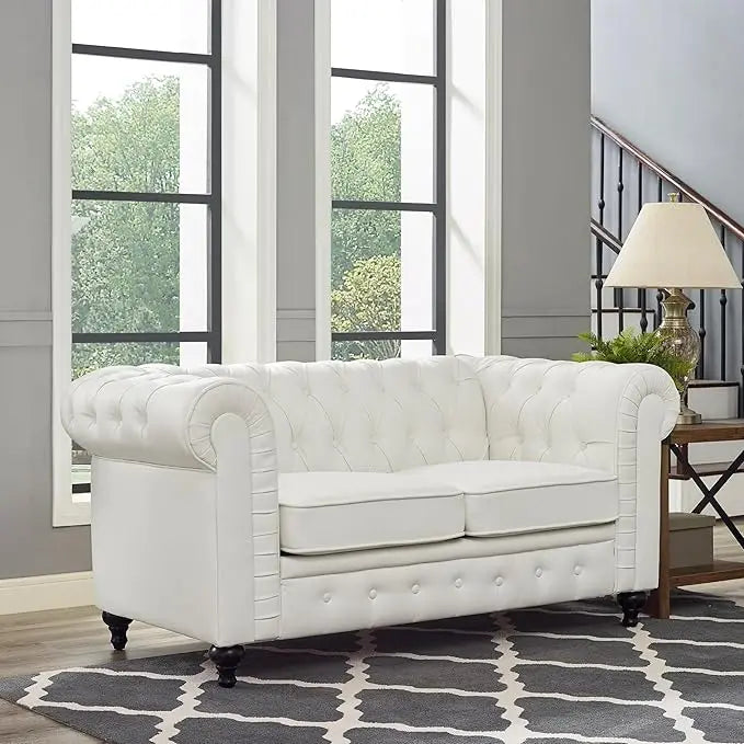 - ULTIMATE COMFORT IN YOUR SPACE: Made with High quality Faux Leather High resiliency foam, the Chesterfied Faux Leather Couch sofa set will be the epitome of comfort in your hoeme. No-Sag base and Tufted arm and back support means everyone is comfortable.