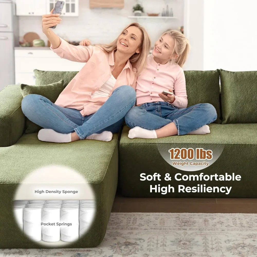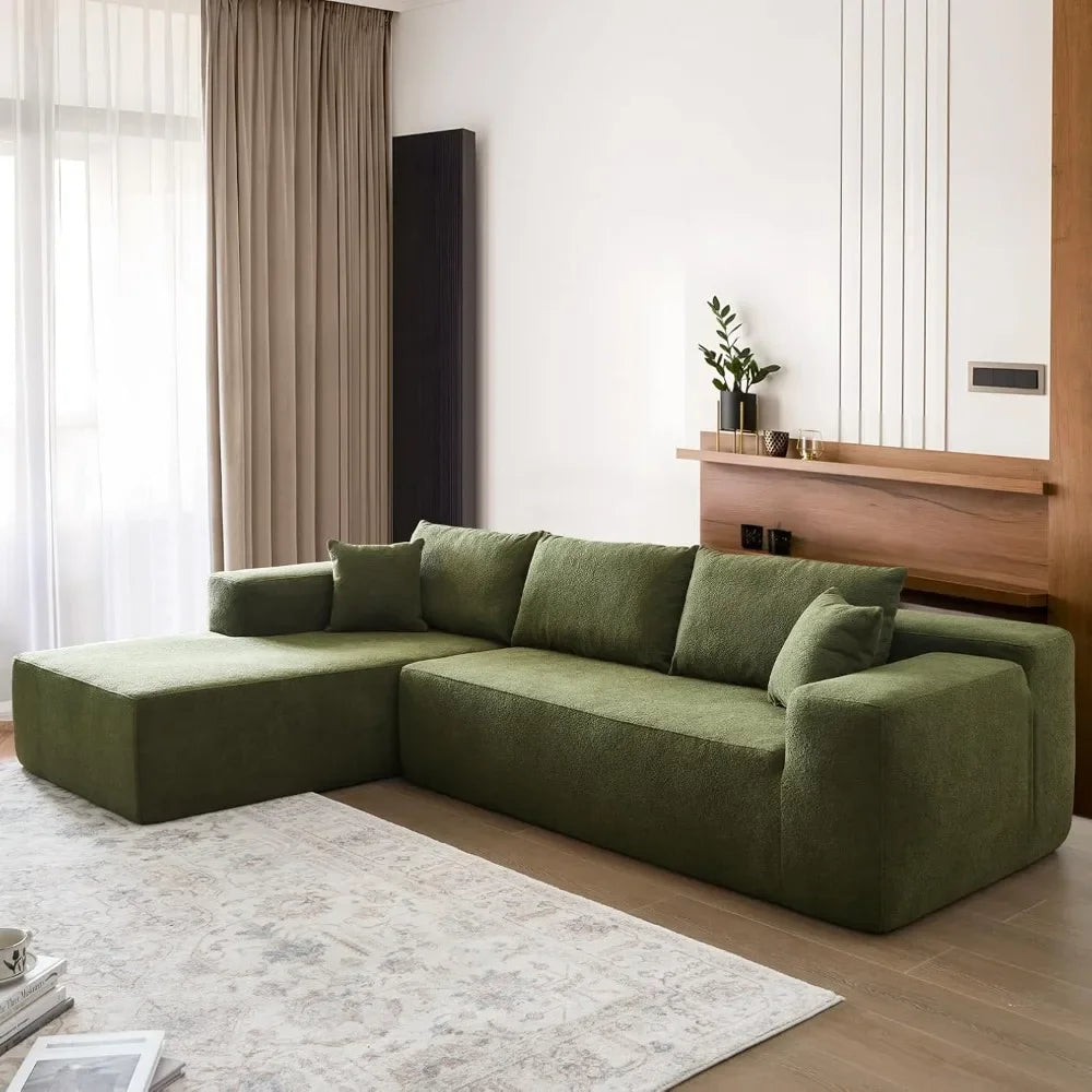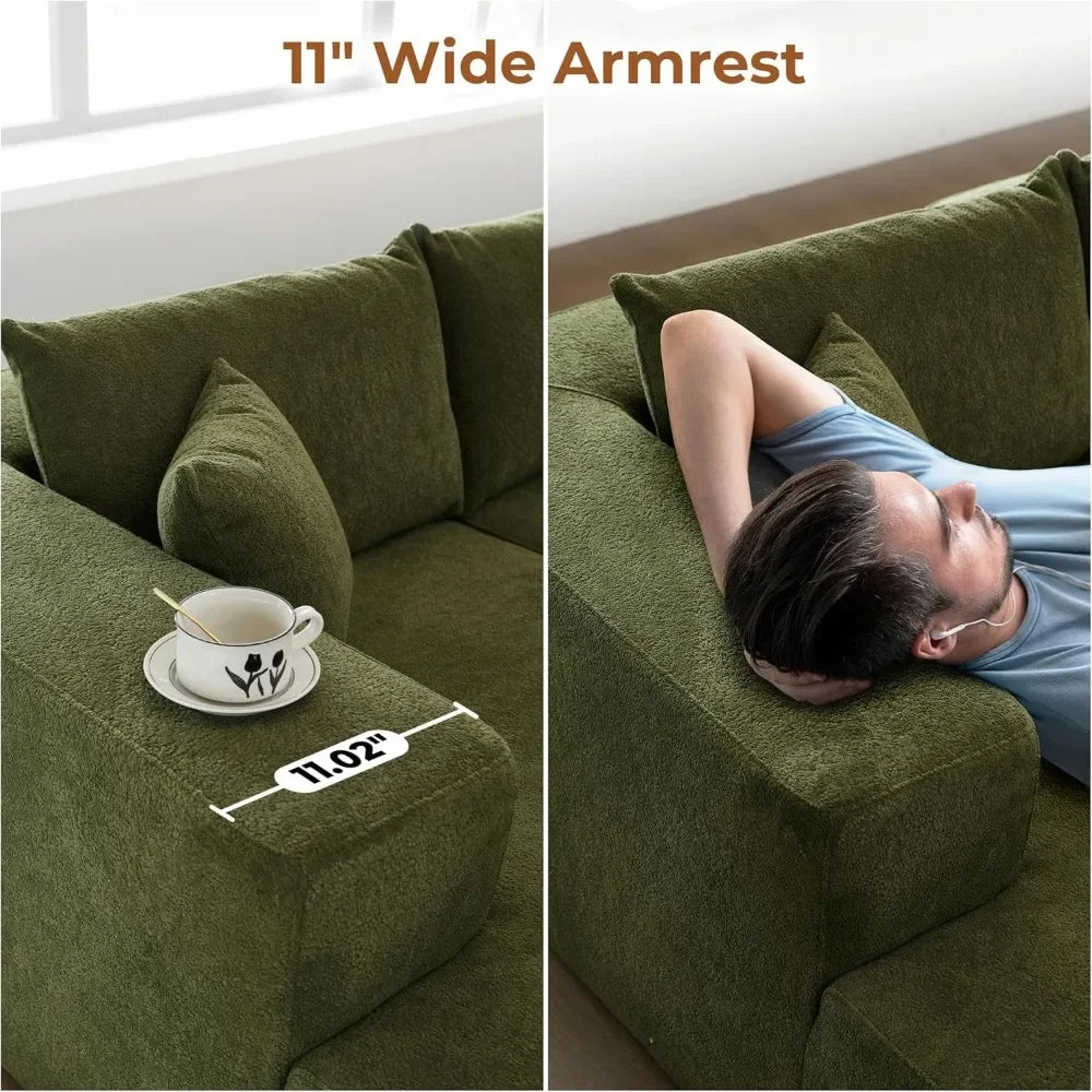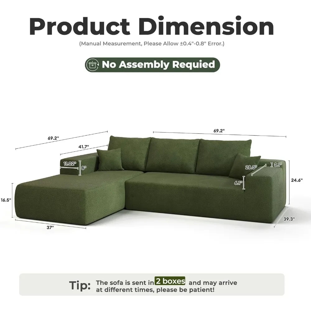 Cloud shaped sofa with comfortable lounge chair, no need to assemble deep seated L-shaped sofa, minimalist living room design