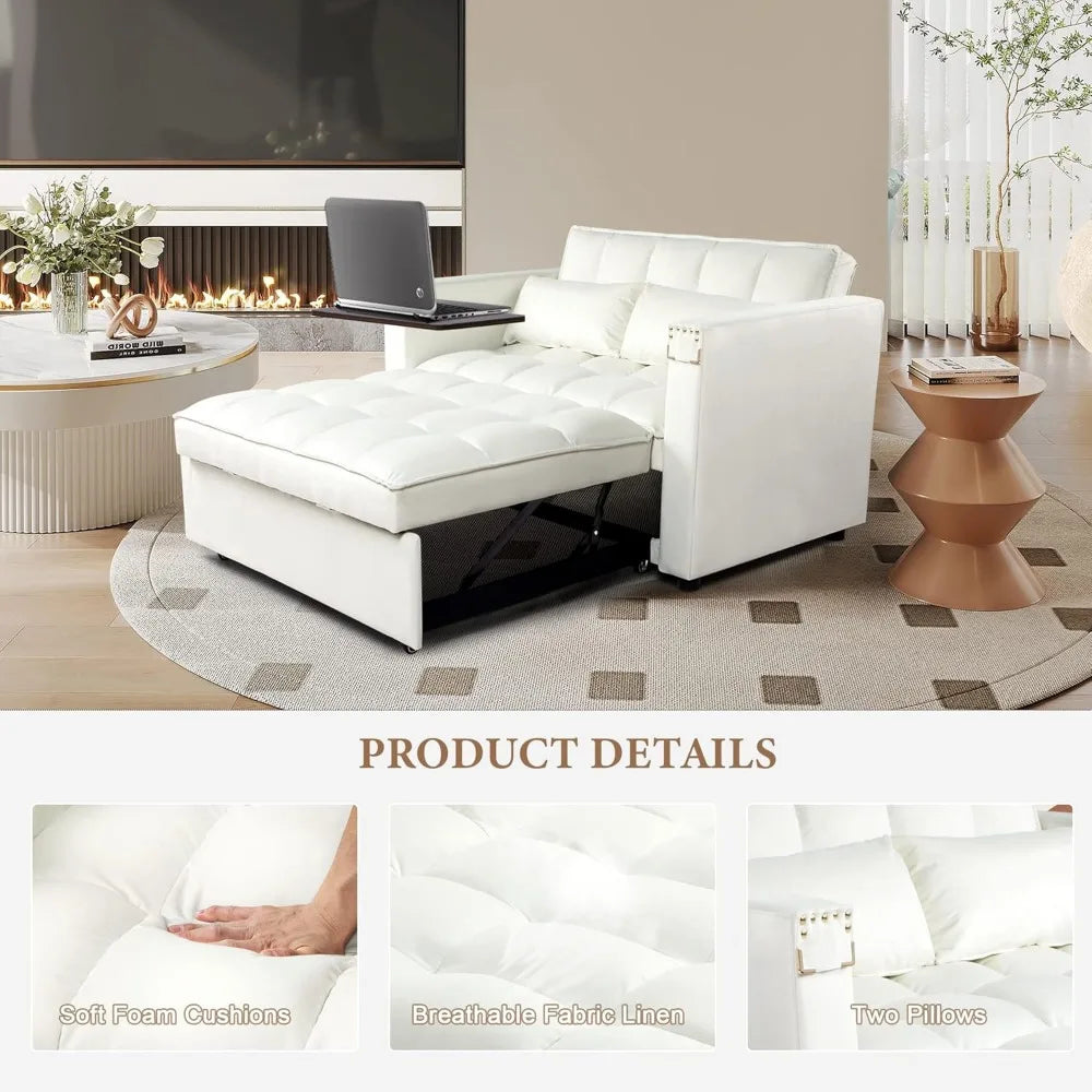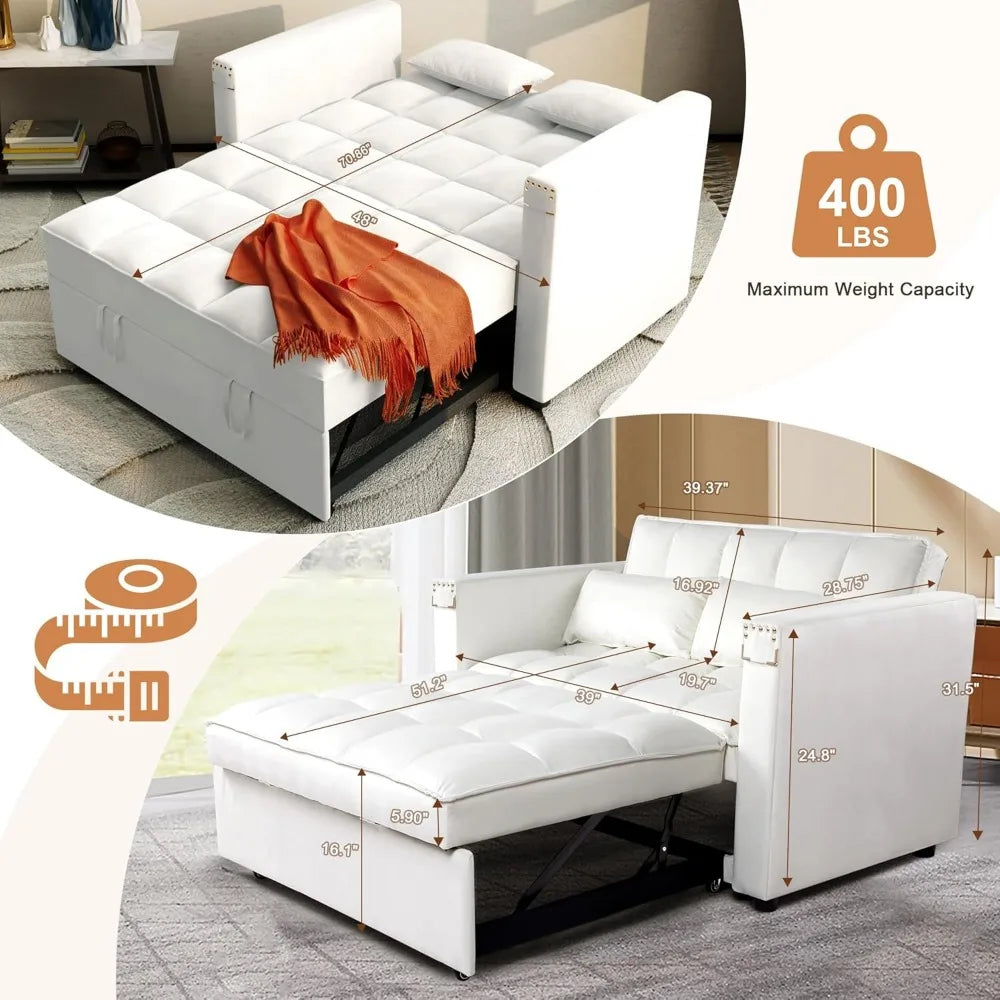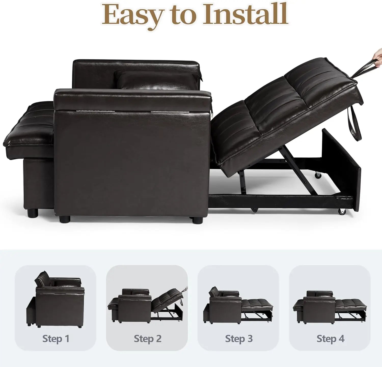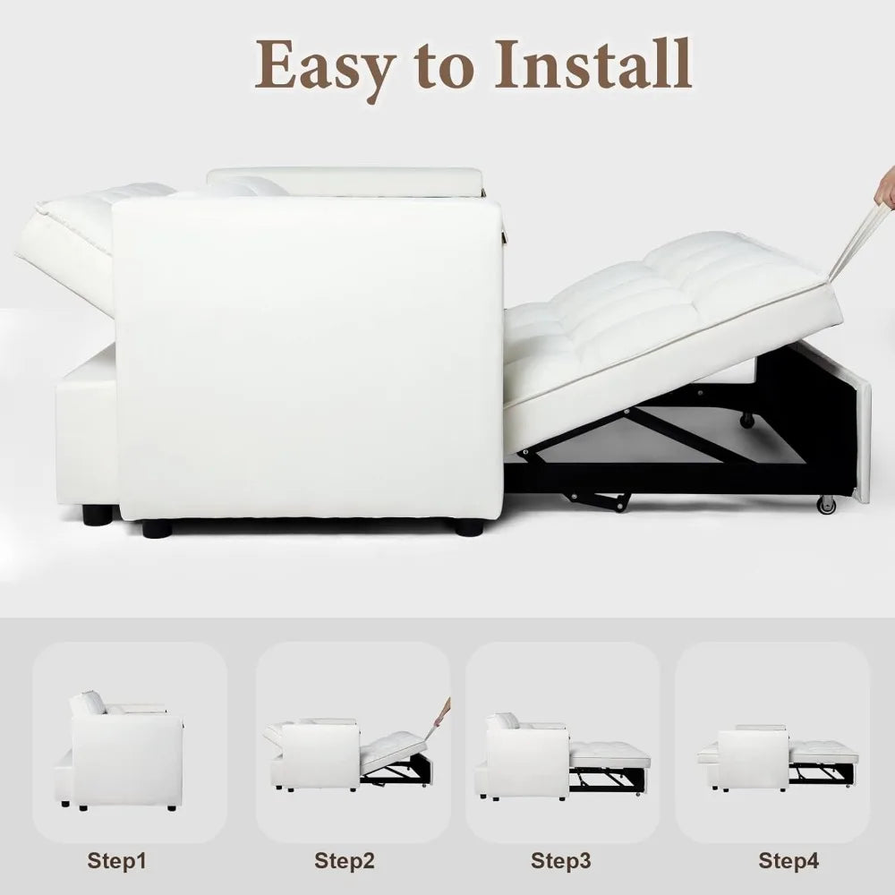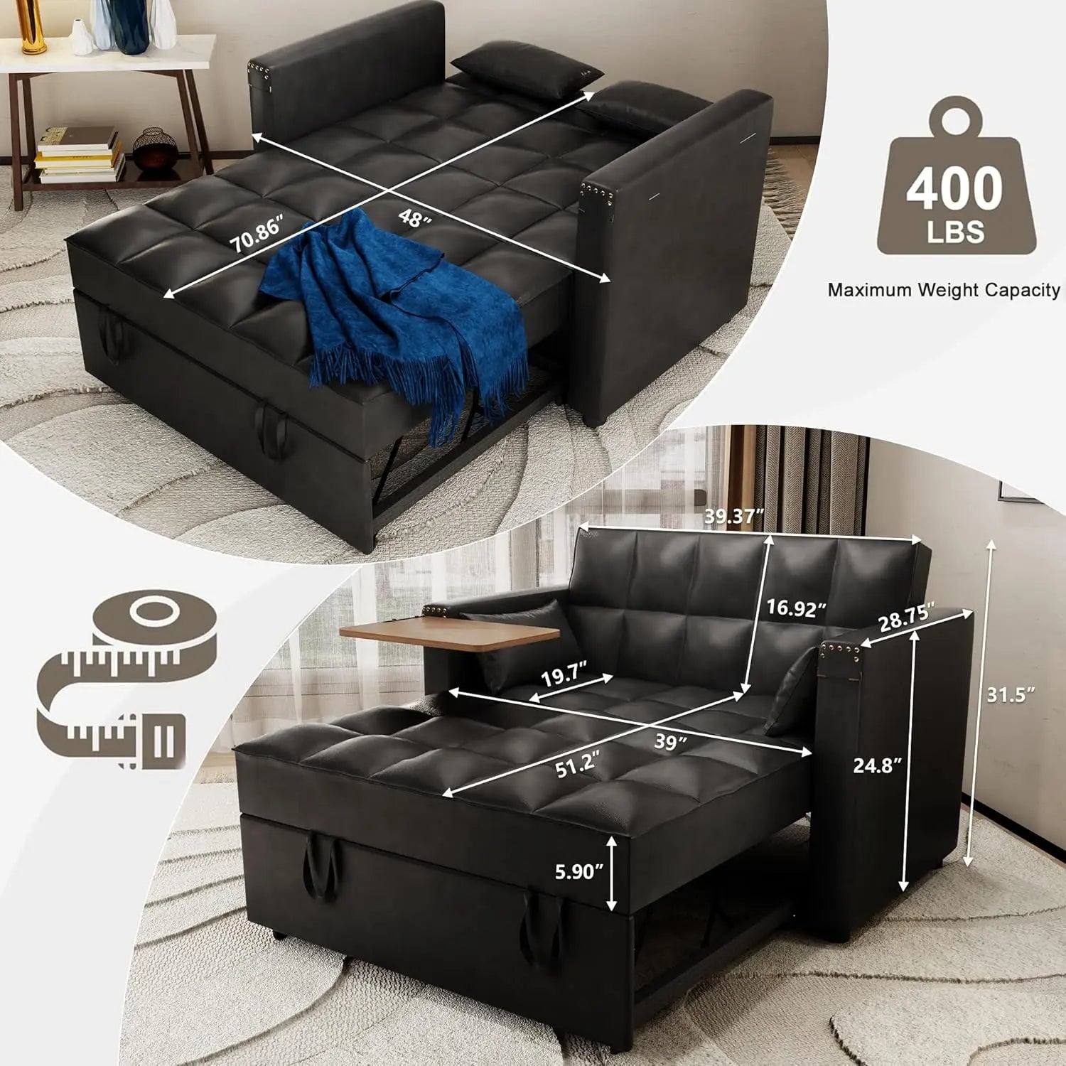 - Hidden Side Table: The sofa bed is also designed with a hidden side table that provides a flat surface for making your work and life more convenient. In addition to its multi-functional design, this 3-in-1 sleeper chair bed is made of a high-quality steel frame and wood that is durable enough for daily use and can hold 400 pounds.