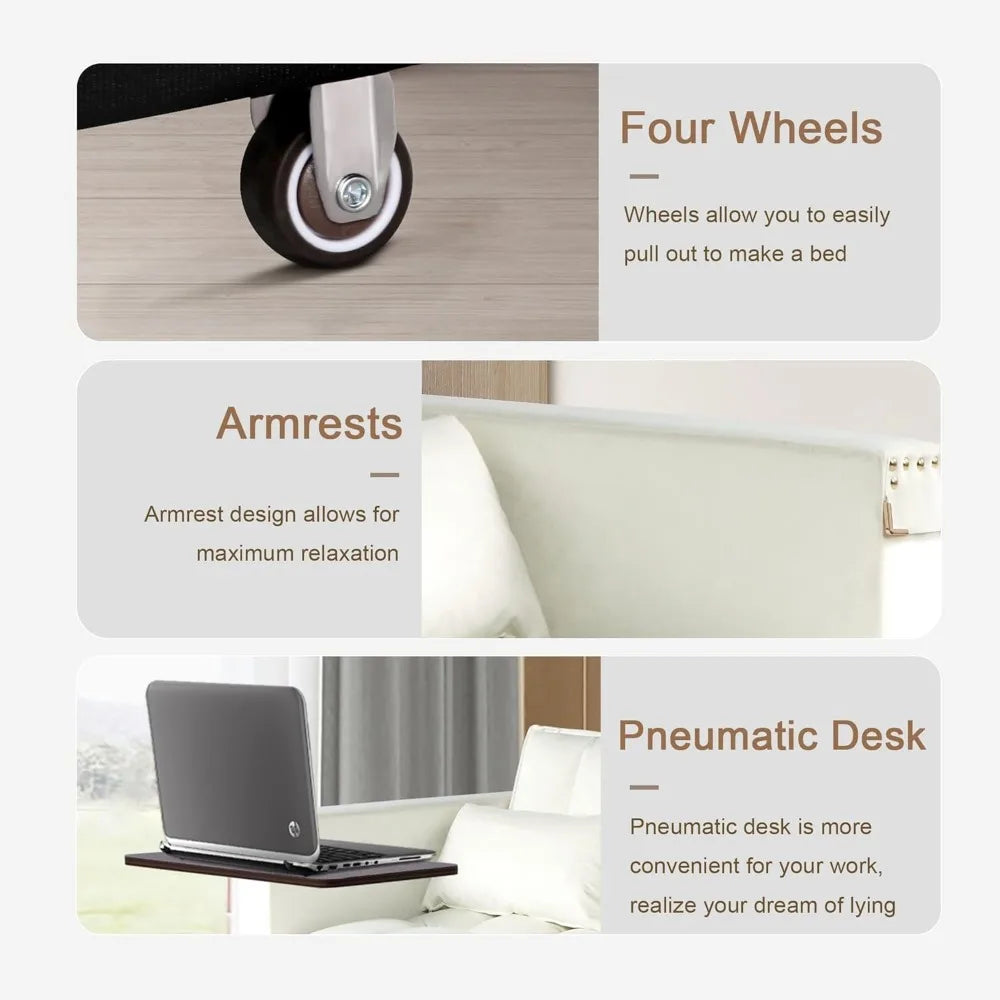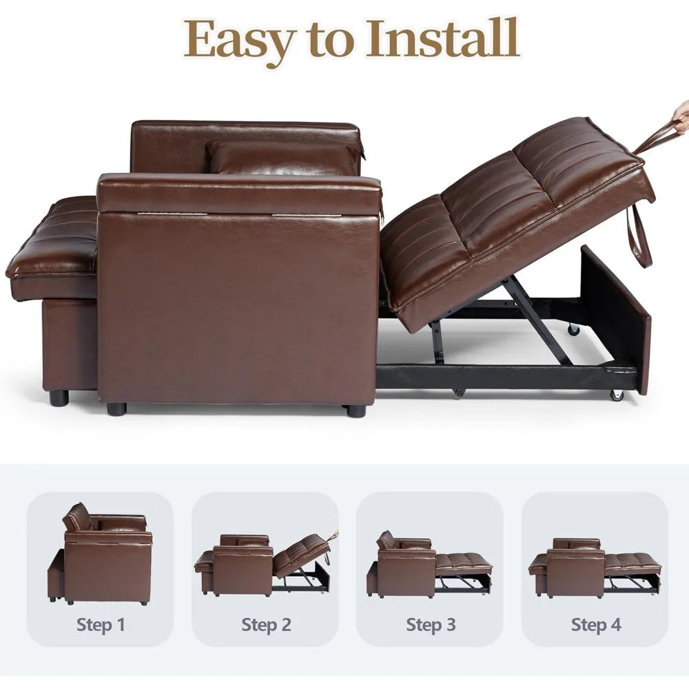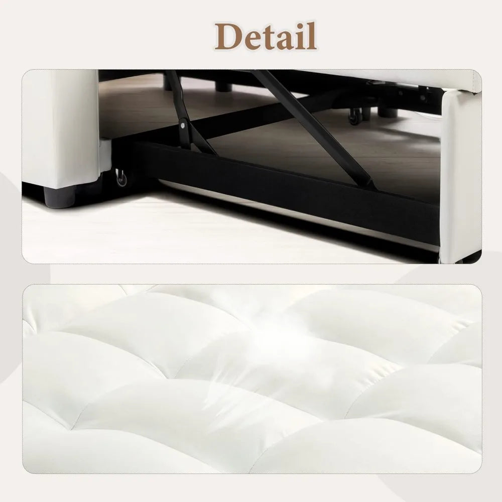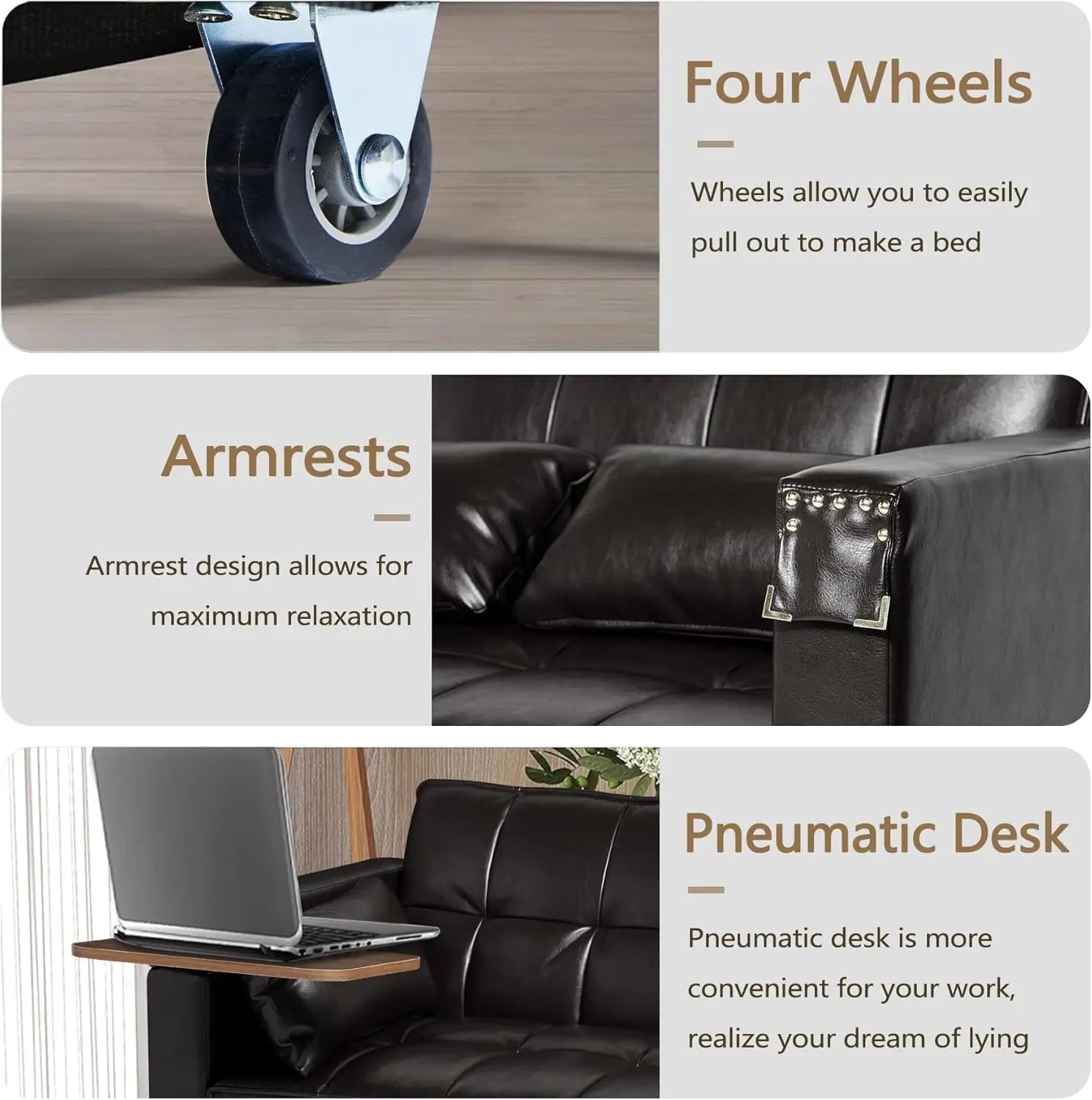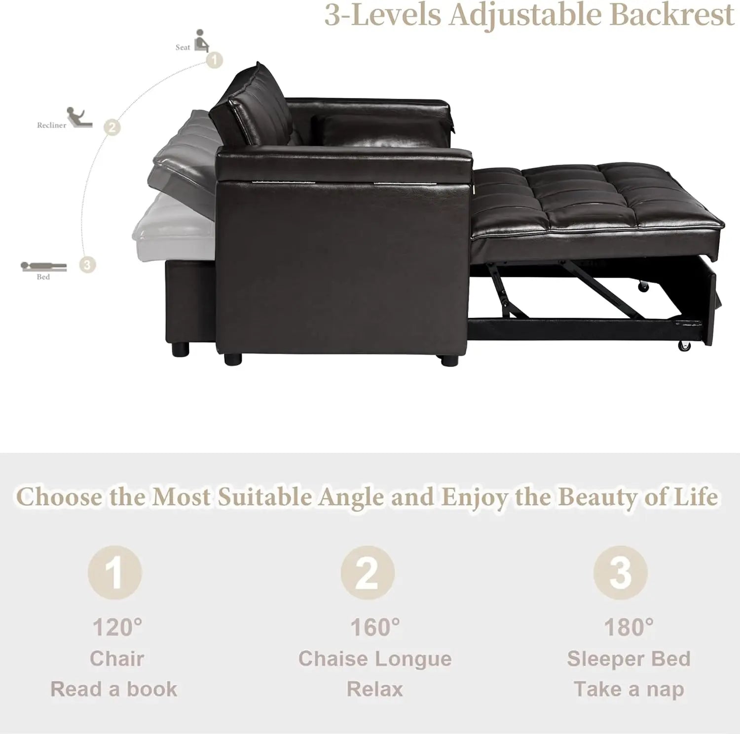 - Hidden Side Table: The sofa bed is also designed with a hidden side table that provides a flat surface for making your work and life more convenient. In addition to its multi-functional design, this 3-in-1 sleeper chair bed is made of a high-quality steel frame and wood that is durable enough for daily use and can hold 400 pounds.