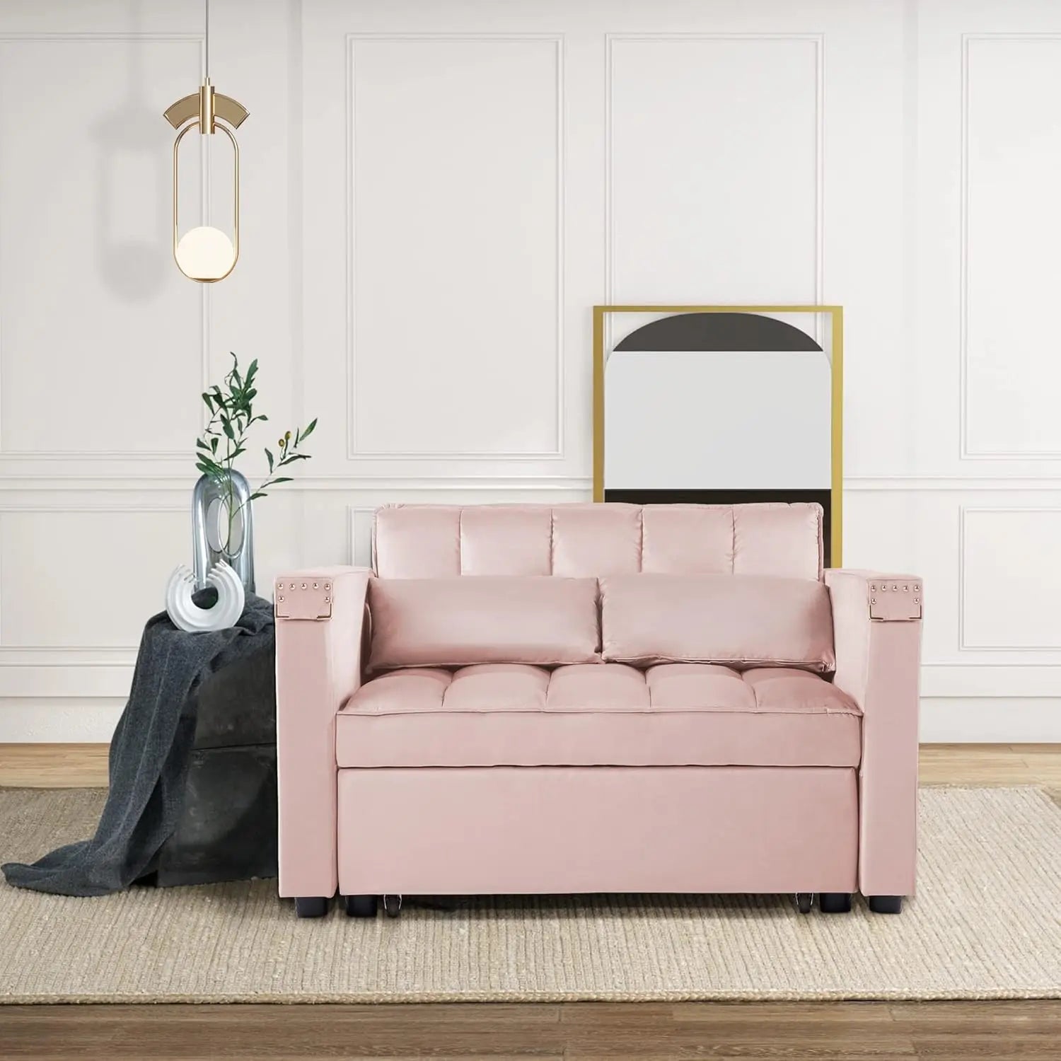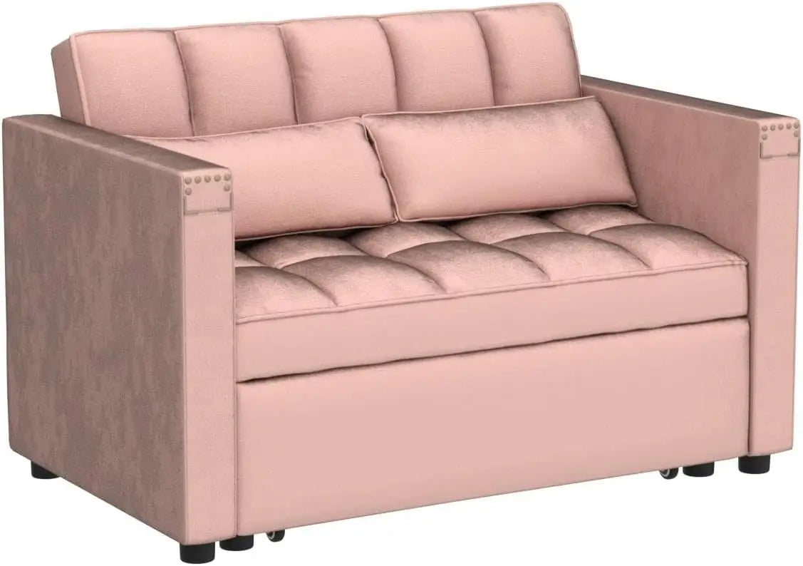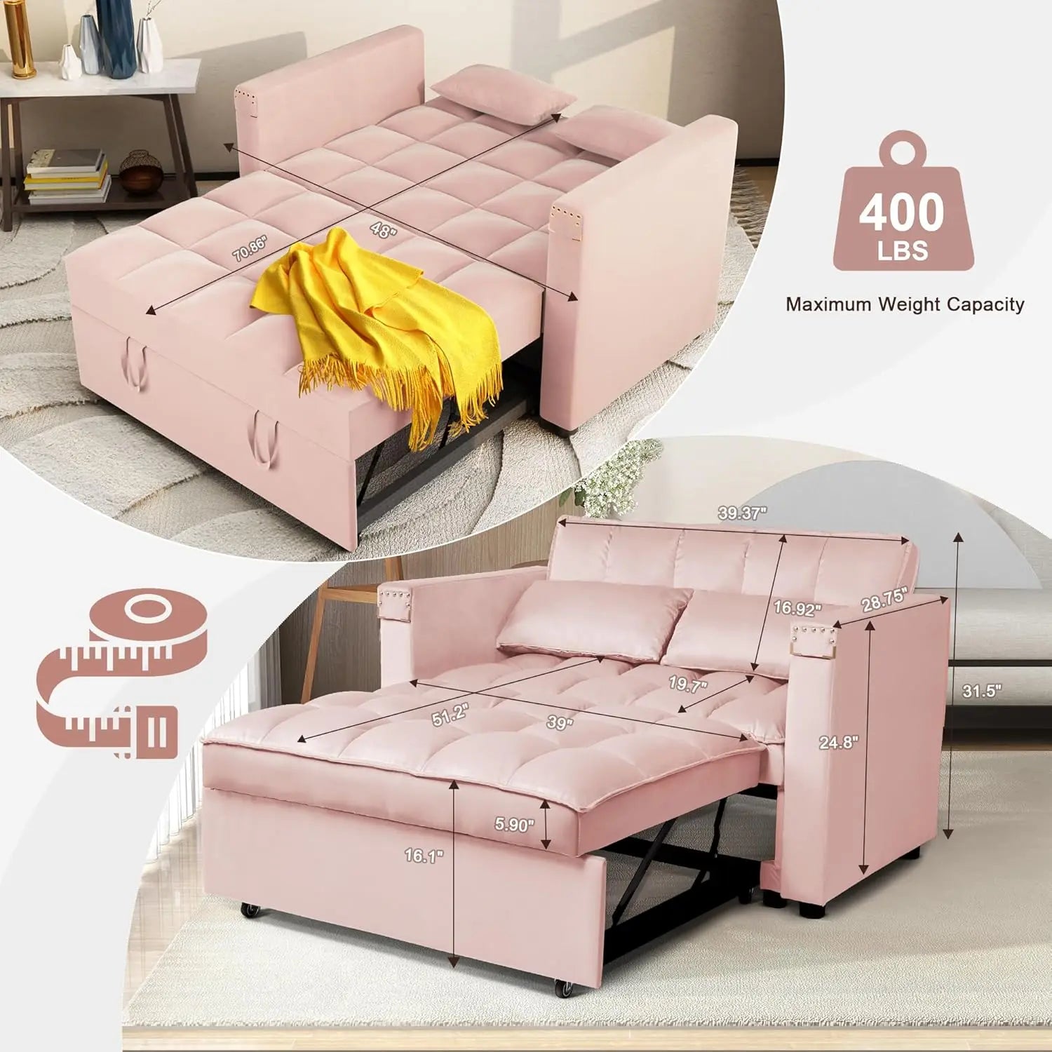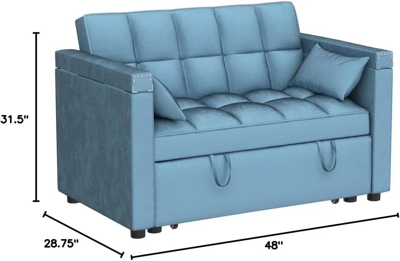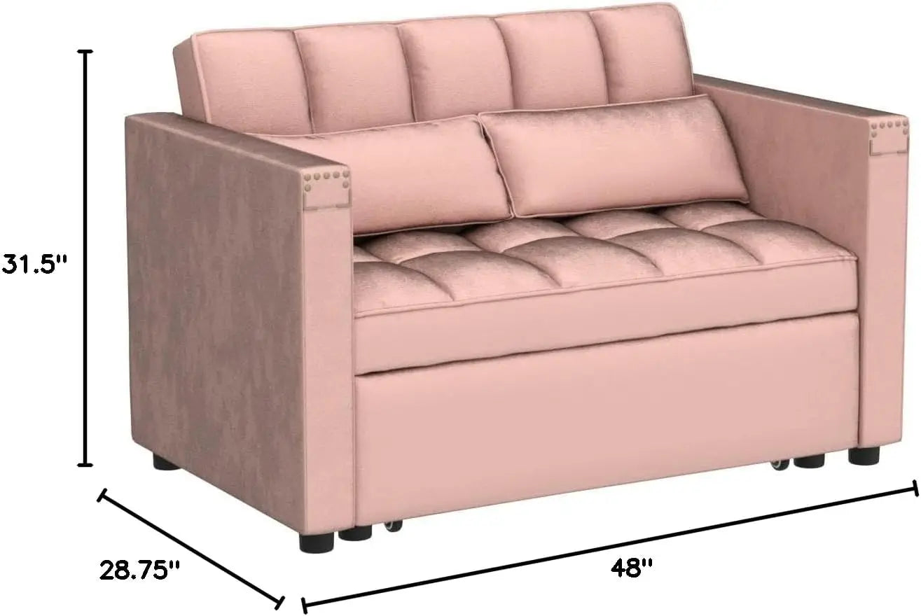 Convertible Sofa Bed 3-in-1 Multi-Functional Velvet Sleeper Couch Pull-Out Bed, 48'' Bed Chaise Lounge with Backrest and Pillows