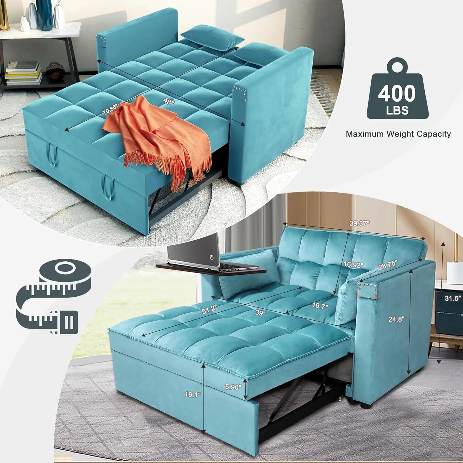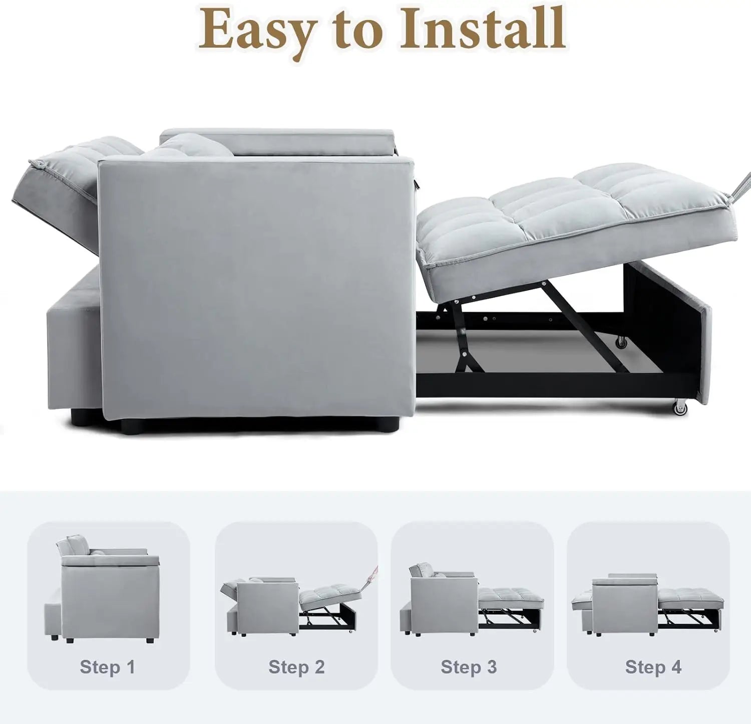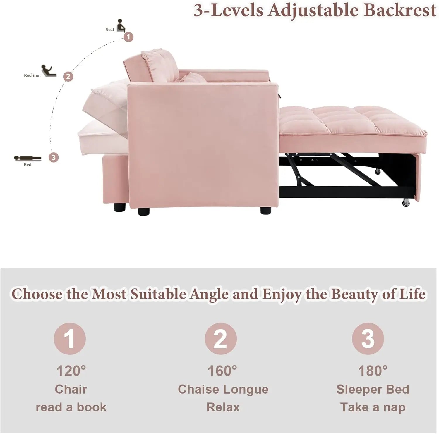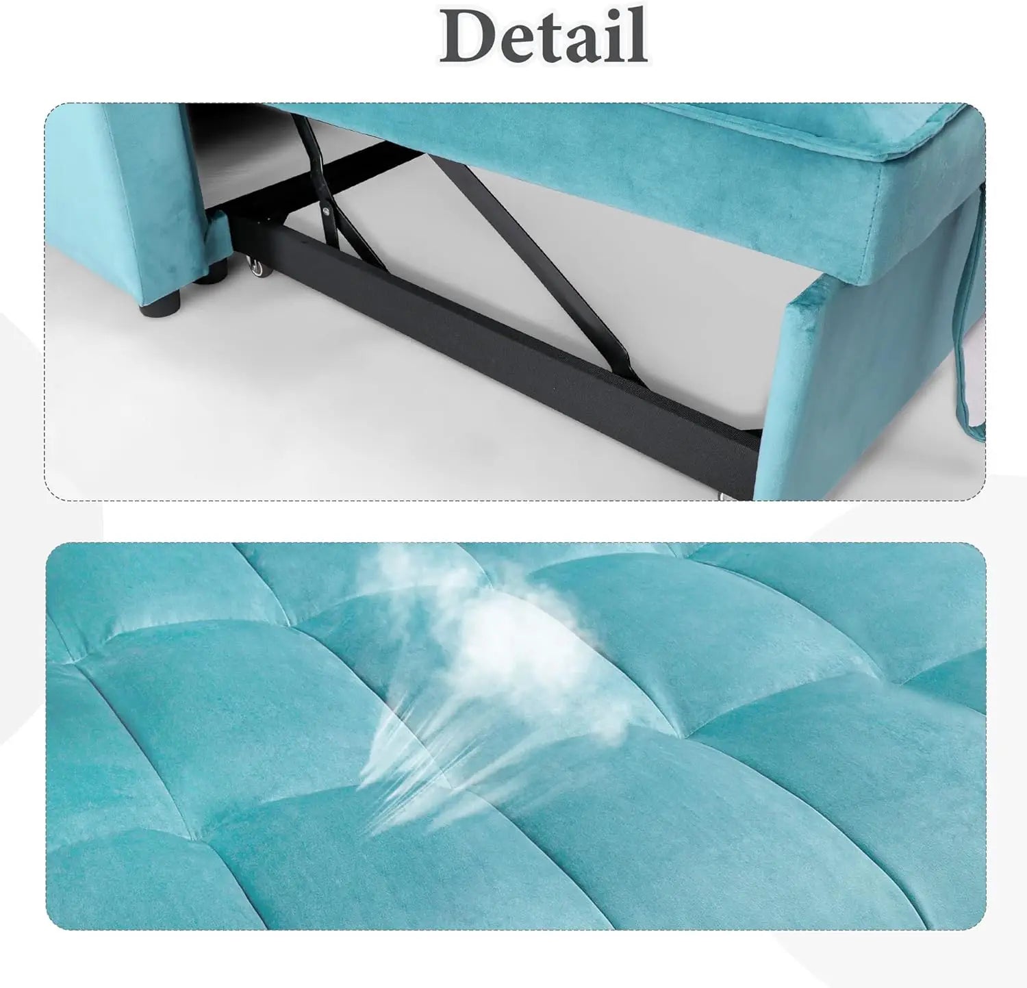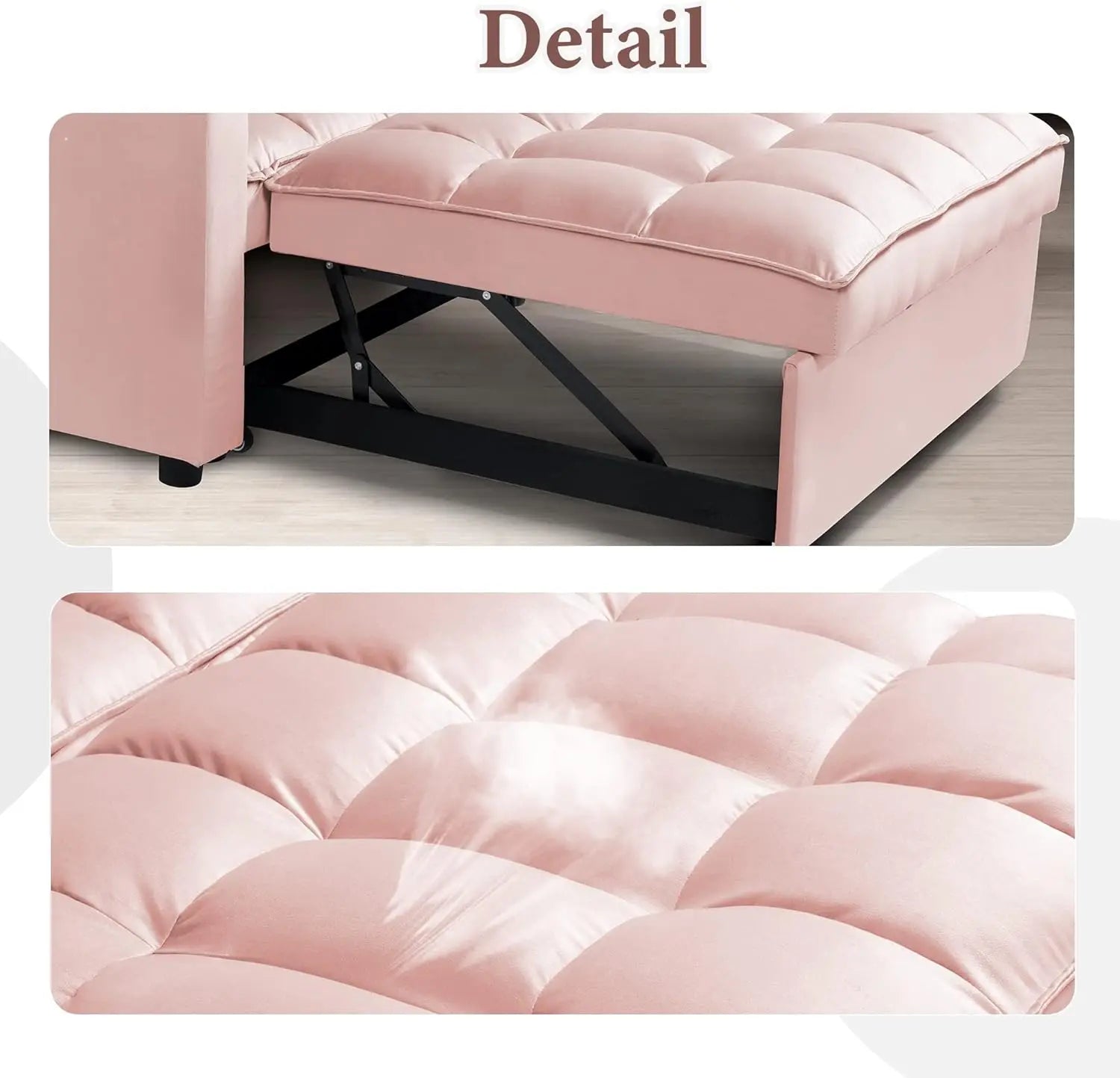 - 3-in-1 Convertible: The velvet sleeper sofa bed can easily be converted into an armchair, a guest bed, and a recliner to suit your needs, which is very suitable for dormitories, apartments, offices, and small spaces. The sofa bed is your best choice if you're looking for a multifunctional loveseat, it will provide you with various surprises.