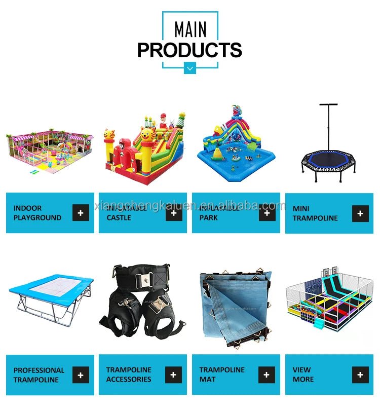 Xiangcheng Kaluen Amusement Equipment Factory is a professional manufacturer. Mainly produce Trampoline park, Indoor playground castle, Steel frame trampoline, Kids bungee jumping, Bungee safety harness and elastic rope, trampoline jumping fabric and so on