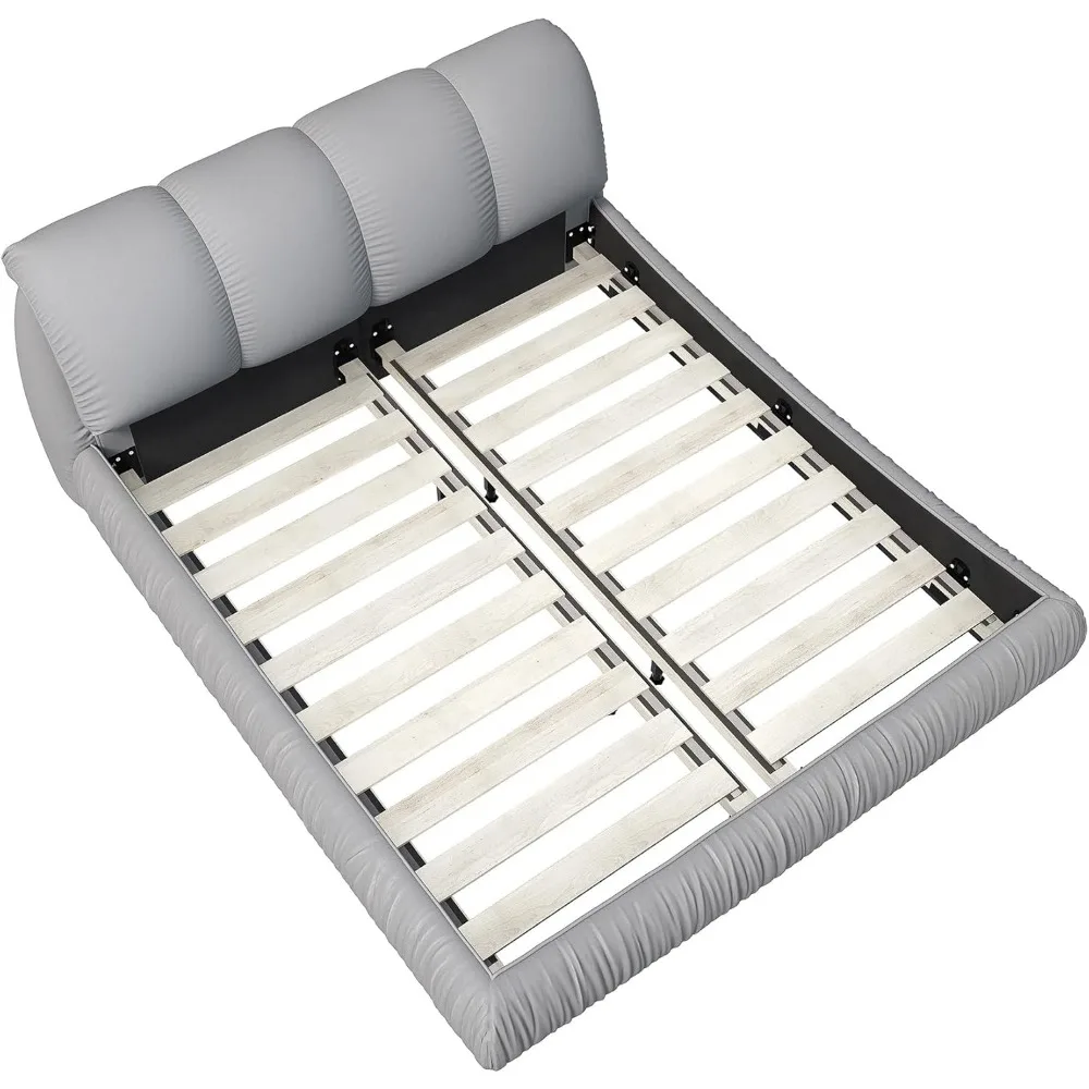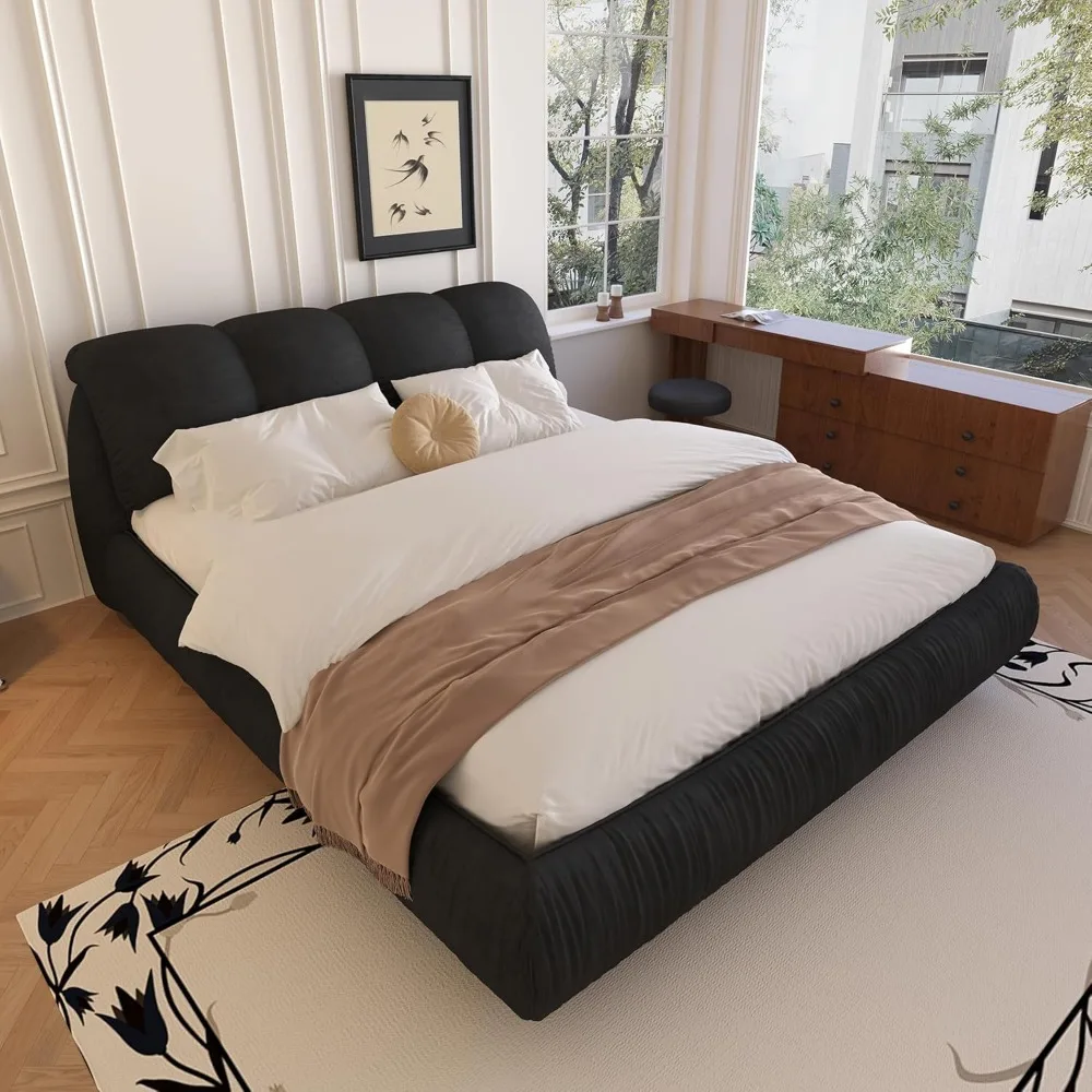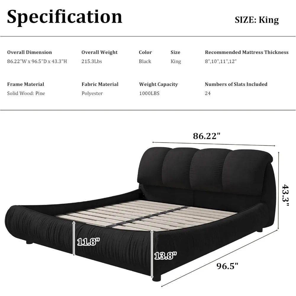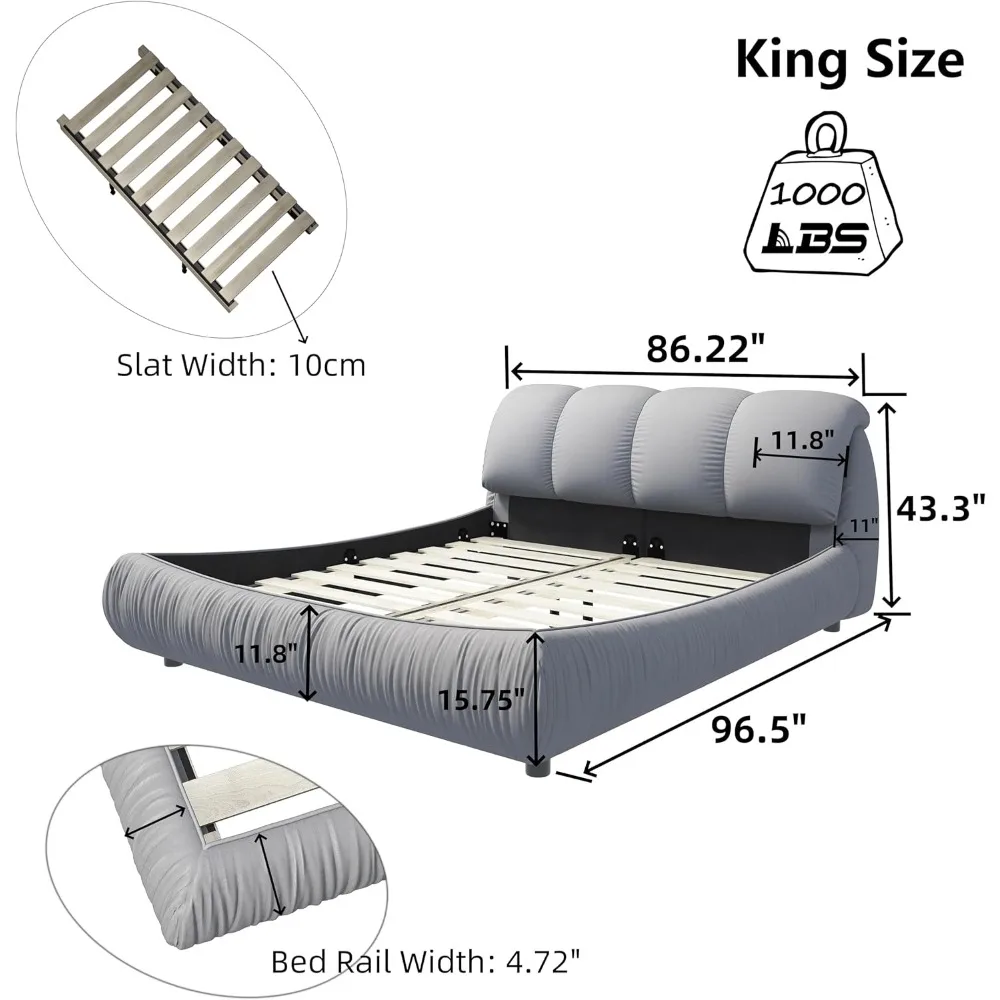 Deluxe king-size upholstered platform bed with upholstered backrest, soft-framed cloud bed, thickened pine slats, metal legs