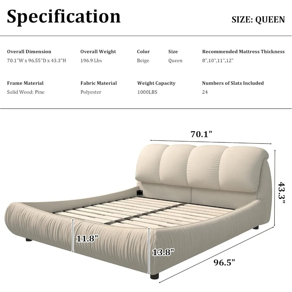 - 【High-Quality】A high-quality bed is an investment in life.With stability and strength, it provides firm support for a peaceful sleep. This unique bed will be the focal point of the bedroom when friends arrive. This beautiful padded platform bed features an oversized, ultra-soft cushioned headboard, adding a modern and chic look to your bedroom, and the thick sponge filling adds extra comfort. The sturdy solid wood frame and thickened and widened wood slat system enhance stability and safety.