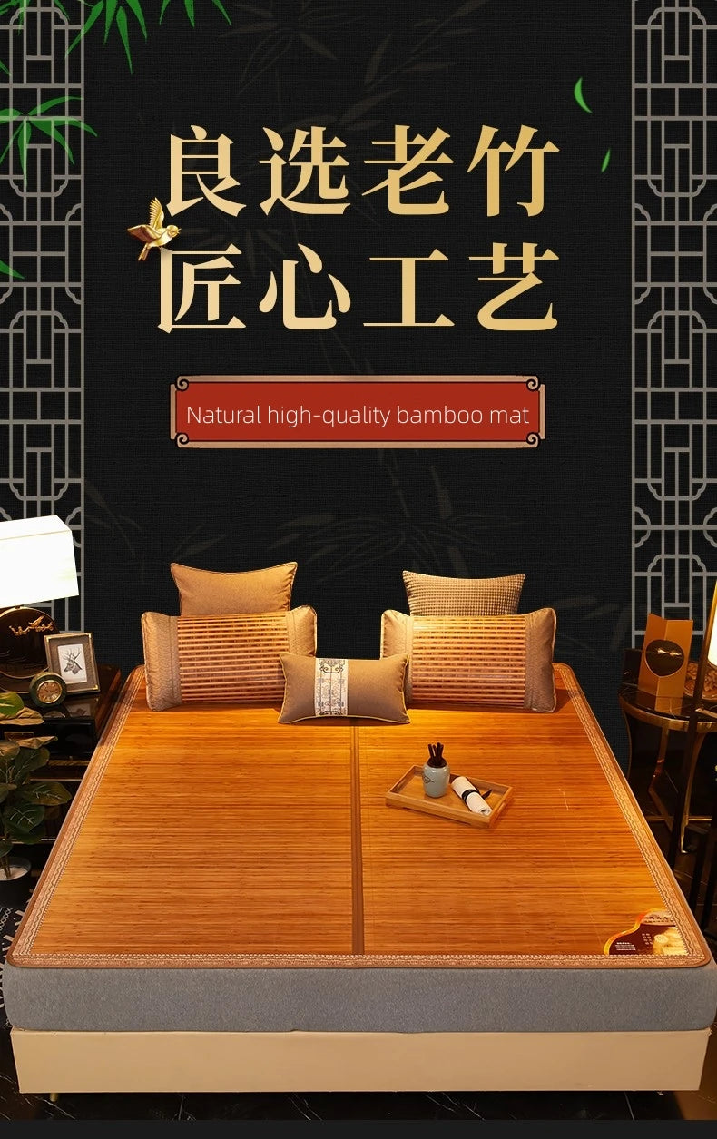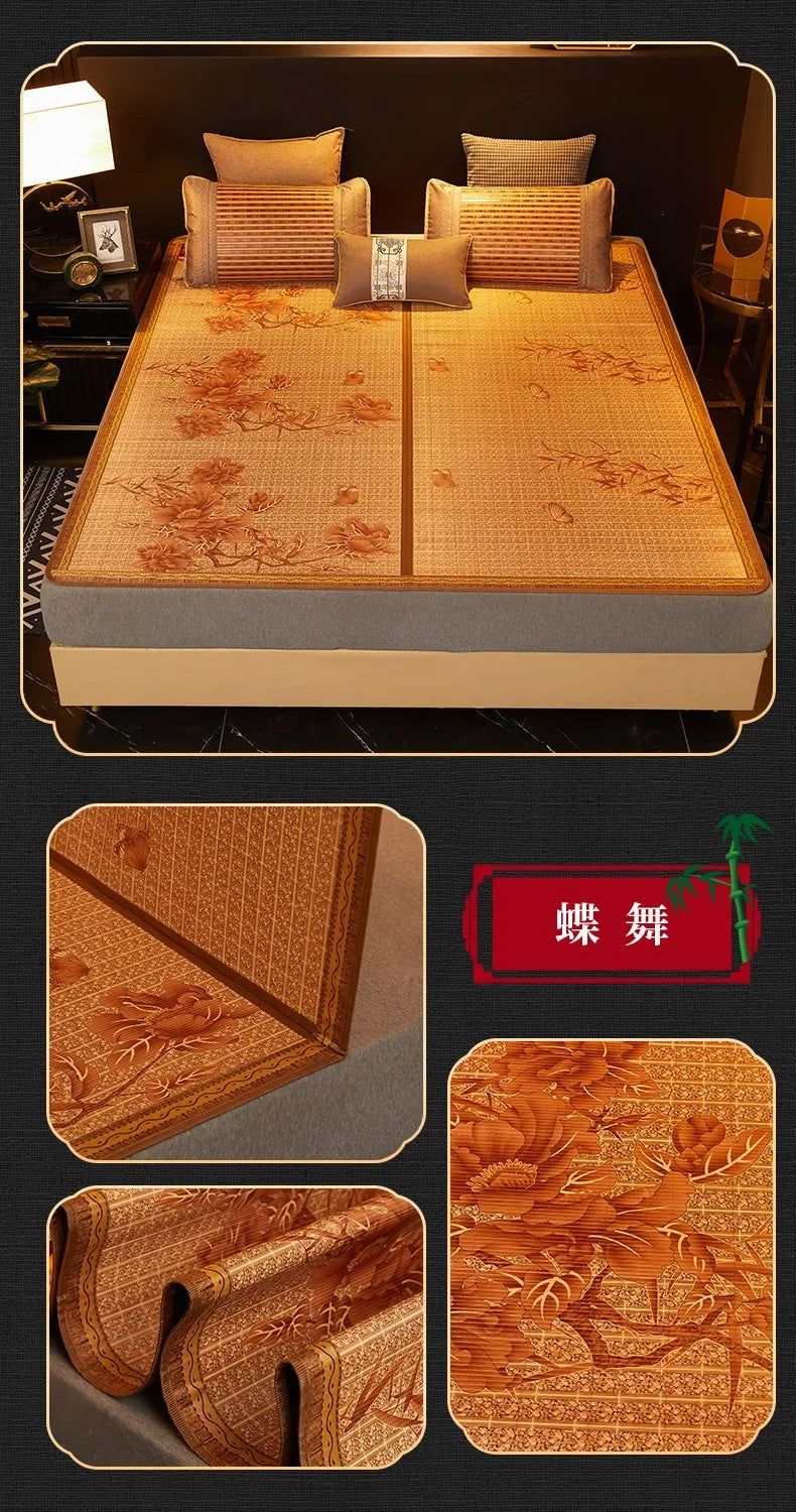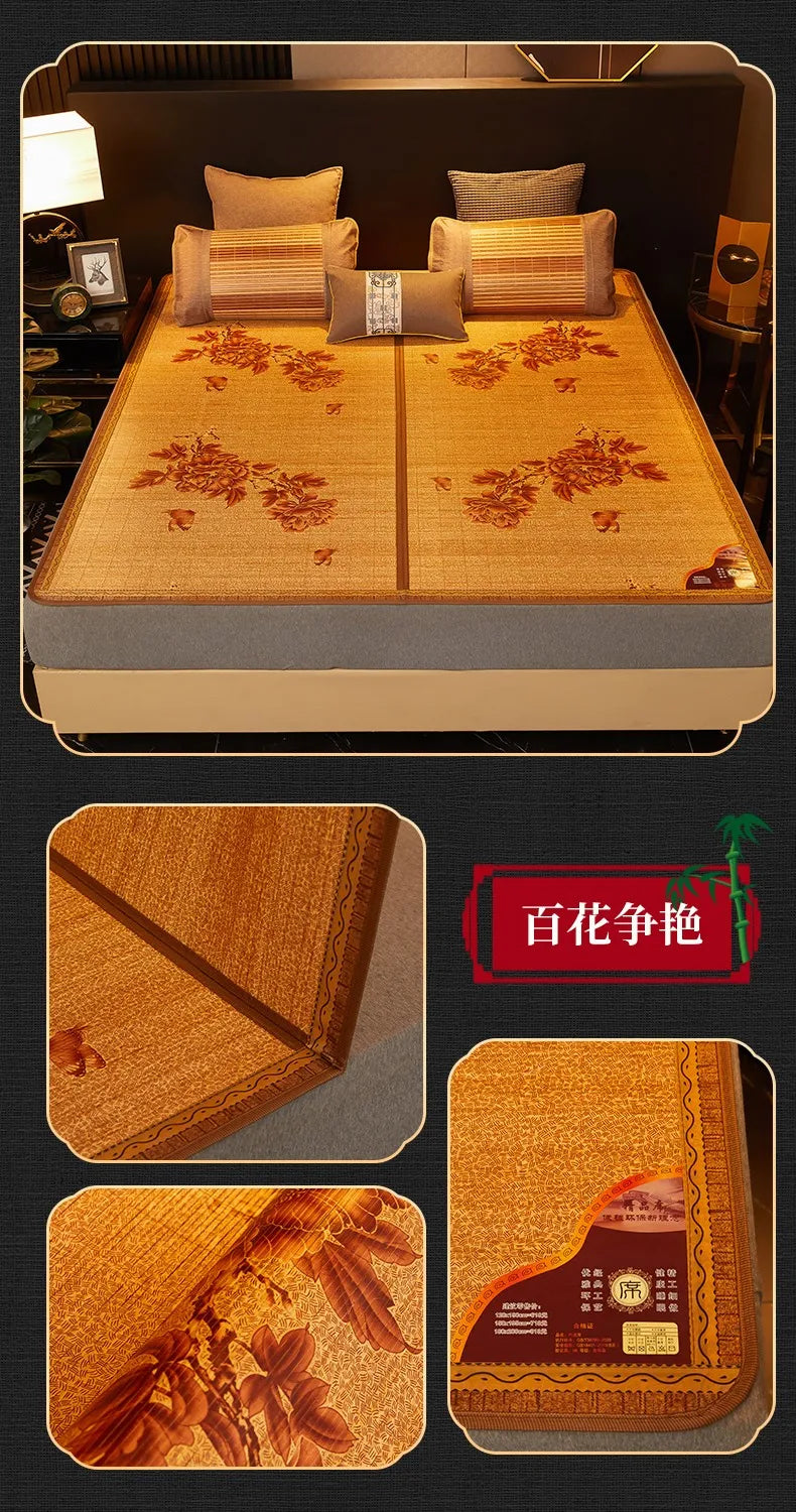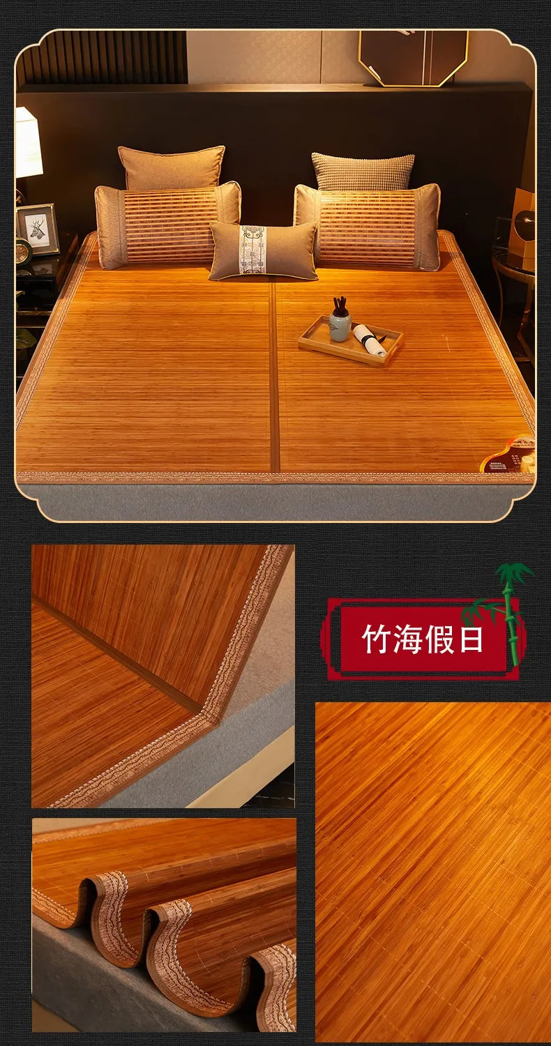 Double Fold Cool Mattress Summer Sleep Mat 100% Bamboo Mat Natural Comfortable High-quality Printed Mattress 1.8/2.0 Dormitory