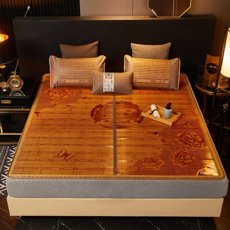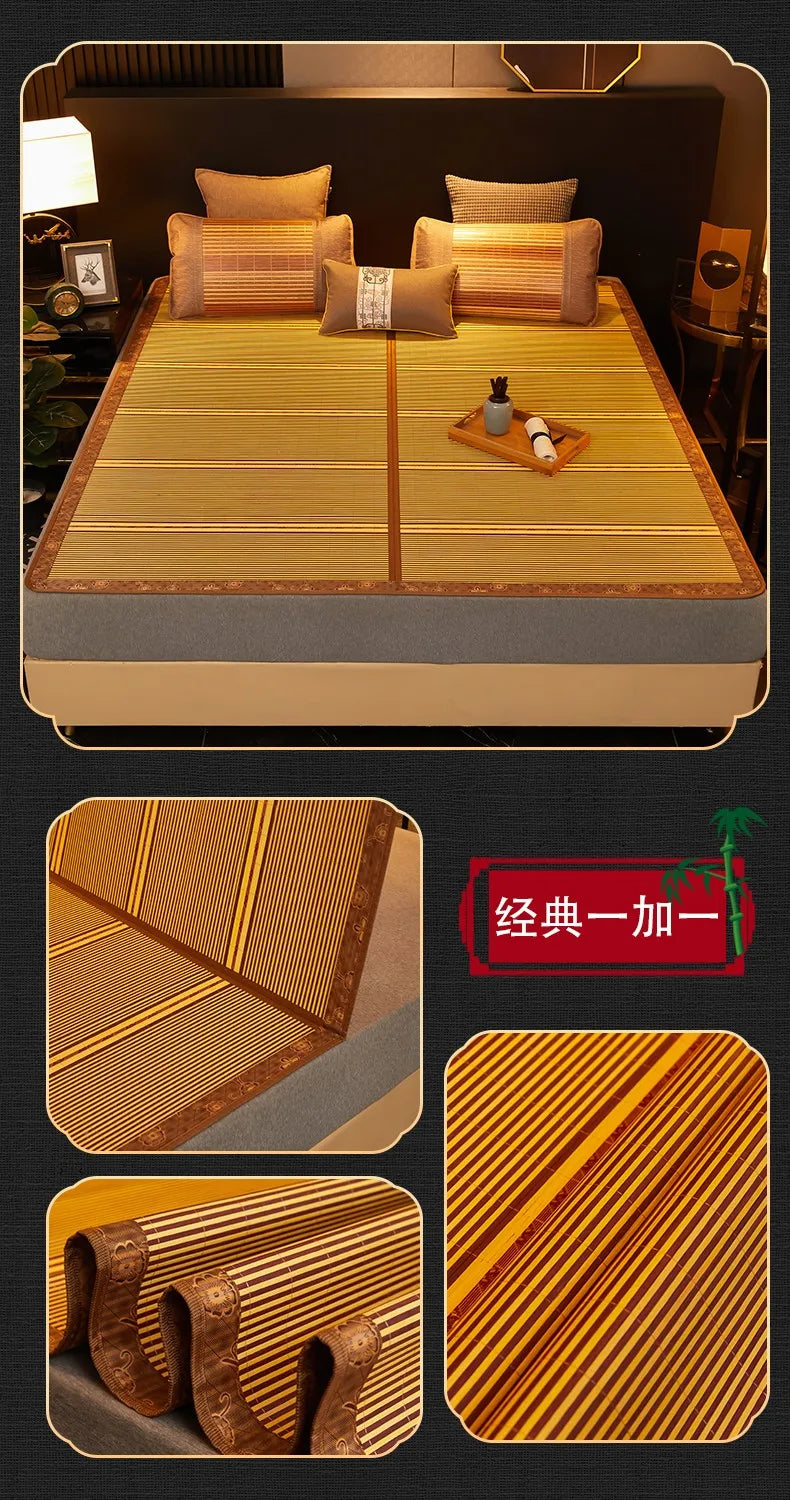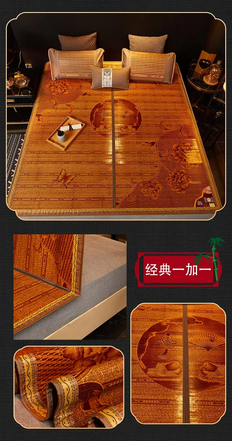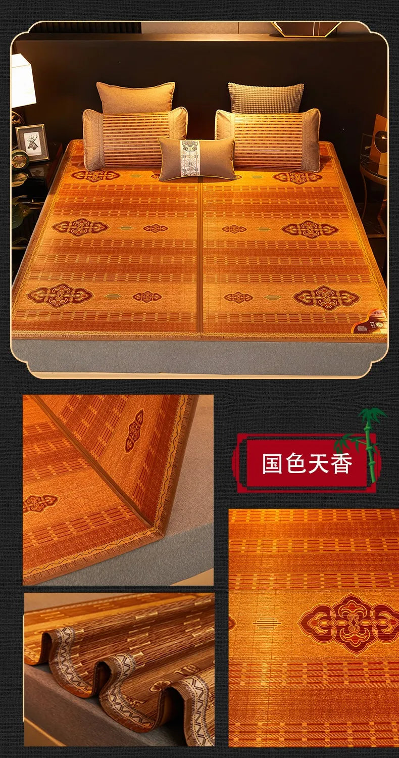 Double Fold Cool Mattress Summer Sleep Mat 100% Bamboo Mat Natural Comfortable High-quality Printed Mattress 1.8/2.0 Dormitory