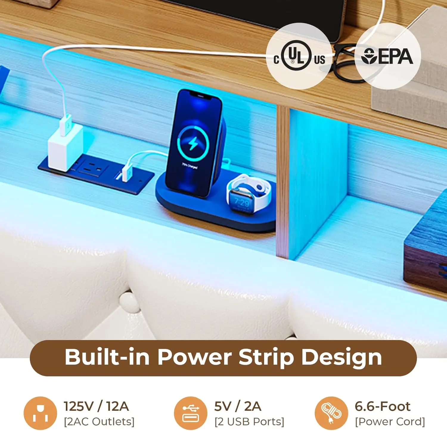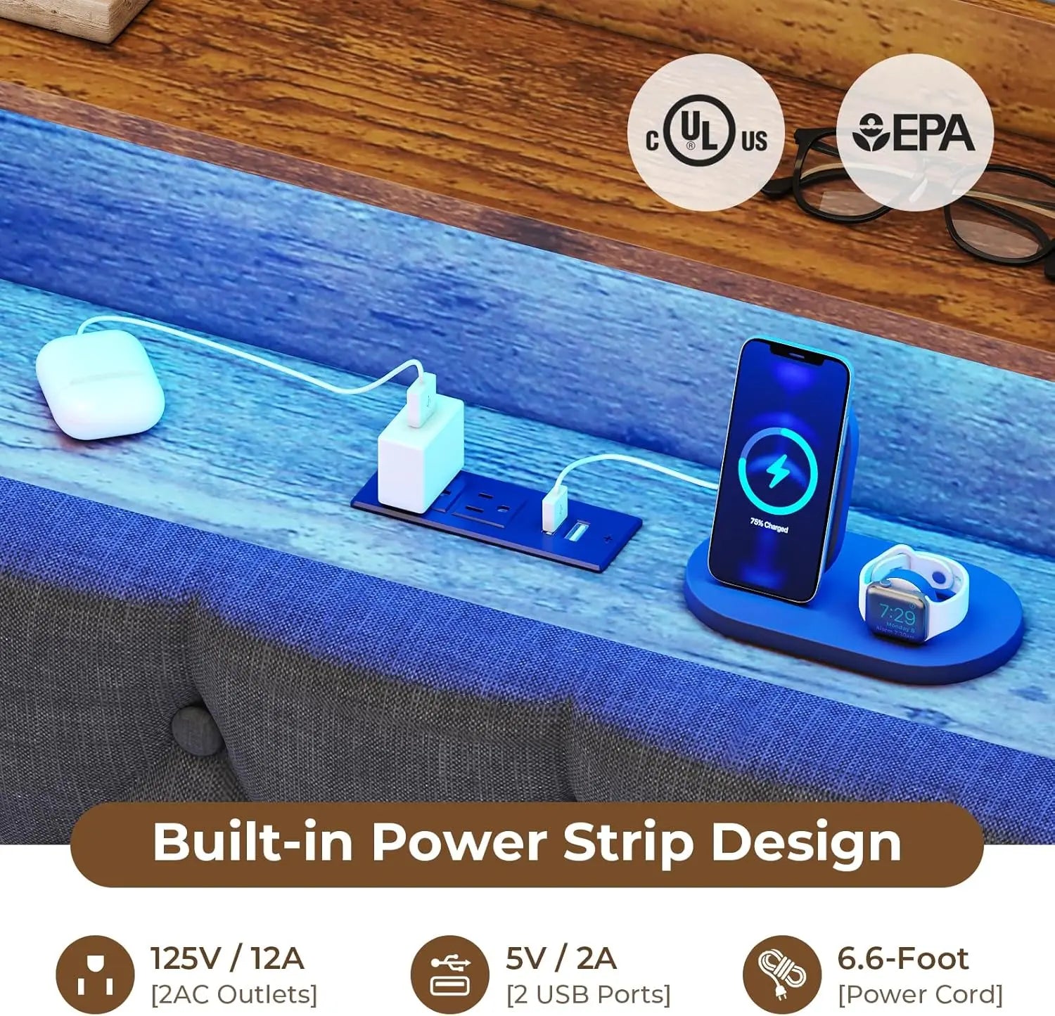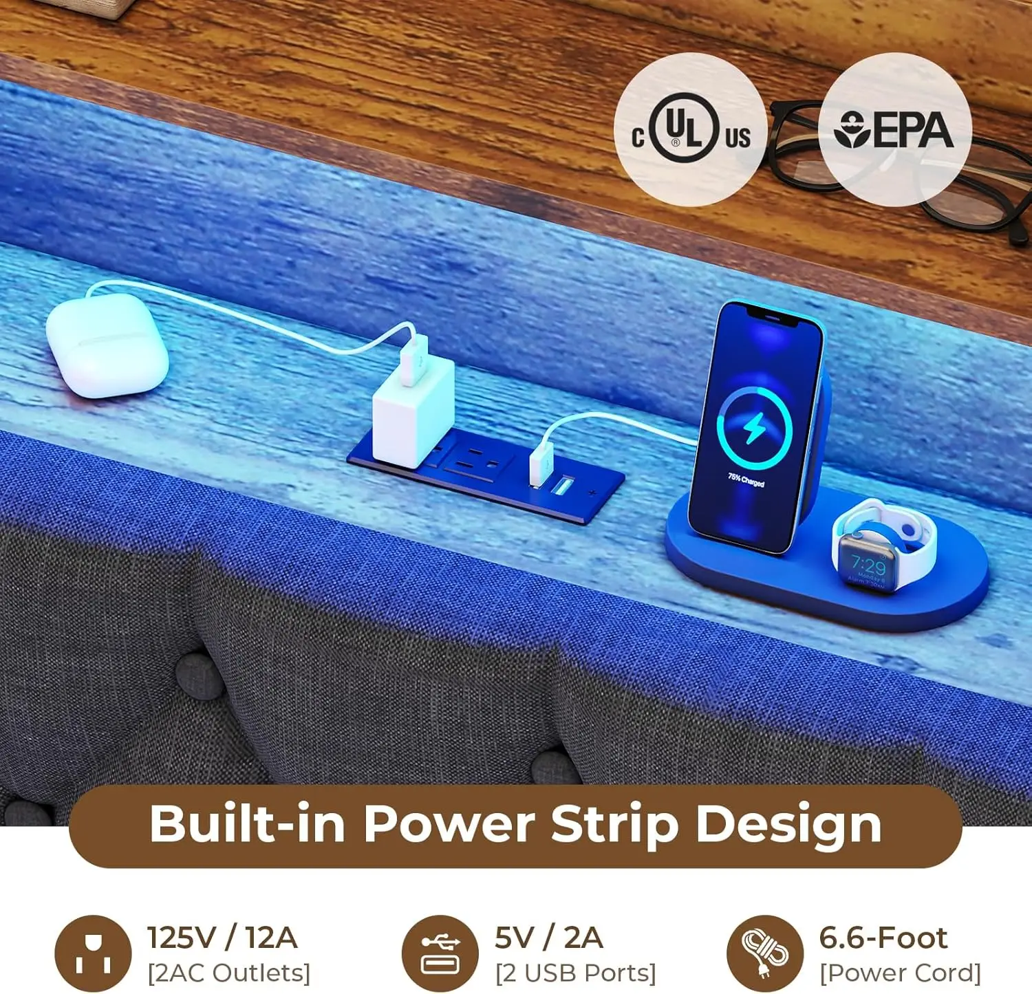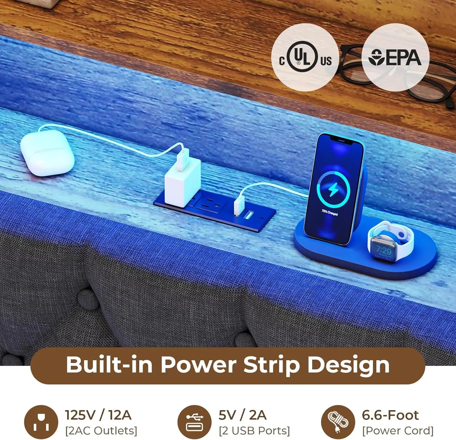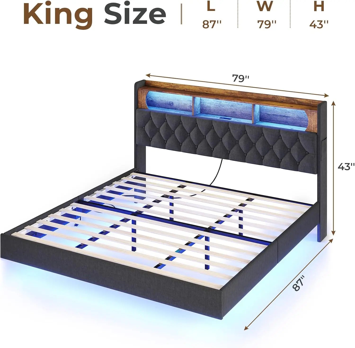 - 【Bed Frame with Charging Station】-The queen floating led bed frame features 2 outlets and 2 USB ports, which is very convenient for you to charge your mobile phone,pad and other electronic devices. Accompanied by a 6.6ft long power supply cord, you can use to charge electronic equipment while you sleep and charge up to three devices at once.