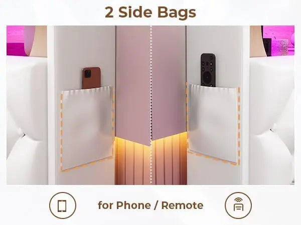 - 【LED Lights on the Headboard and under the Bed】-The queen bed frame has RGB light strips attached to the headboard and under the bed (more than 60,000 colors to choose from). Adjust color, brightness, mode via remote, change the light when you are lying on the bed, which not only can create captivating atmospheres for your bedroom, but also can be used as night light.