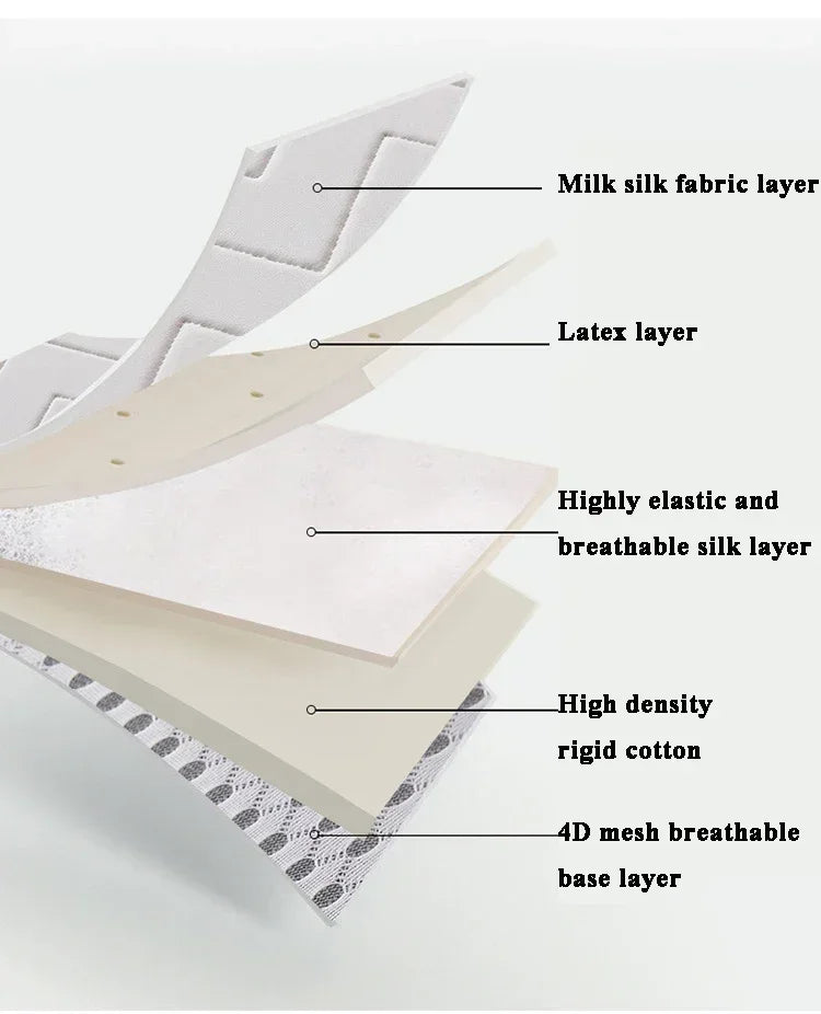 - Product filling: the whole sheet of latex layer + silk layer + high-density hard cotton