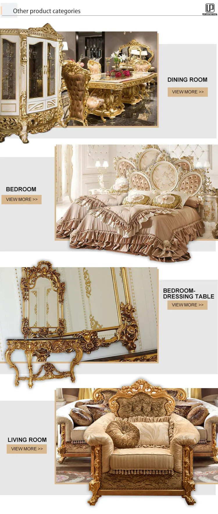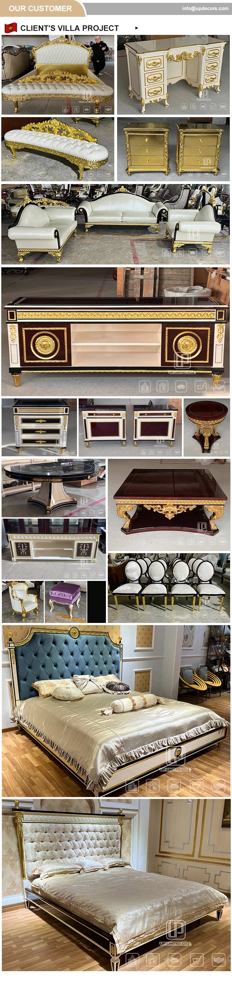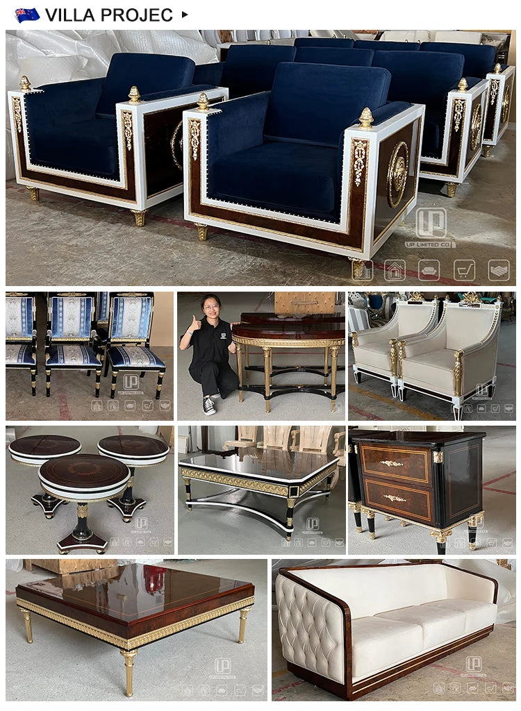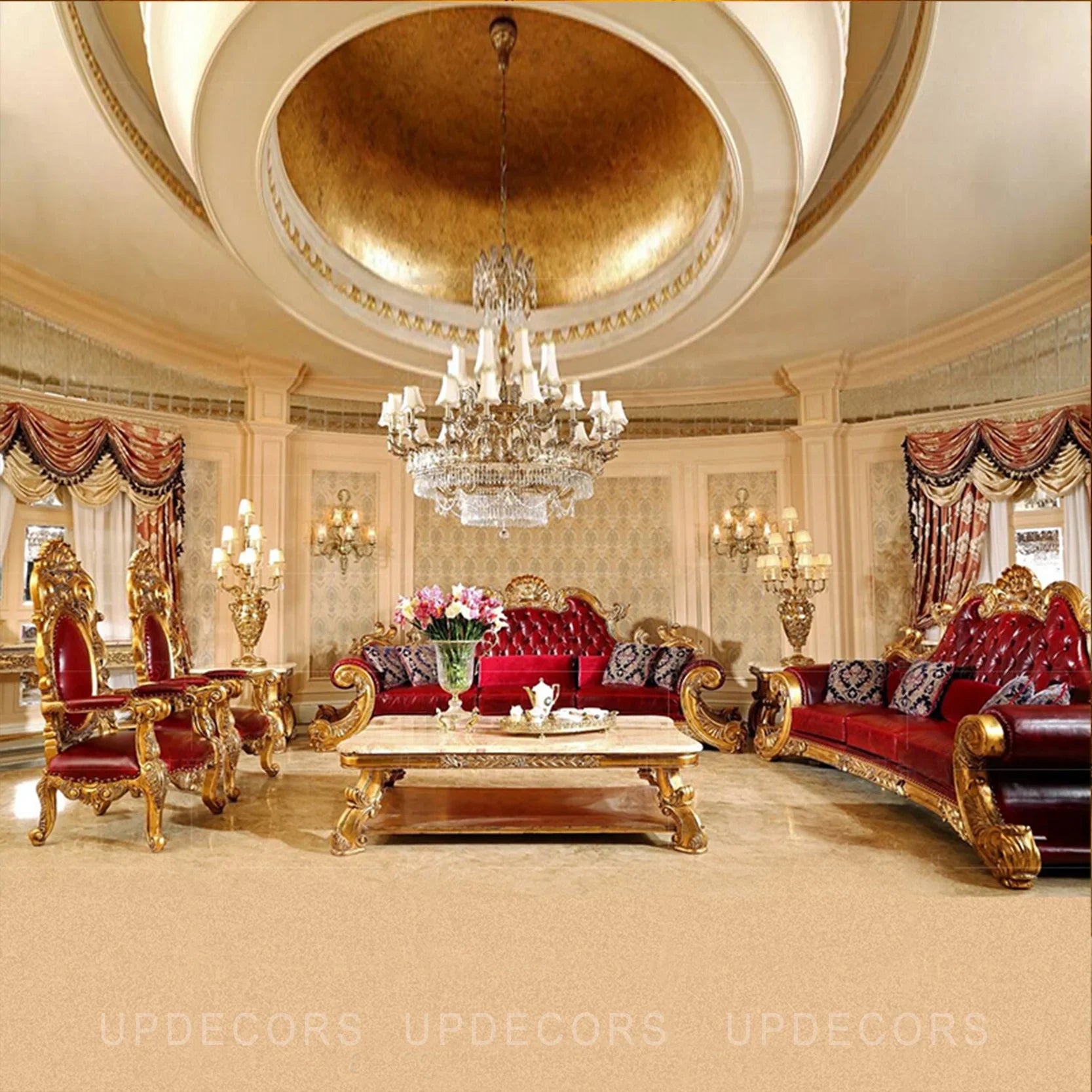 French royal family 7 seater living room furniture set royal antique gold solid wood hand carved sofa set