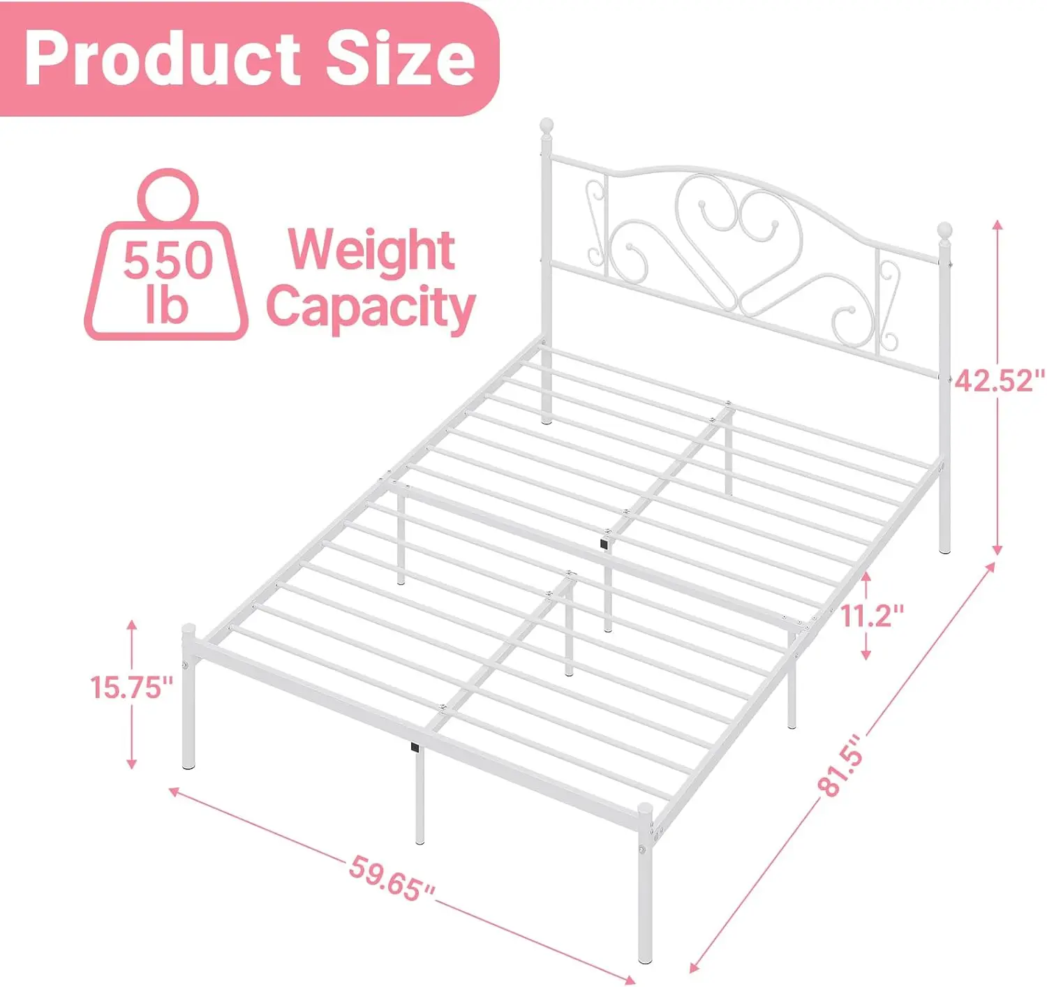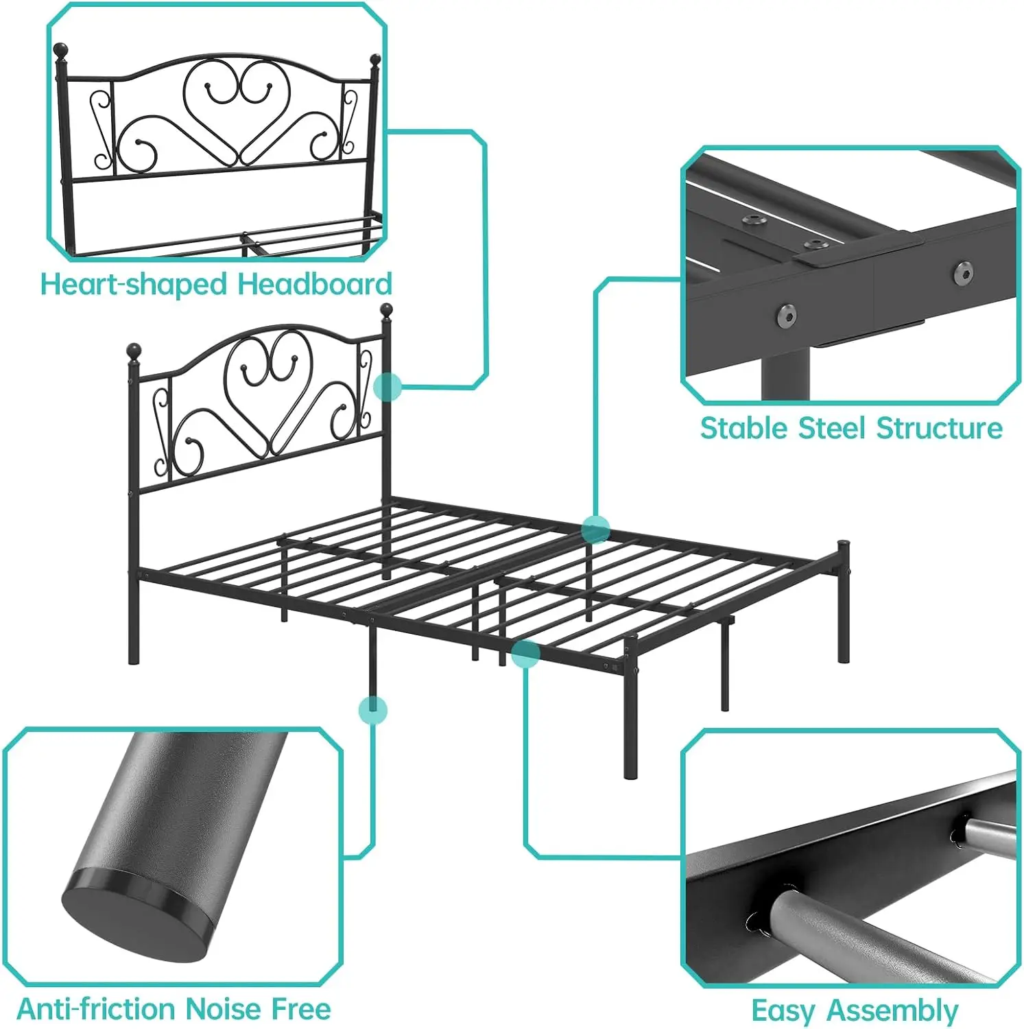 - Unique Heart-shaped Headboard: This bed frame features a cute heart-shaped headboard, adding an lovely and romantic decoration for any room. Perfect for kids,teens and adults.