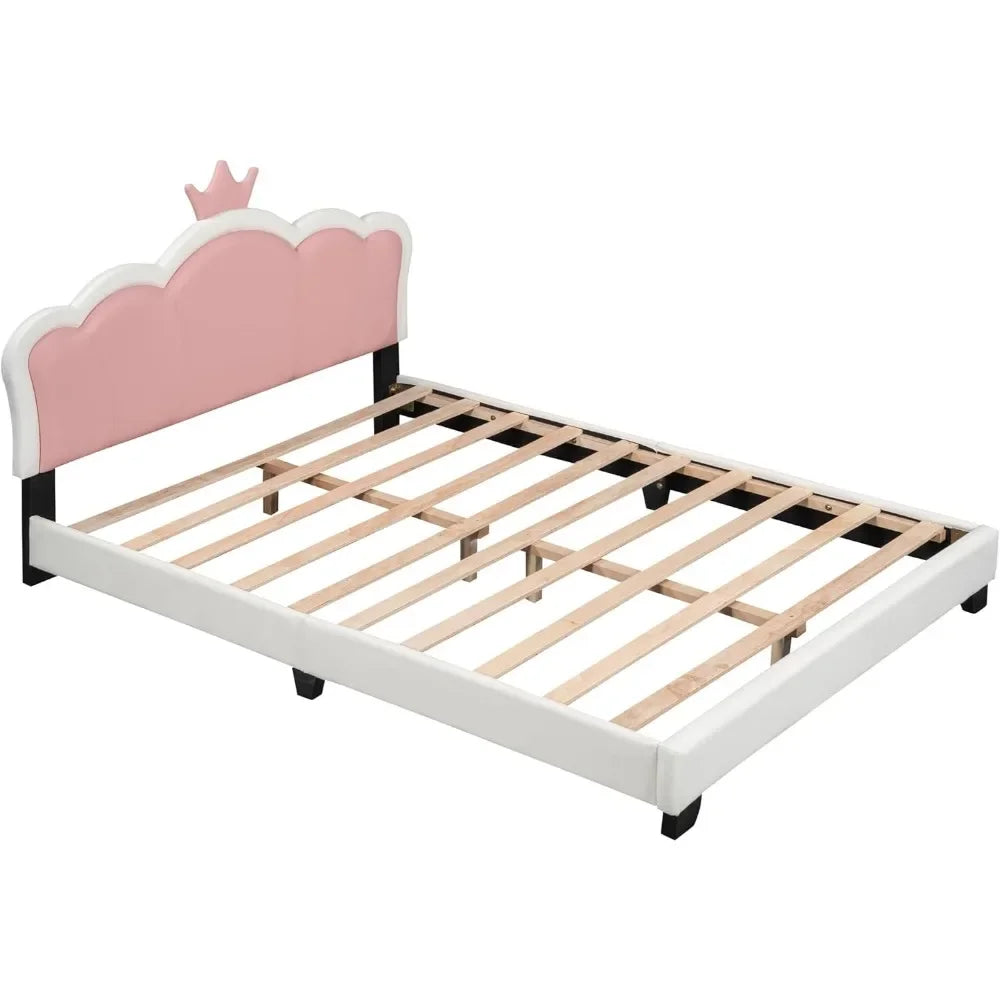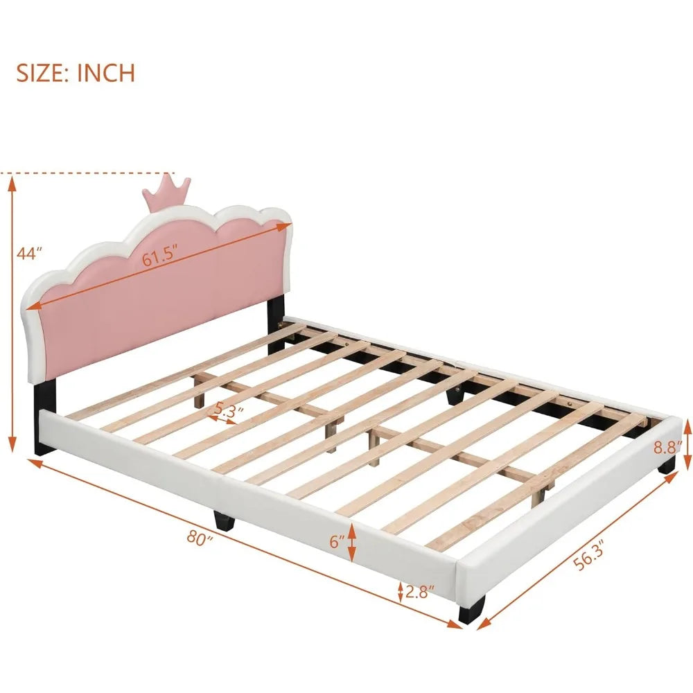 Full-Size Upholstered Princess Bed with Crown Headboard, Full Size Platform Bed with Headboard and Footboard Suitable for girls