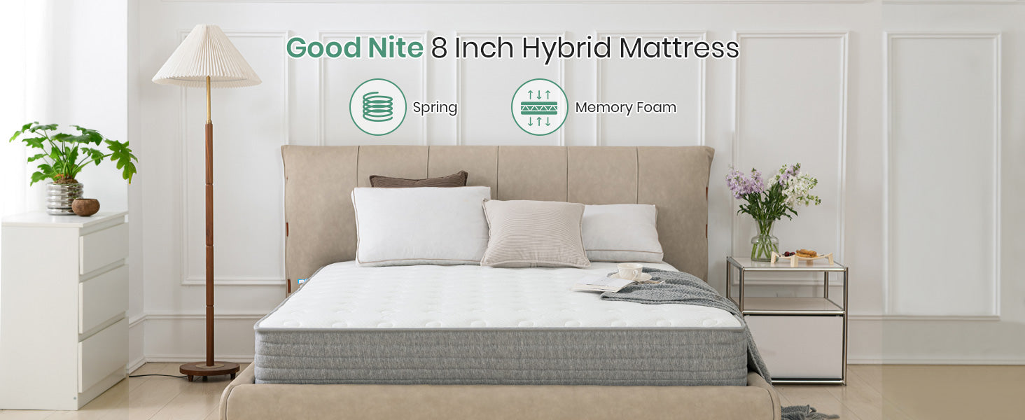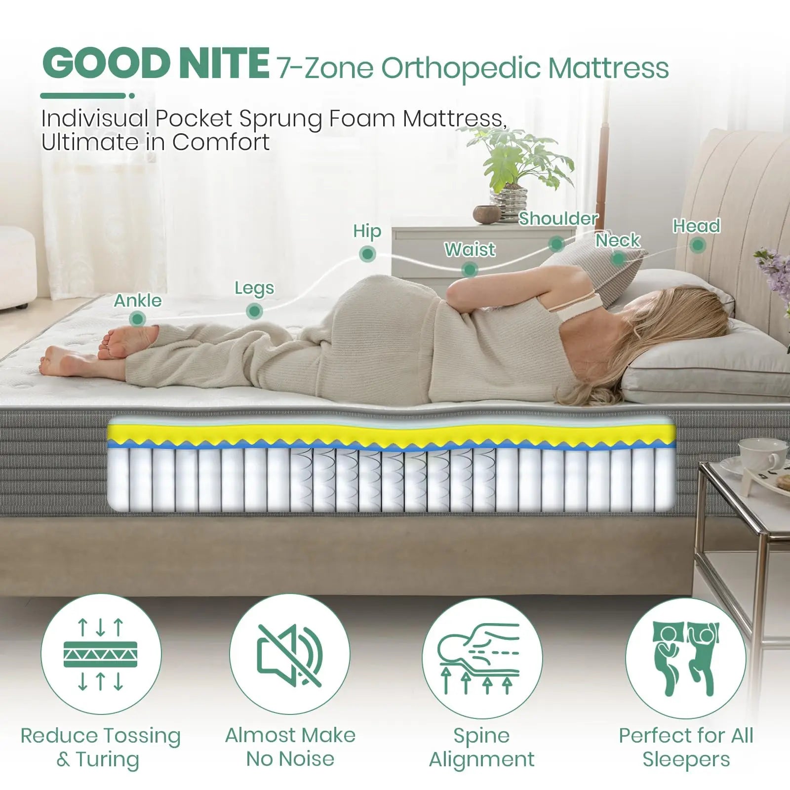 Good Nite 8 Inch Hybrid Double Mattress, Memory Foam, Pocket Sprung, Medium Firm, 7-Zone Orthopaedic Support, Comfort Design