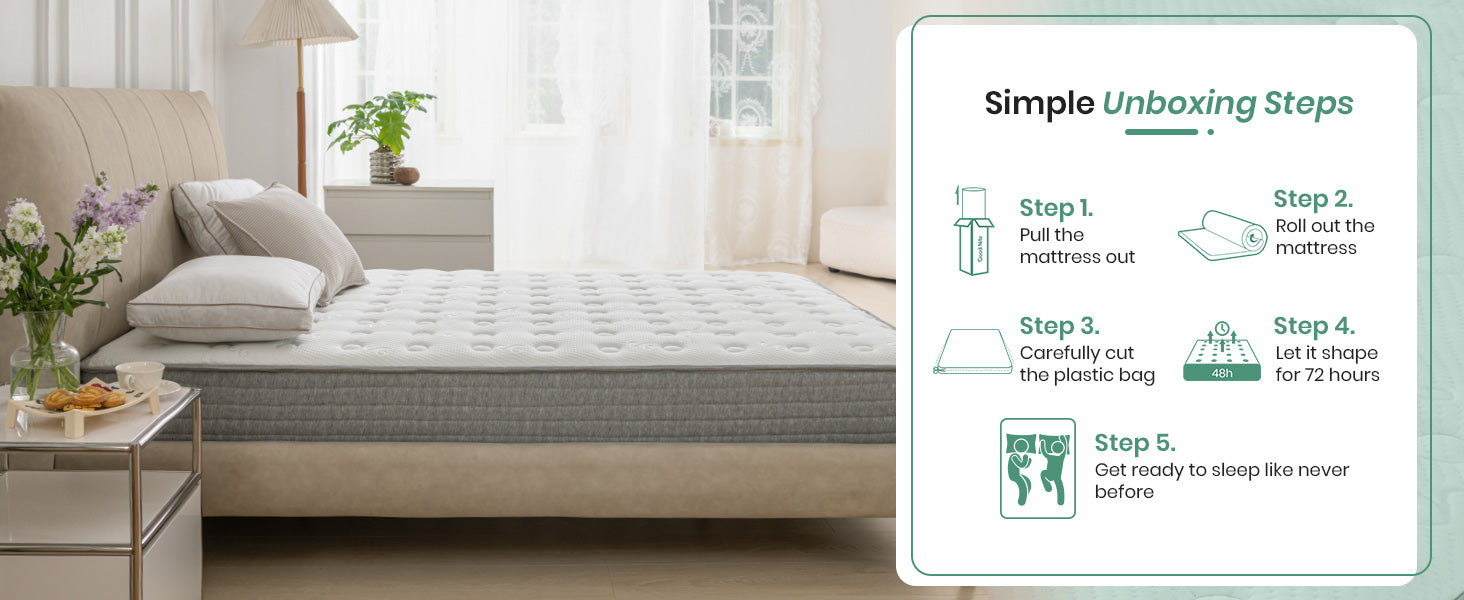 Convenient Mattress in a Box - Vacuum-packed and rolled for easy delivery, this mattress expands to its original shape within 48-72 hours after unboxing. Effortless setup for a premium sleeping experience.