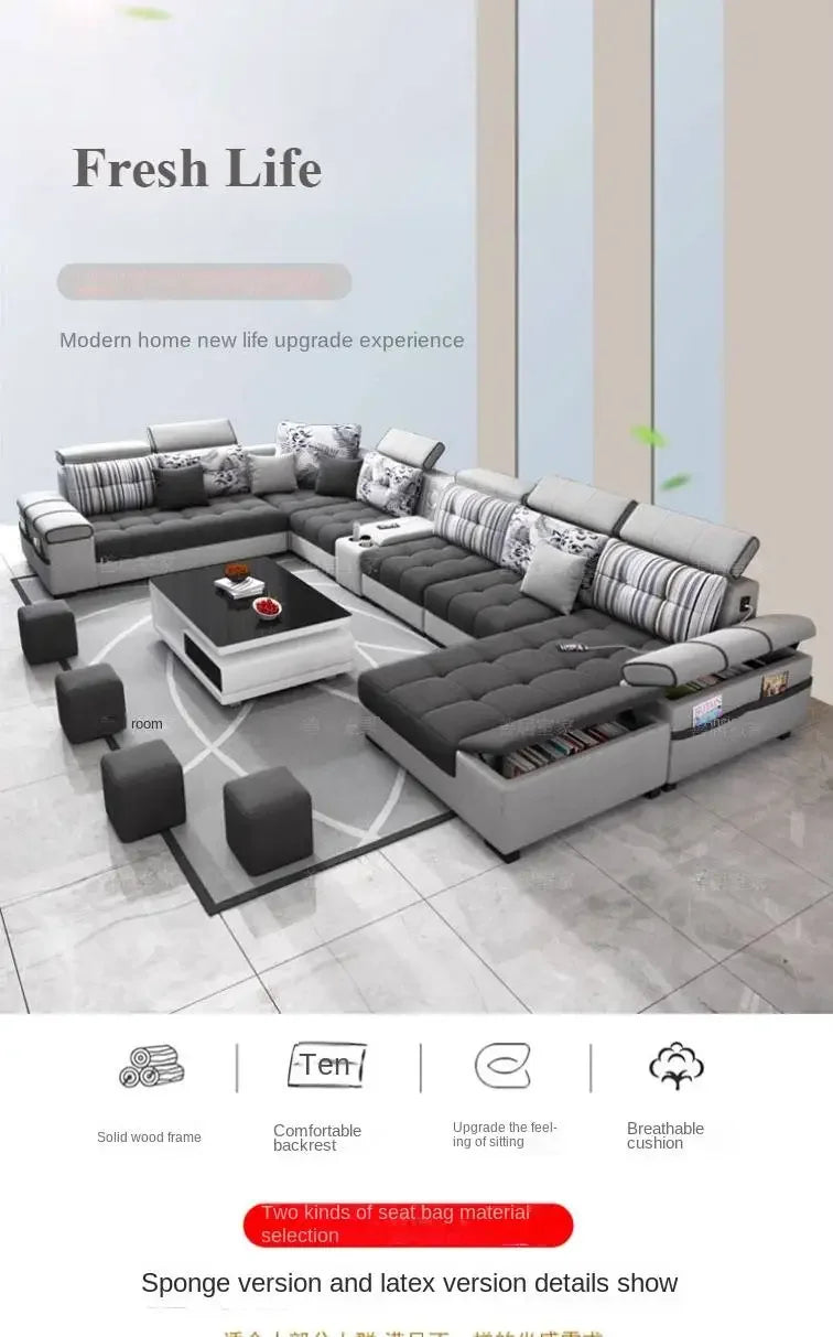 Gray Large Wood Sofas Filler Waterproof Design Lazy Lounges Puffs Couch Salon Recliner Luxury Canape Salon Furniture Home