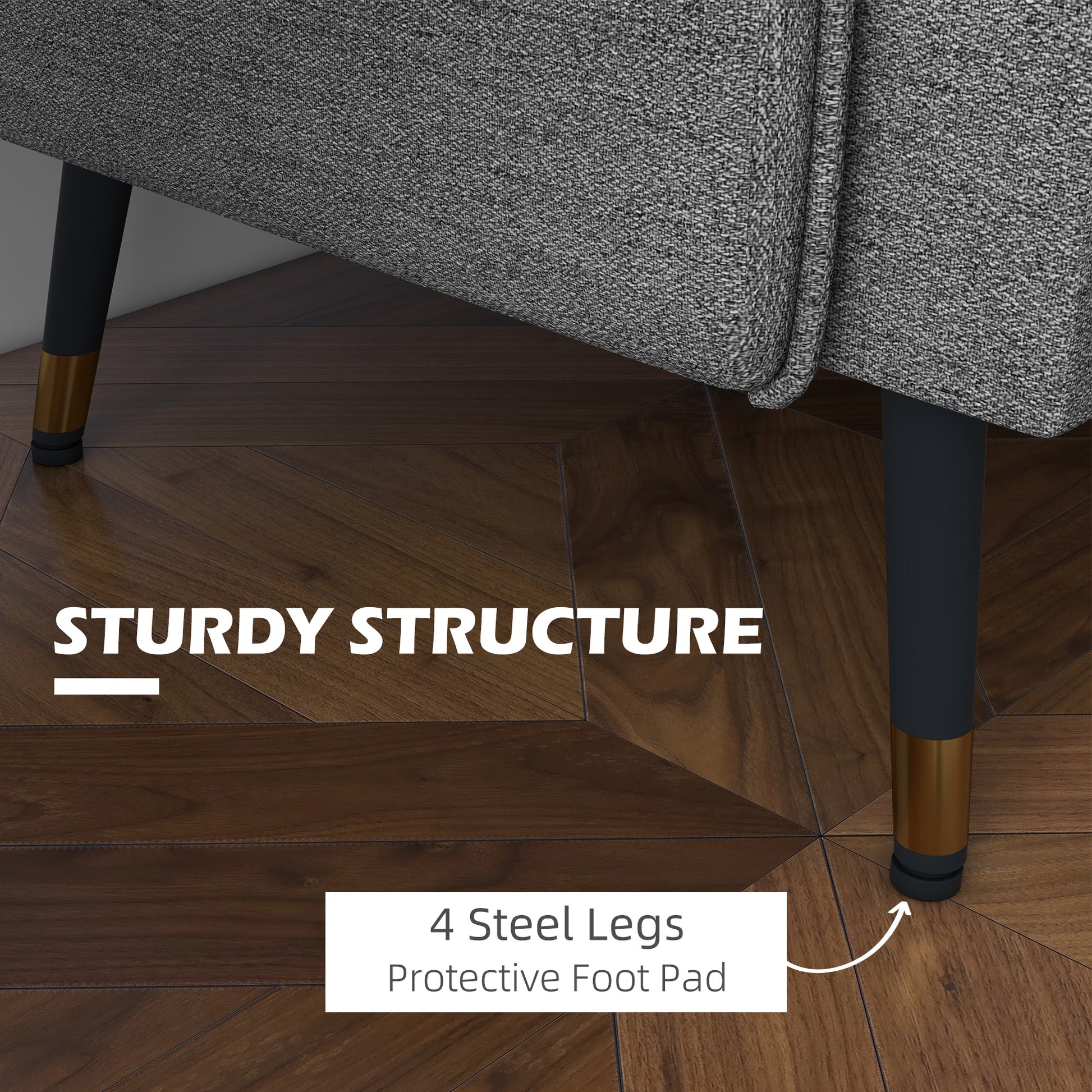 A compact sofa which doesn't scrimp on the comfort - this sofa for living room from HOMCOM. Its breathable linen-look upholstery is smooth on the skin, with the padded seat and back cushions for comfort. Button tufting on the back and gold coloured details on the legs for style. Complete with steel legs for strong support.