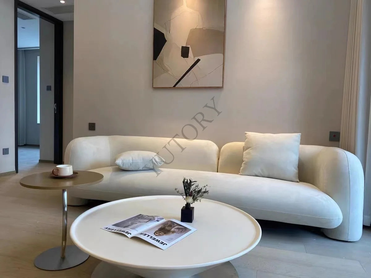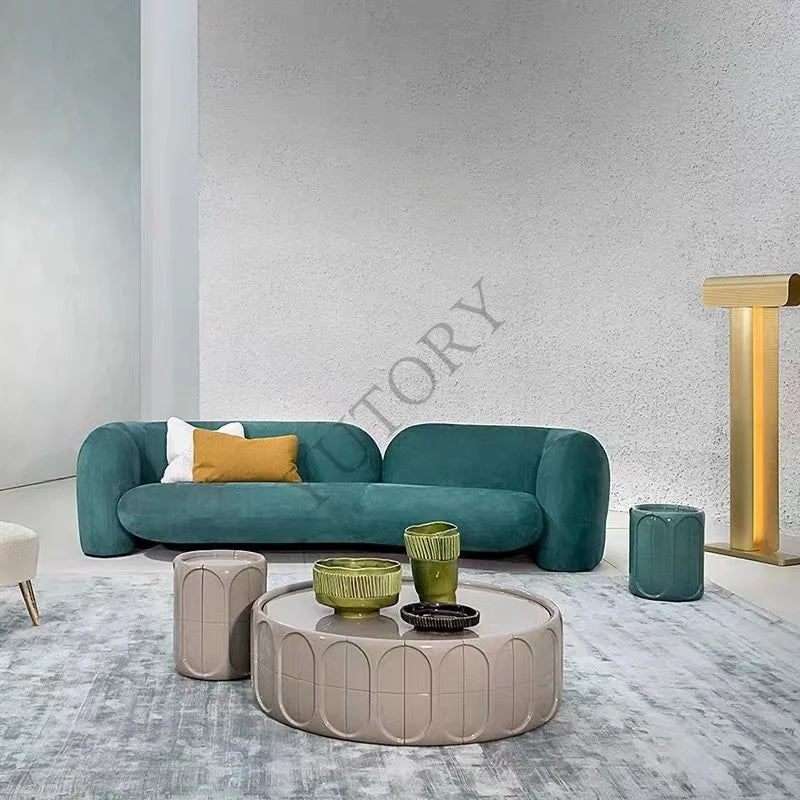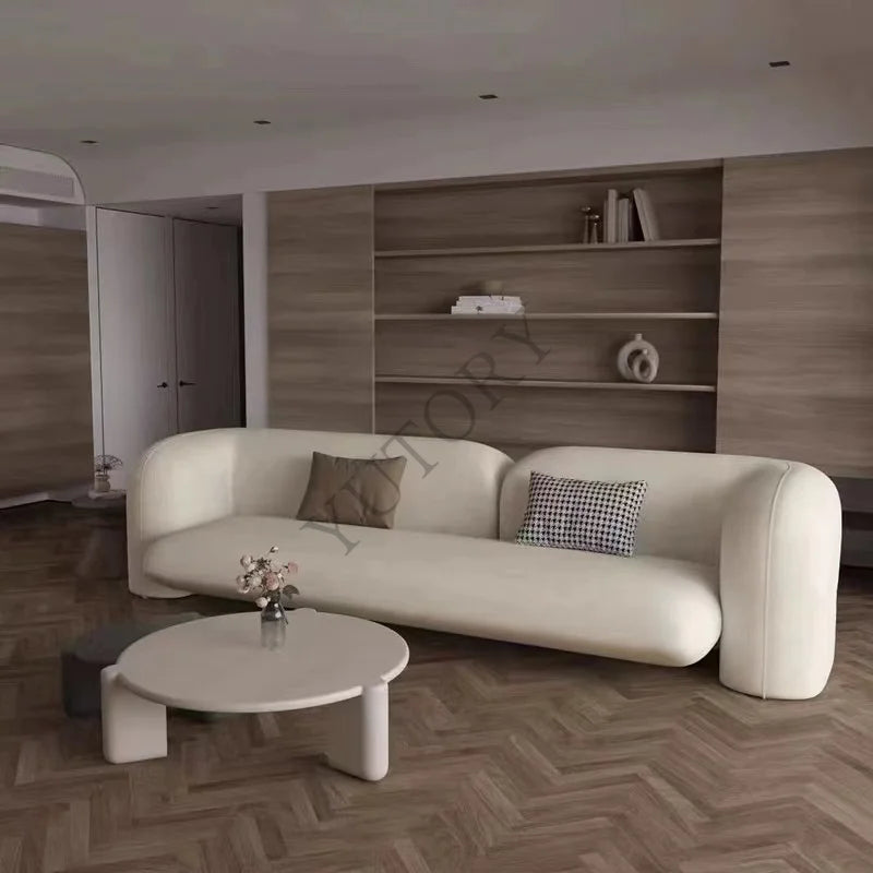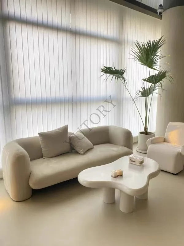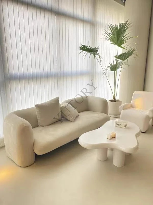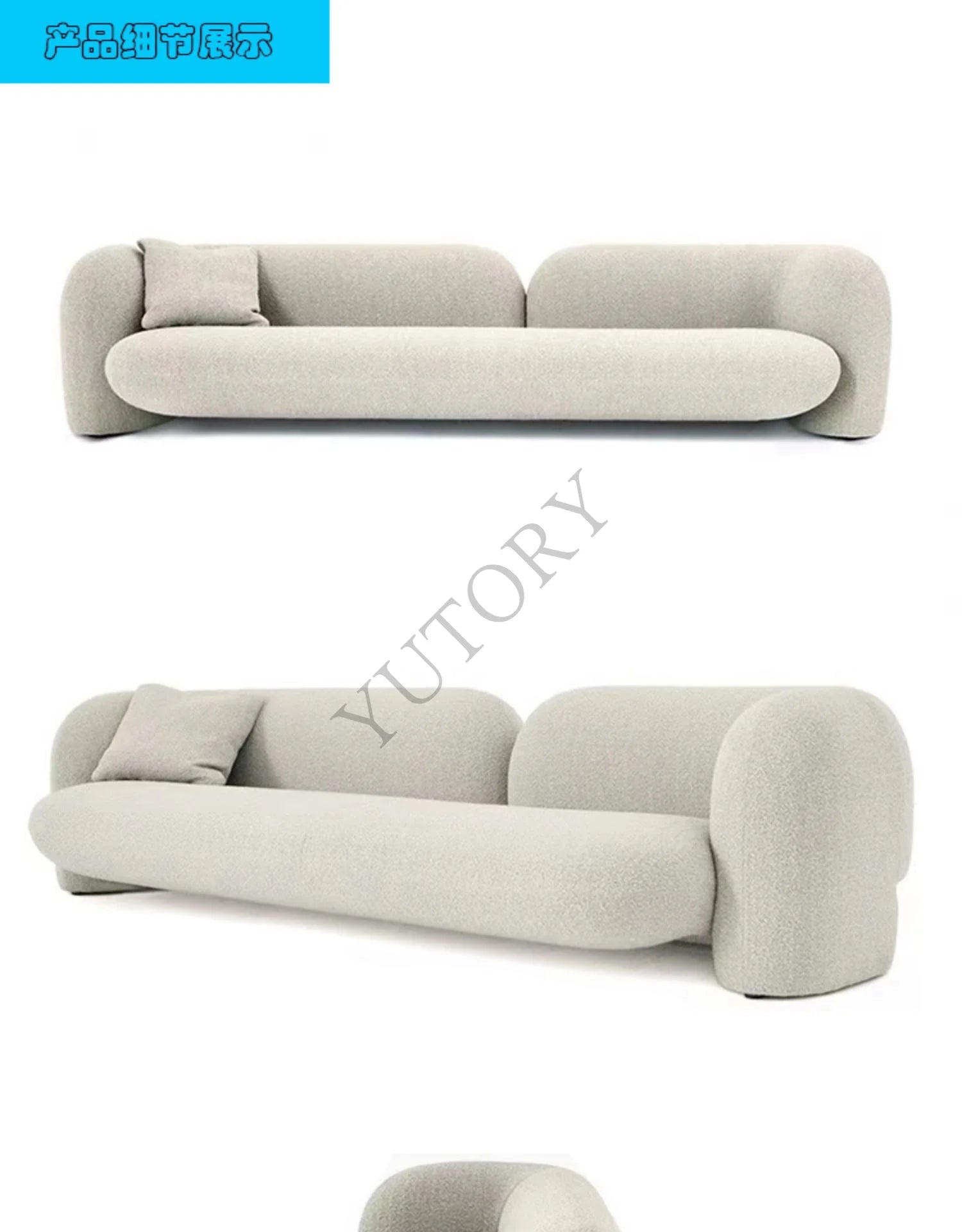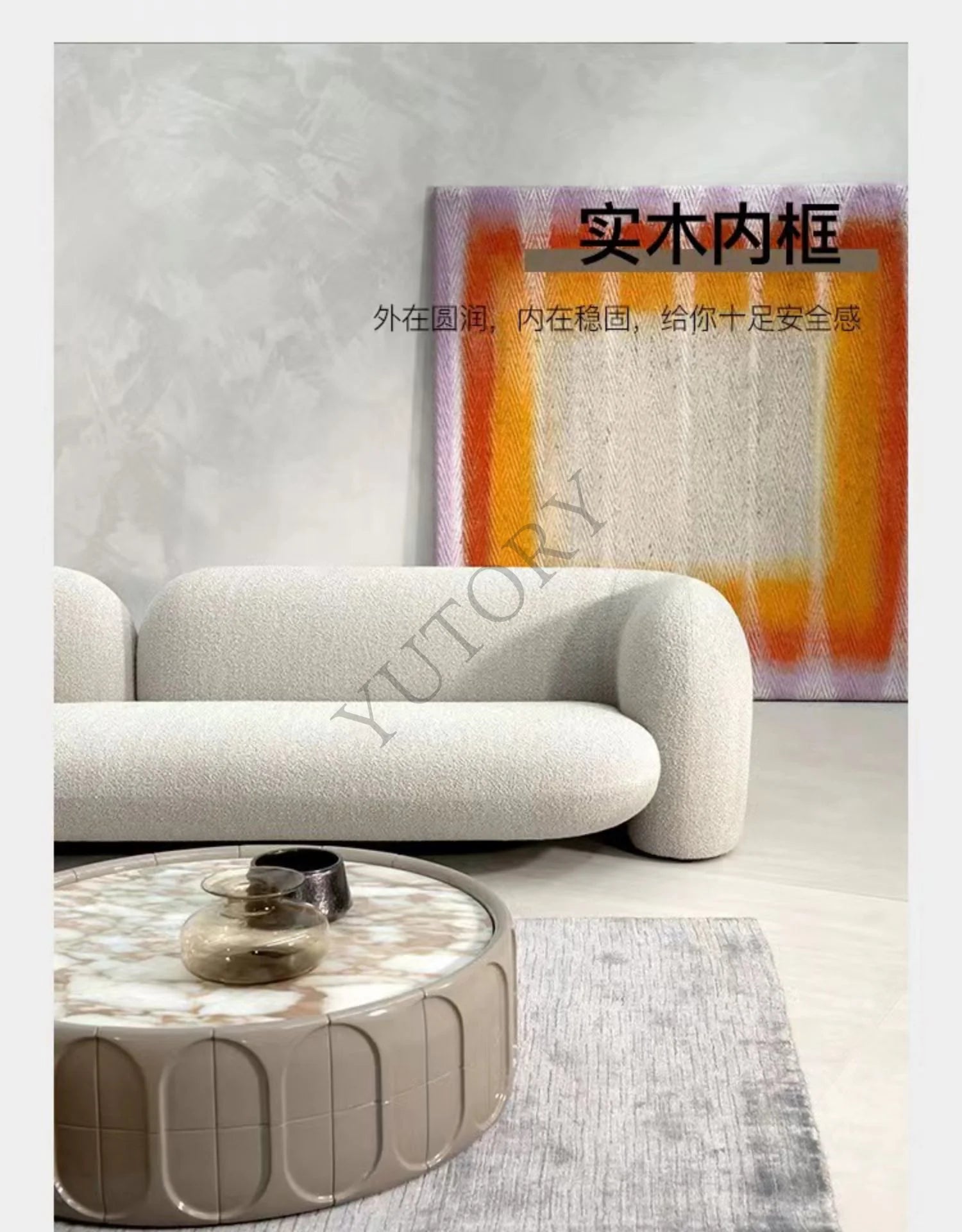 Italian minimalist double three-person small apartment living room sofa lambswool fabric leisure sofa