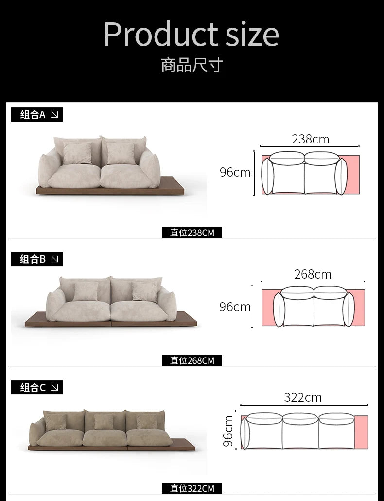 Japanese-style log wabi-sabi wind platform bread fabric sofa living room minimalist creative furniture