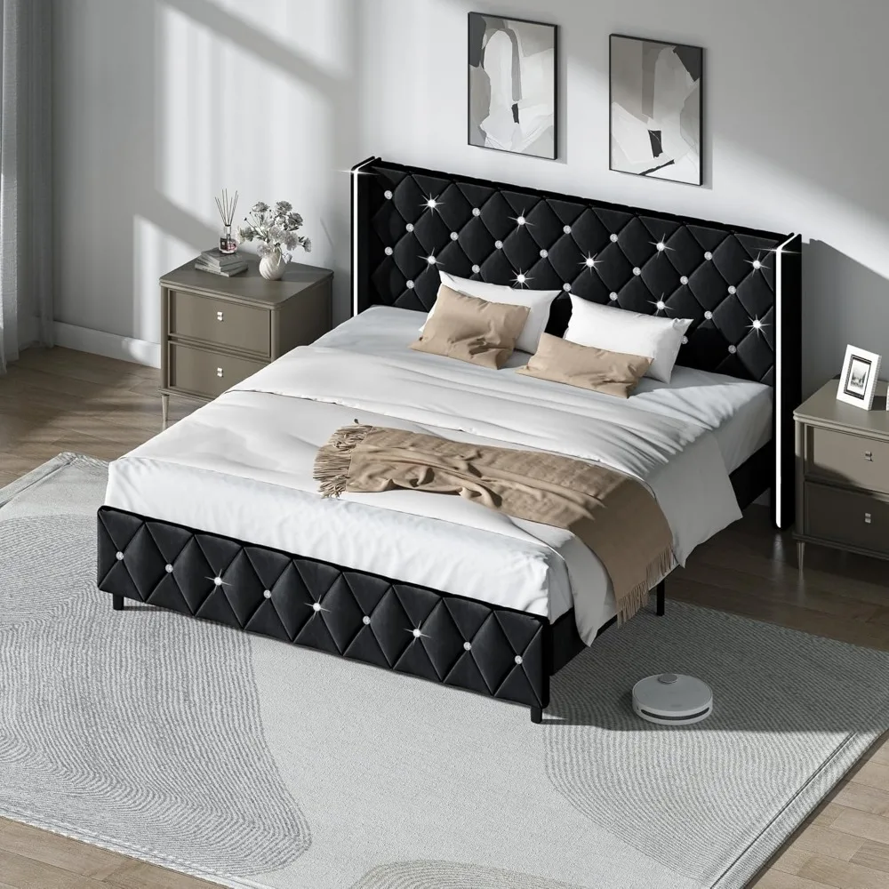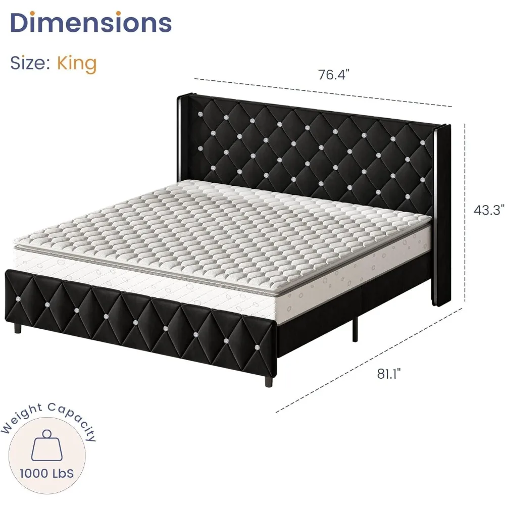 - Modern Luxury Platform Bed: Combining a stylish diamond headboard and footboard with a popular wingback design, this black king bed frame with headboard easily matches any bedroom style or color scheme, becoming the center of the interior