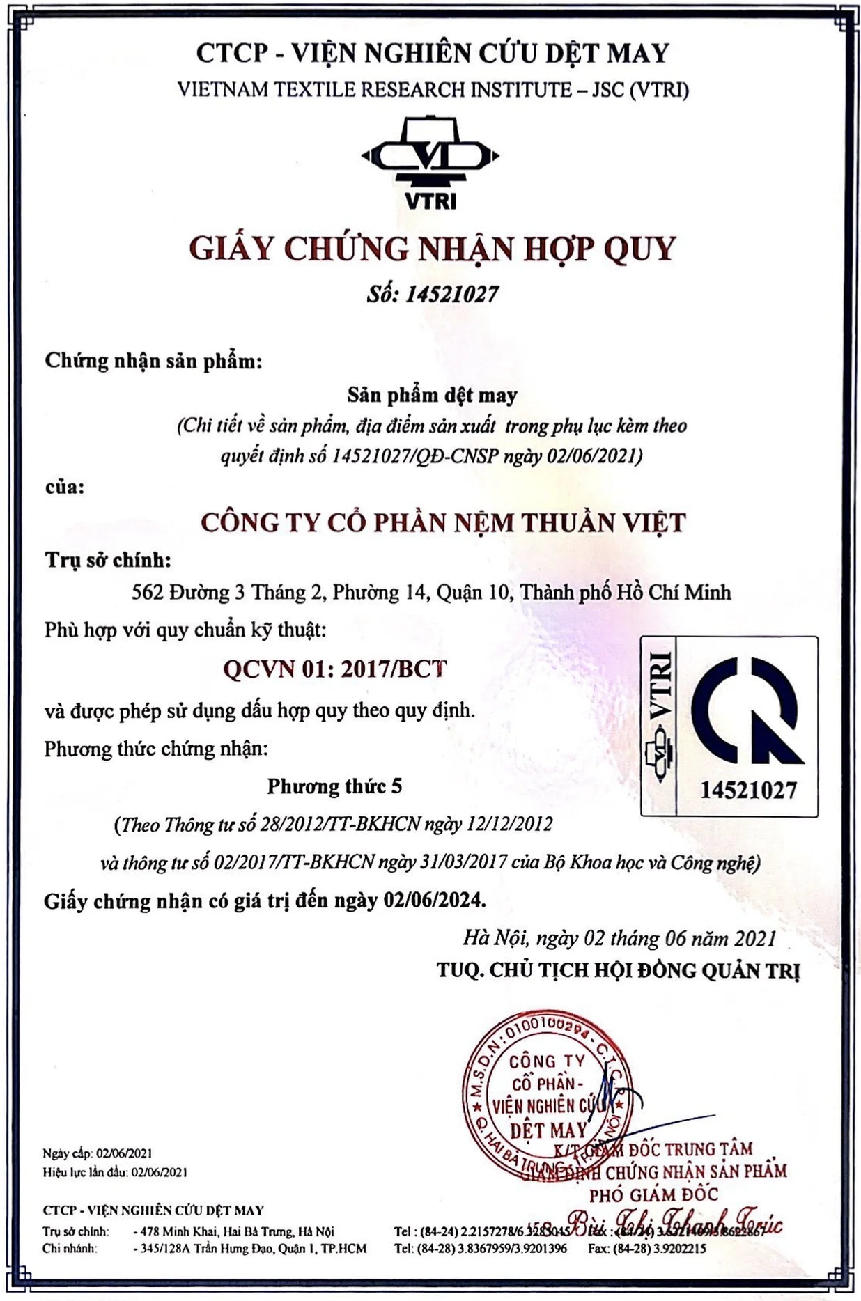 Thuan Viet Mattress owns production facility of over 20,000 square meters where all production processes are tightly managed according to the International Quality Management Standard ISO 9001-2015. Vision By 2030, Thuan Viet Mattress envisions becoming a public company with a network of sales points spread across the country. Additionally, Thuan Viet Mattress aims to expand internationally through product exports.