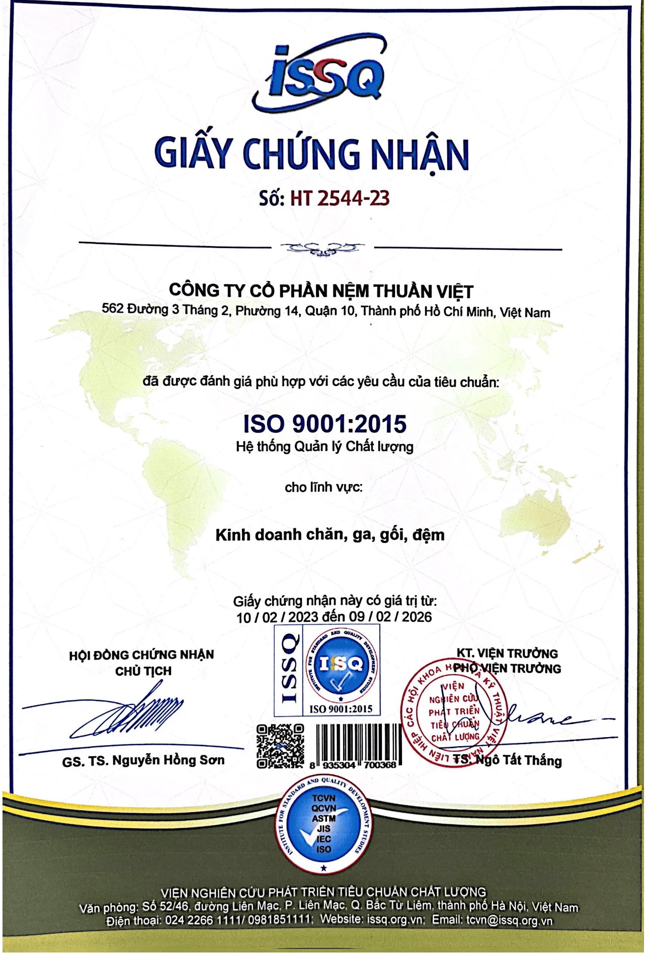 Throughout its years of operation and development, all products of Thuan Viet Mattress have consistently met the quality standards of South Korea and the International Quality Management Standard ISO 9001 - 2015. Products ranging from latex mattresses to latex pillows achieve both durability and absolute safety. From the selection of raw materials to the manufacturing process and distribution to consumers, the entire process is meticulously monitored. To achieve this, Thuan Viet Mattress focuses on training every employee, from workers and technical staff to customer service personnel. This core approach ensures long-term development, minimizes production errors and accelerates progress.