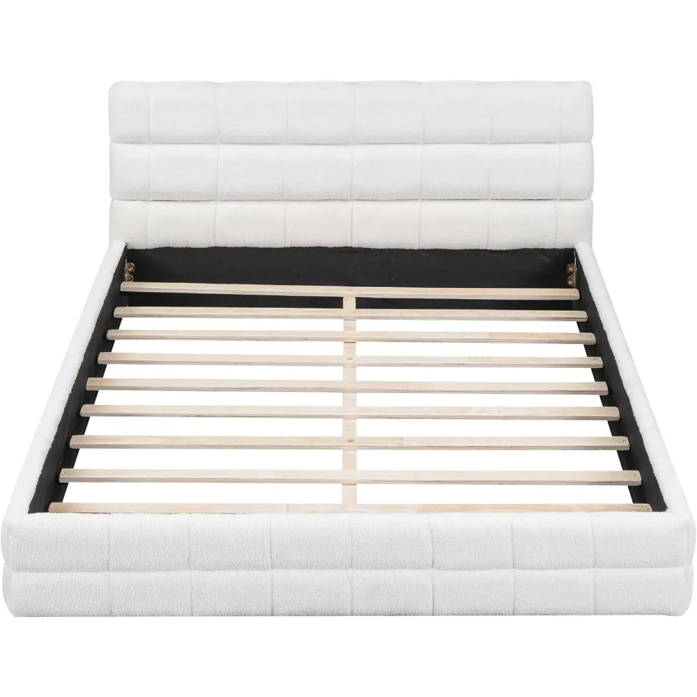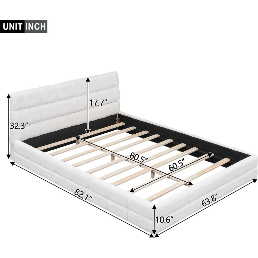 Large Cushioned Platform Bed Frame, Berber Wool Cushioned Grounded Bed with Solid Frame and Tufted Headboard