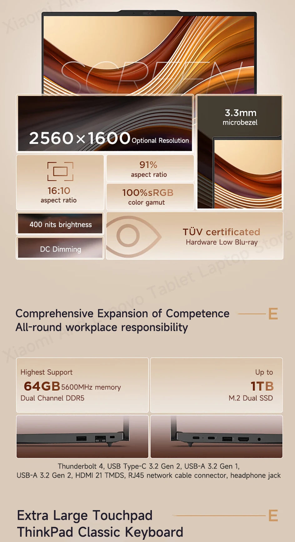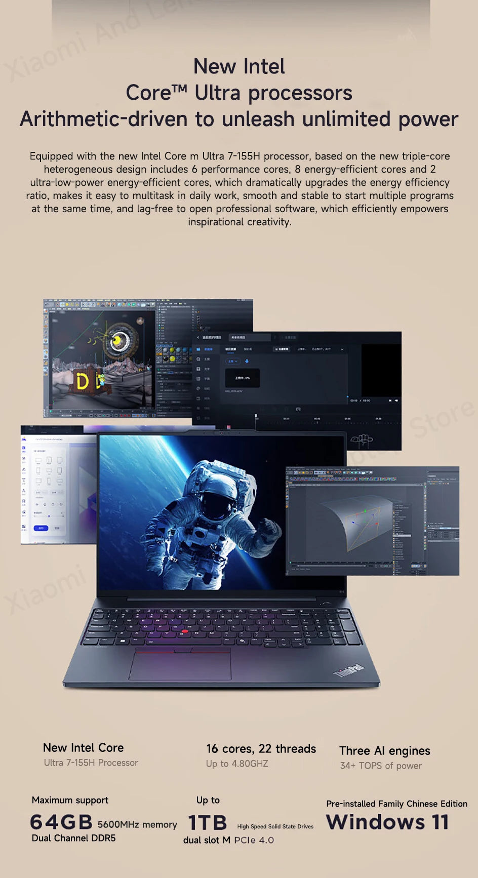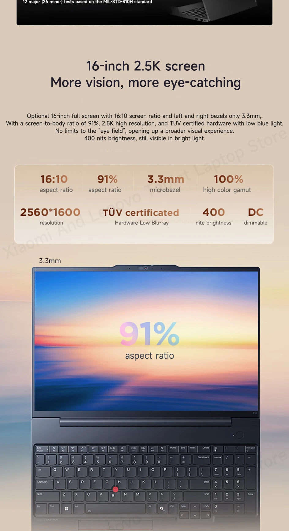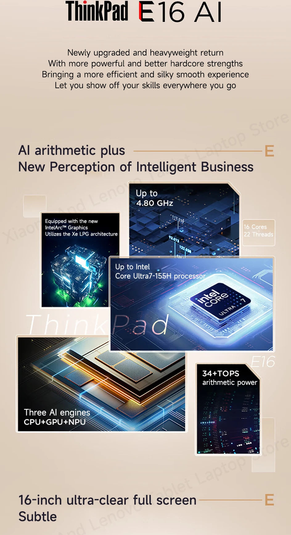 Lenovo Laptop Thinkpad E16 AI PC 16" 2.5K Thin & Light Portable Laptop Intel Ultra5 125H/Ultra7-155H 16G/32G DDR5 RAM Notebook