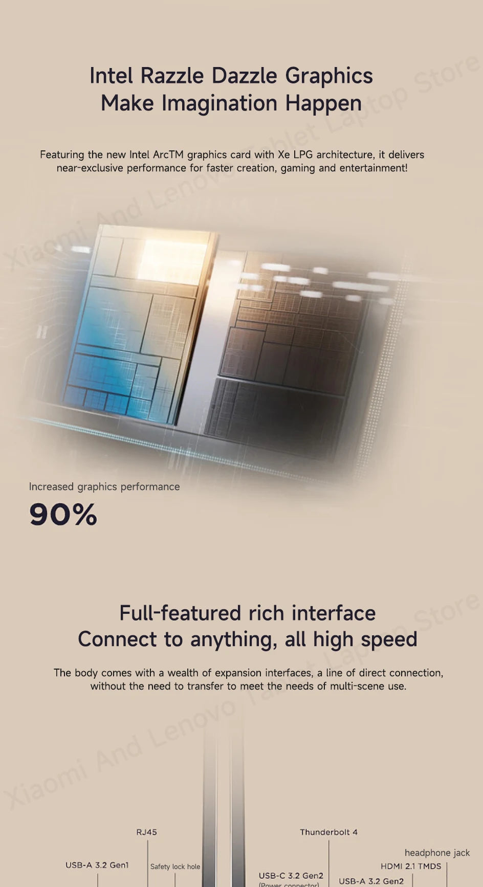 Port: Thunderbolt 4,2×USB 3.1 Gen1 ,1×USB 3.2 Type C,3.5 mm Combo Audio Jack,RJ-45,HDMI-Compatible