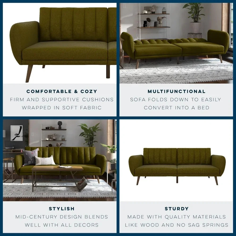 - Multifunctional Futon Bed: At the forefront of a Mid-Century Modern décor renaissance with classic design details that show off a vertical channel tufted backrest, curved armrests, and 4 slant tapered solid wood legs for high living room form