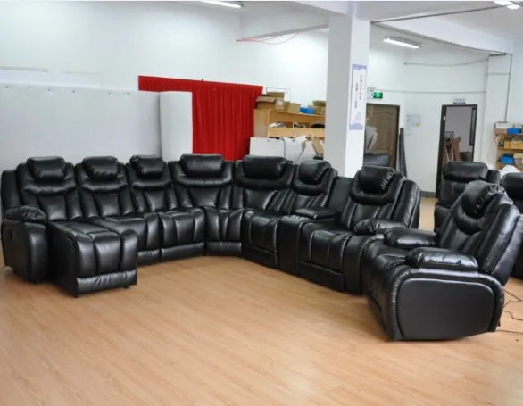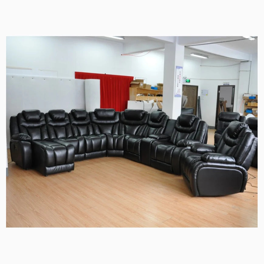 Living Room Sofa Set Recliner Leather U Shaped Sectional Sofa, Electric Recliner Sofa Set 6 Seat 7 Seat 8 Seat