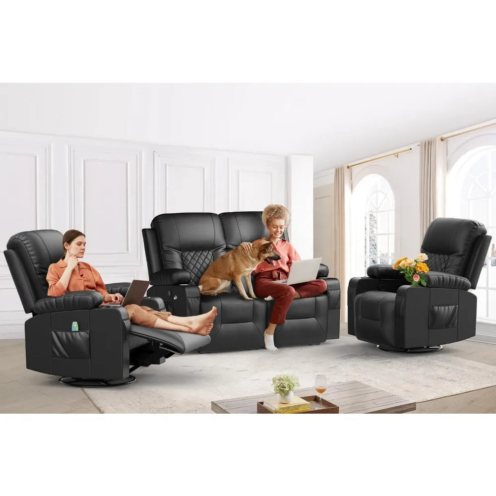 - 【Luxurious Comfort】FURNIMAT Loveseat sofa set offers reclining, rocking, massage, heating and swivel functions (only single seat has rocking, massage, heating and swivel functions). Comfortable padding for comfort and support where it's needed most This model offers soft padding, excellent lumbar support and a full upholstered seat.