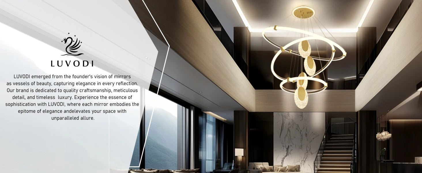 【Professional Installation】Available in 1-layer, 2-layer, 3-layer circular led rings with 2pcs/ 3pcs/ 4pcs acrylic accents, allows for customization based on the specific needs and preferences of the space, the 3-layer round led ringscan be flexibly customized into different shapes as your creativity, chandelier exemplifies refinement through its design, craftsmanship, and choice of materials, must be anchored to a ceiling that can stand the heavy weight, all electric wire conform to the UL Safety Standards, ensuring peace of mind, the package includes all hardware and instruction, highly recommend seeking professional assistance for installation, if the items are damaged, please send us email and we’ll promptly assist you.
