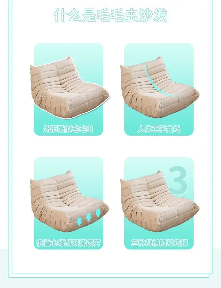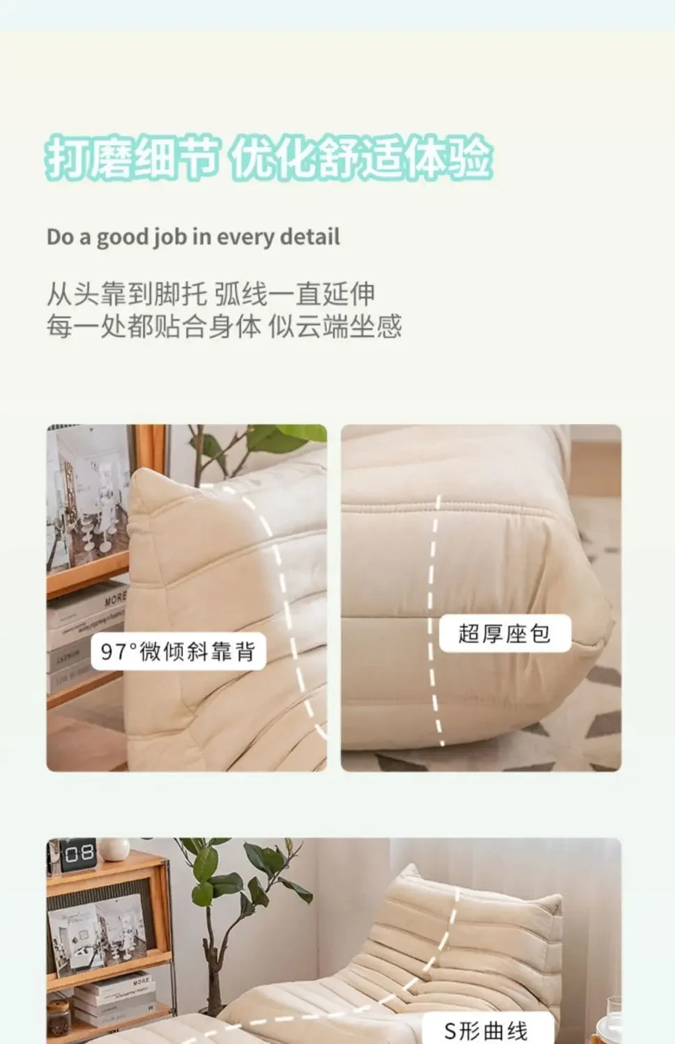 Luxury Living Room Sofa Furgle Chair Soft Suede Oversized Chair Lazy Floor Sofa for Living Room Corner Chair Caterpillar Sofa