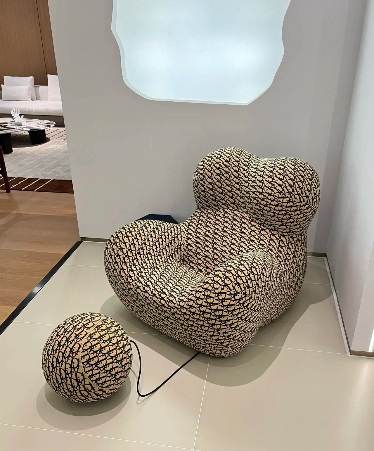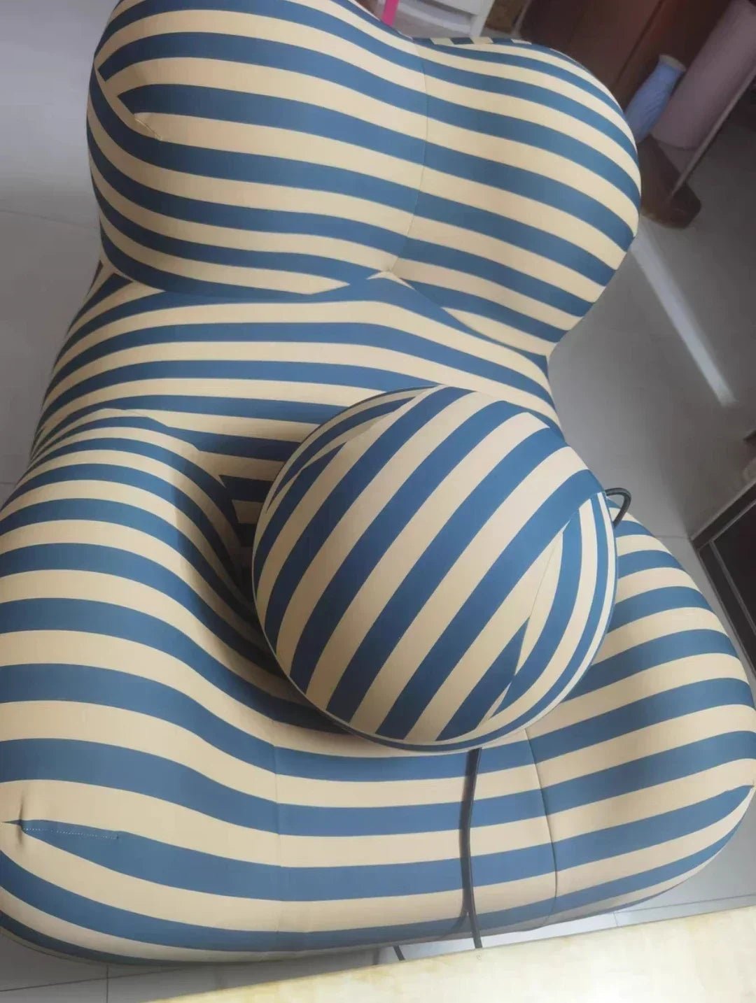 Luxury Mom's Embrace Bean Bag Sofa with Ottoman Modern Striped Cozy Seating for Living Room Bedroom Lounge Chair Decor Furniture