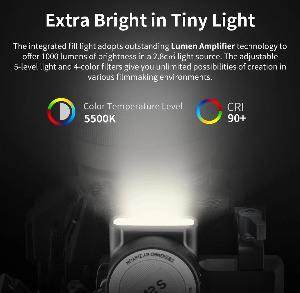 The integrated fill light adopts outstanding Lumen Amplifier technology to offer 1000 lumens of brightness in a 2.8c㎡ light