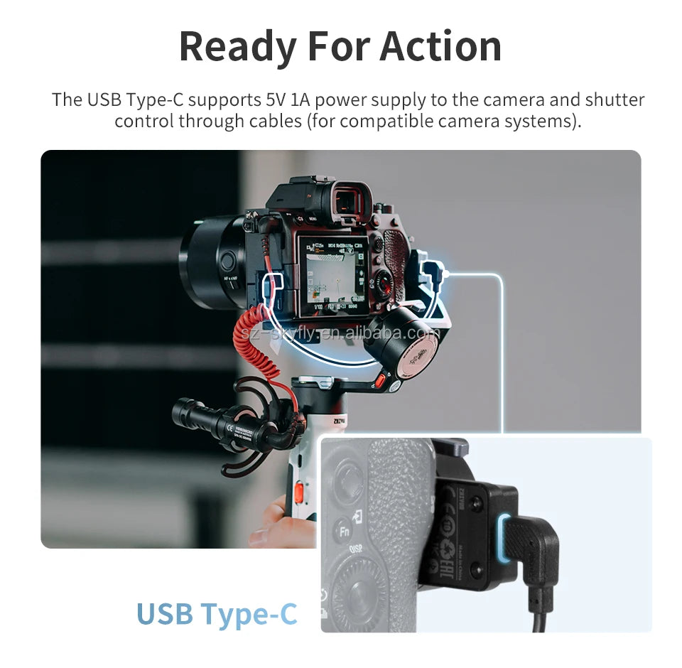 The USB Type-C supports 5V 1A power supply to the camera and shutter control thru cables (for compatible camera systems).