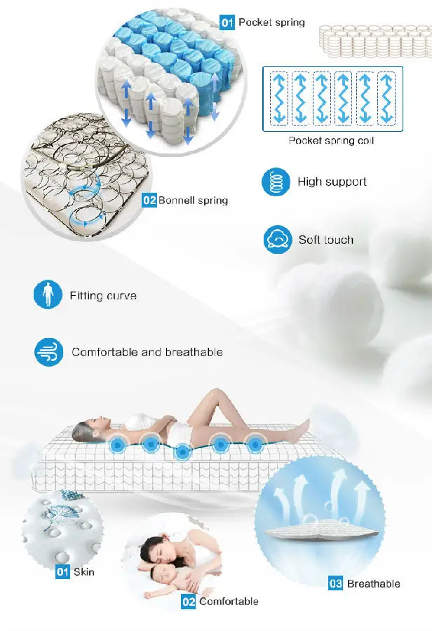 Material: Knitted Fabric+ Foam box+Mini Pocket Spring