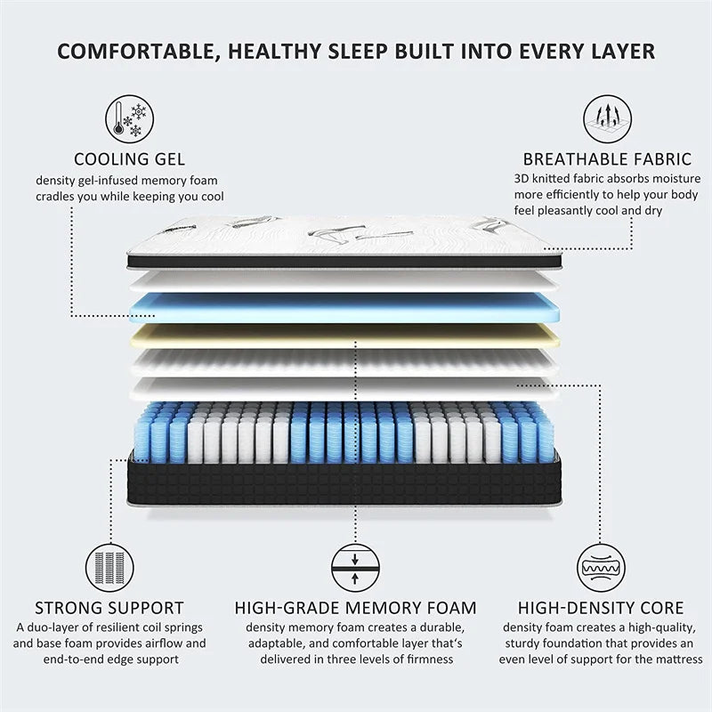 Mattress Queen King Size Latex Gel High Density Memory Mattress Rolled up Packing Pocket Coil Mattress