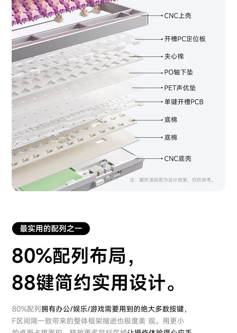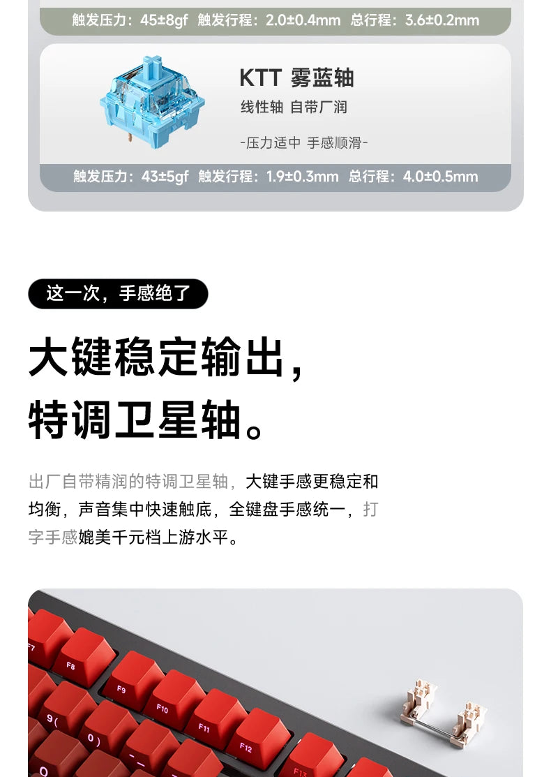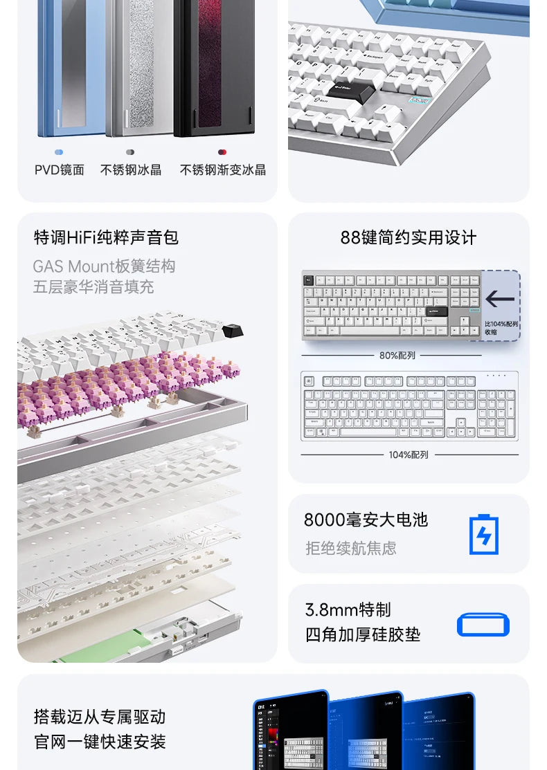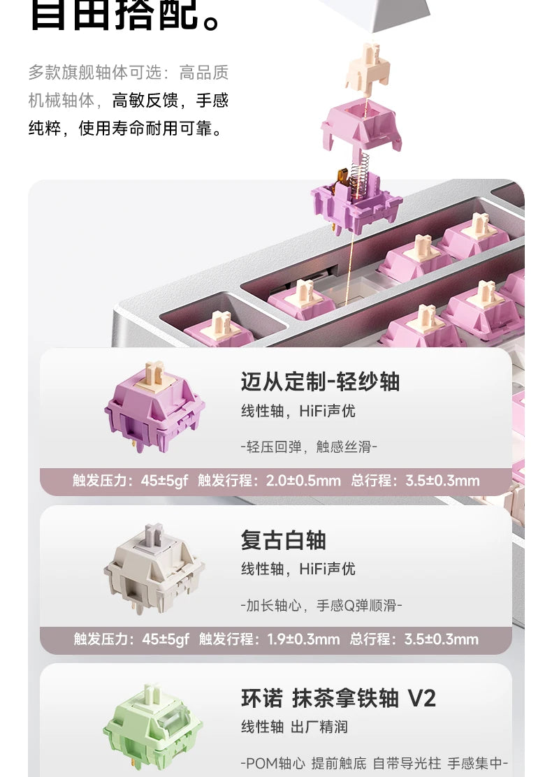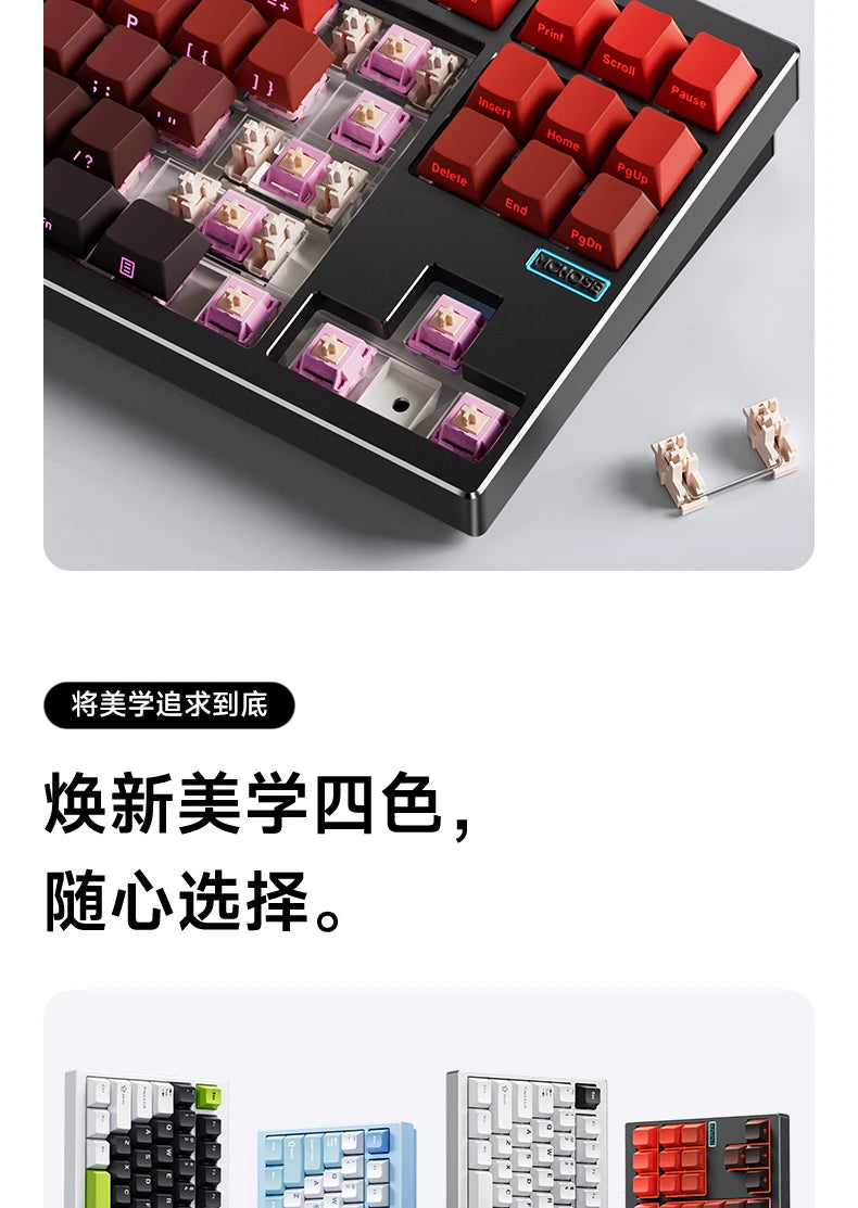 1. 3 seconds magnetic touch bead quick release, play with your own ideas. For the first time equipped with a new design, Mai from the GX87 V2 up and down the use of 4 groups of national standard customized touch beads to achieve quick release, "press, lift, take out" three actions to complete the upper shell, the inner liner full quick release. The touch beads are CNC machined from 6063 aluminum alloy, and the smaller independent customized touch beads provide a more freely adjustable disassembly strength than springs, providing a more casual disassembly experience for the ultimate customized you!