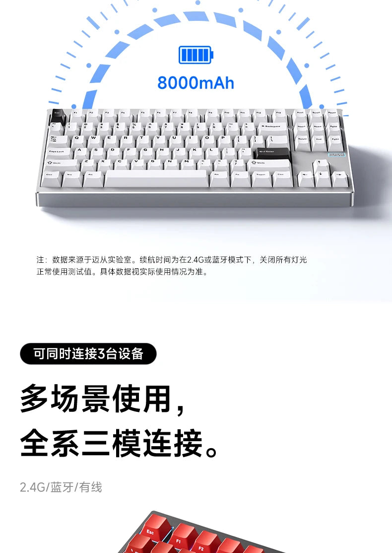 4. Three devices can be connected at the same time, and all three modes can be connected in multiple scenes. 2.4G/ Bluetooth/wired