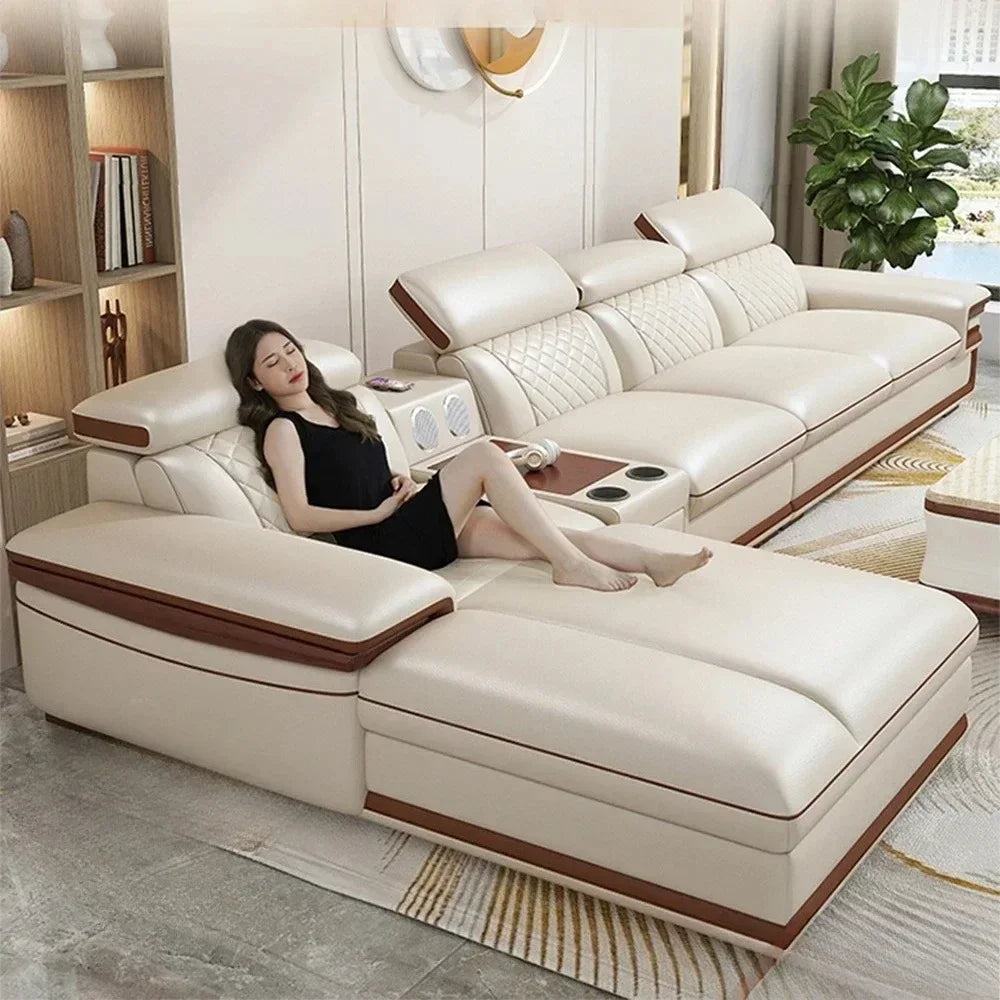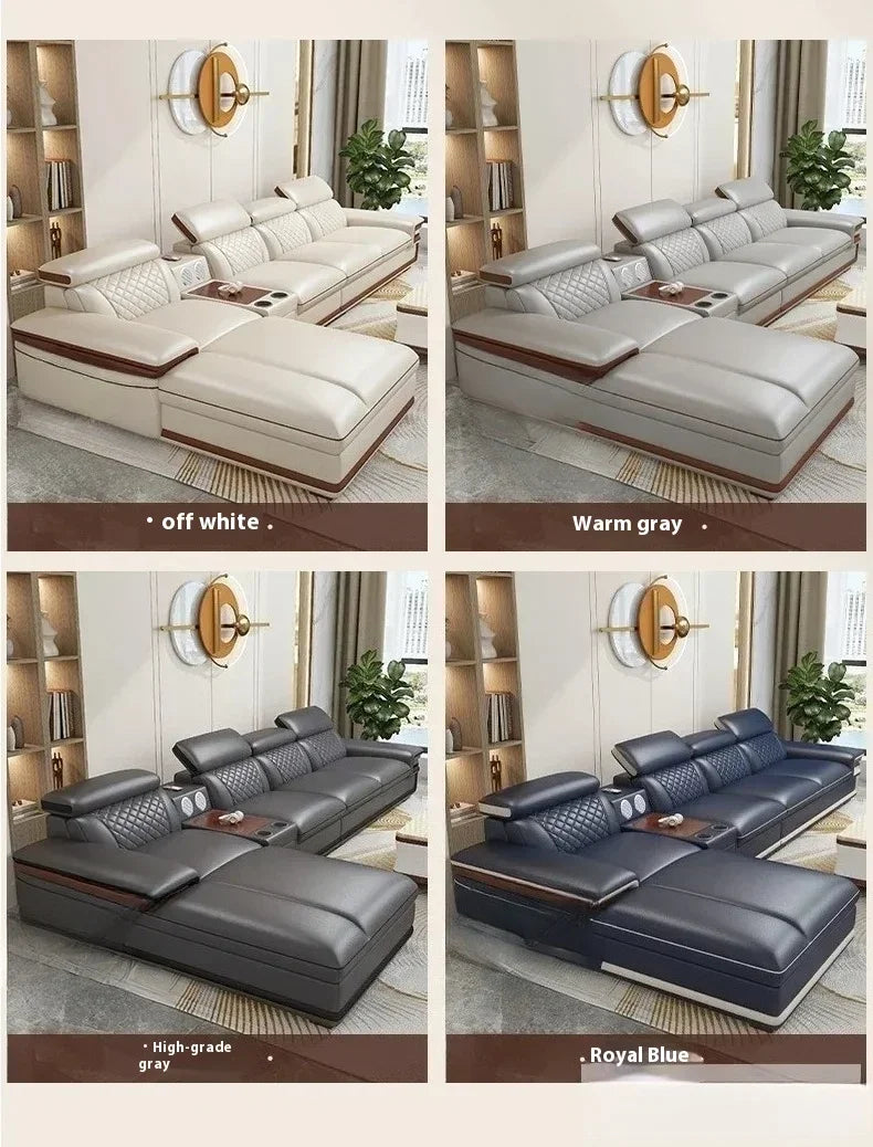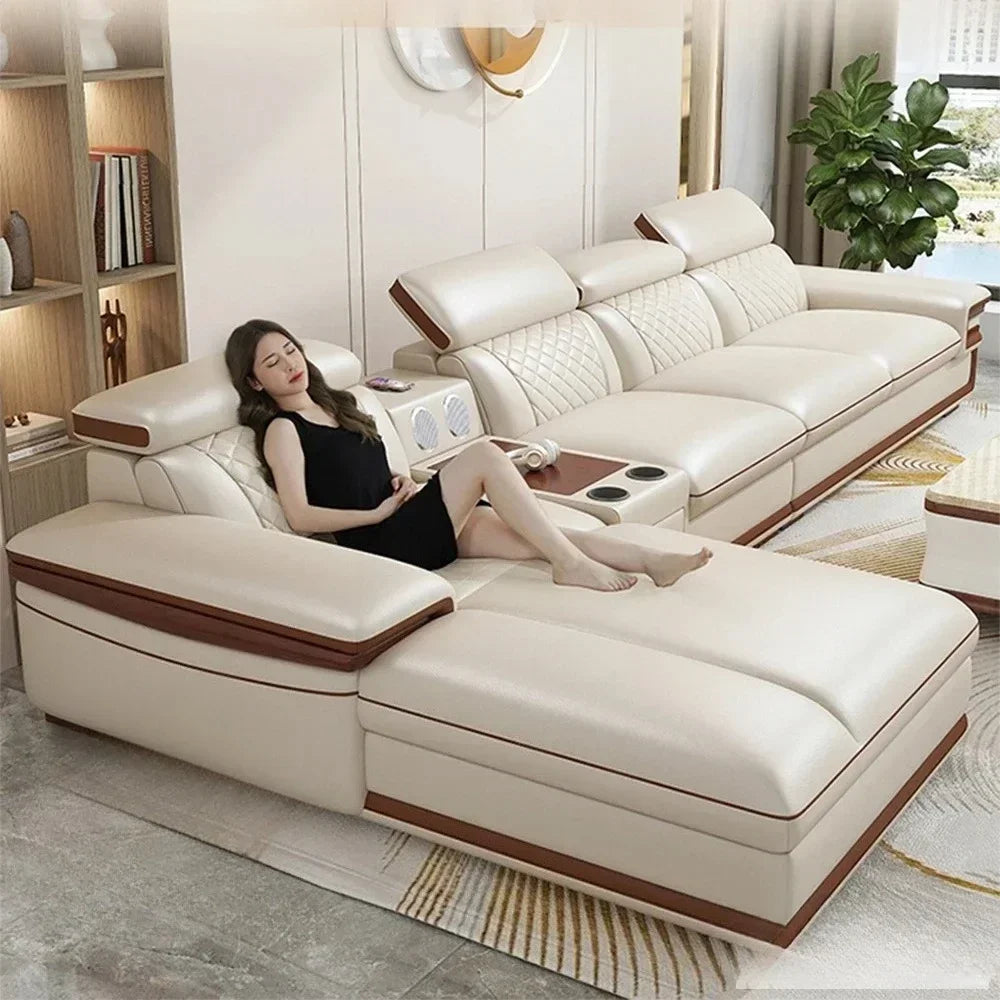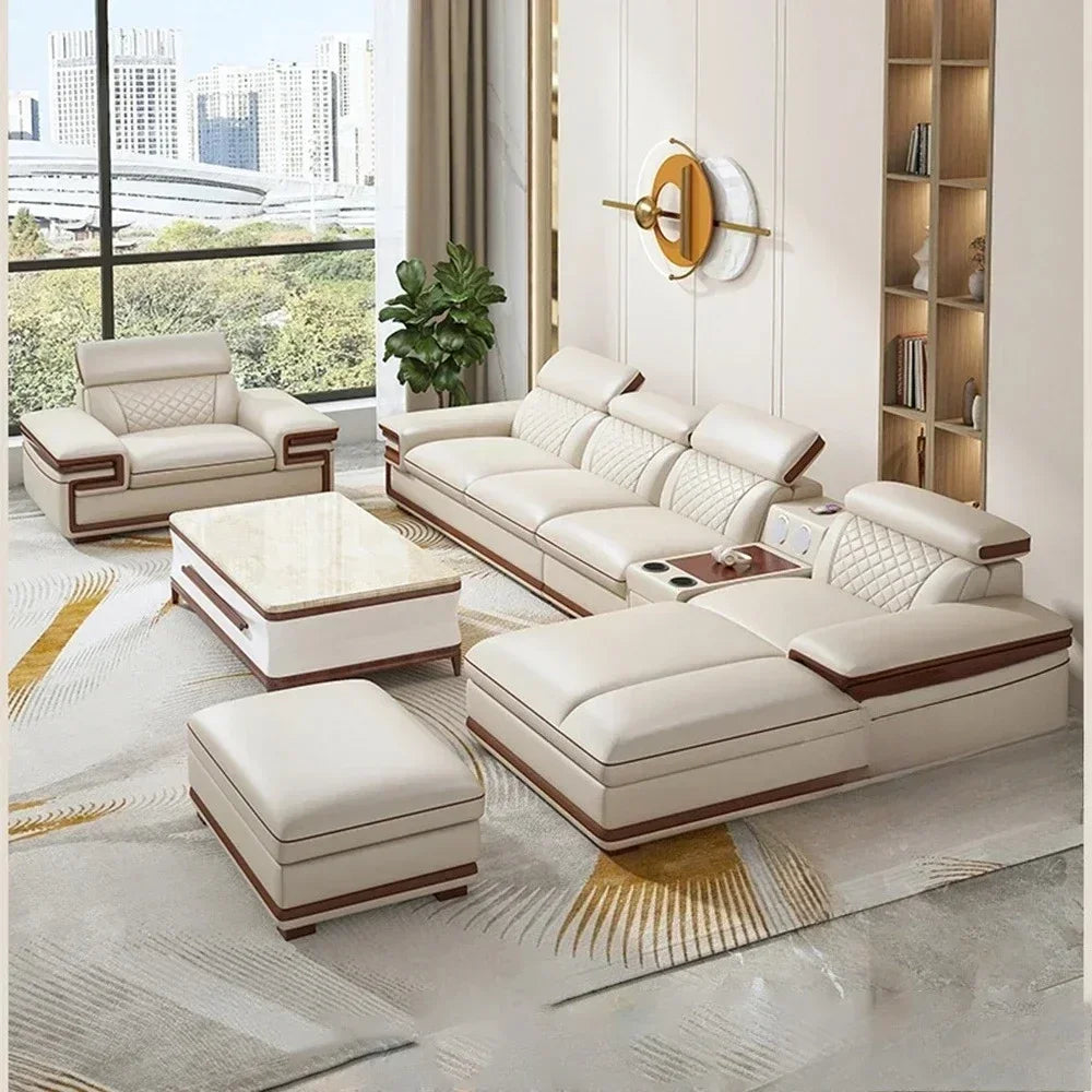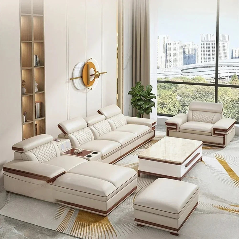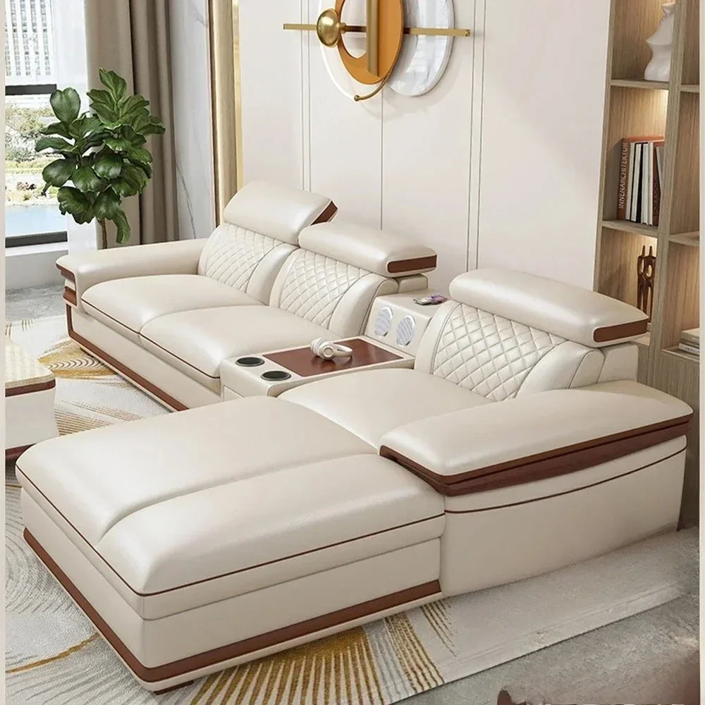 MINGDIBAO Premium Italian Genuine Leather Sofa Set for Living Room with Adjustable Headrests, Bluetooth Speaker, Wireless Charge