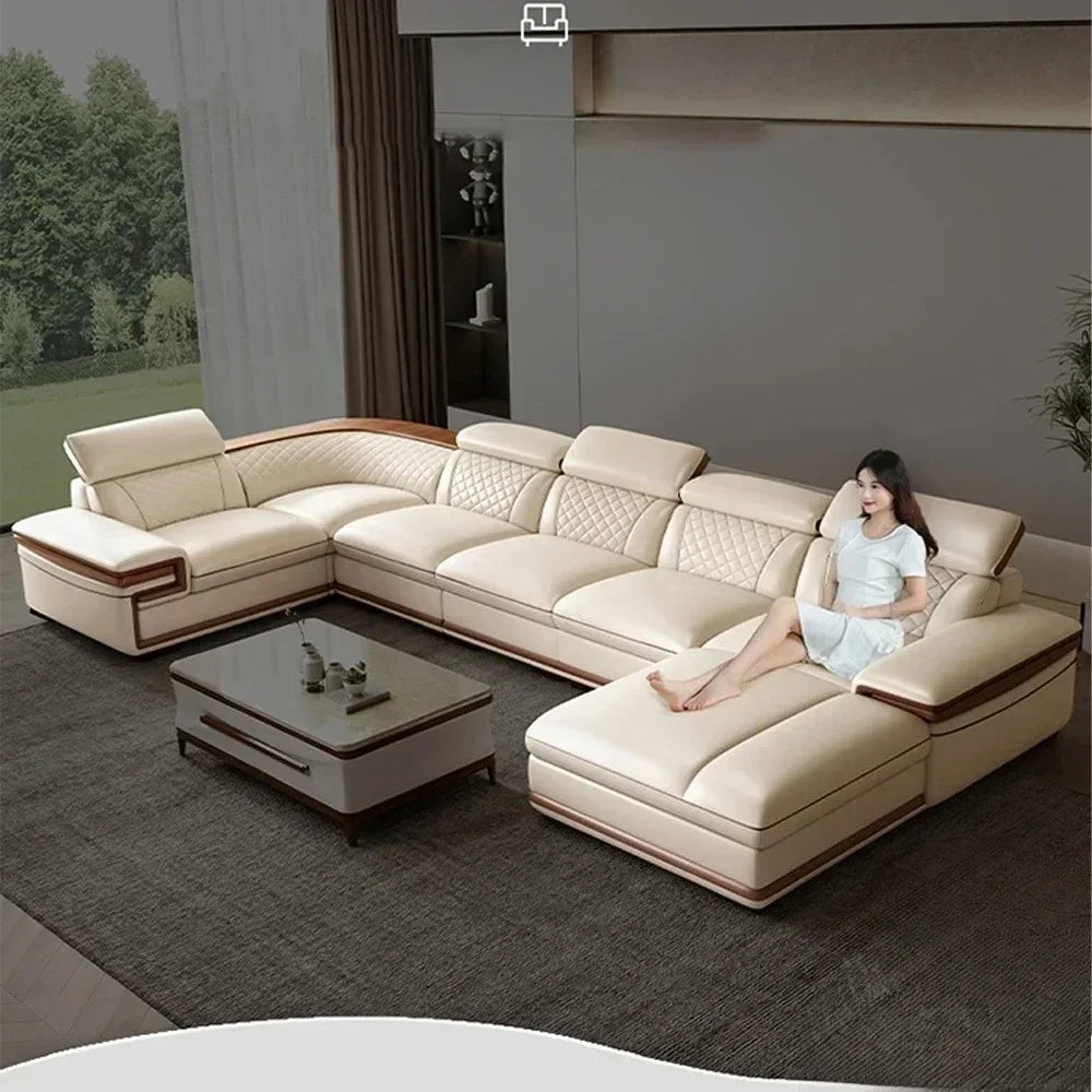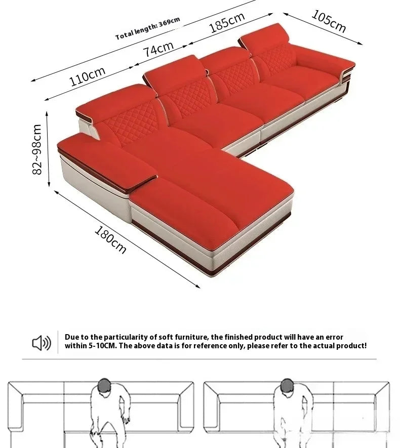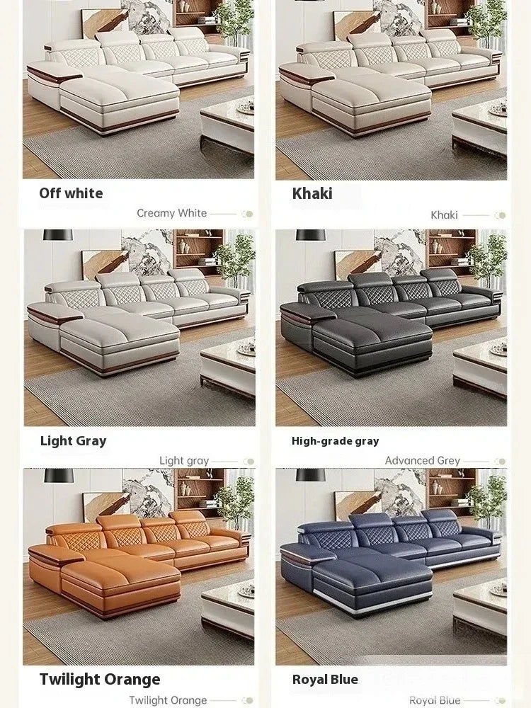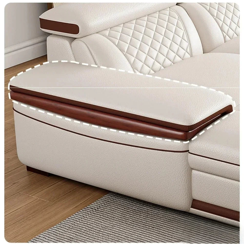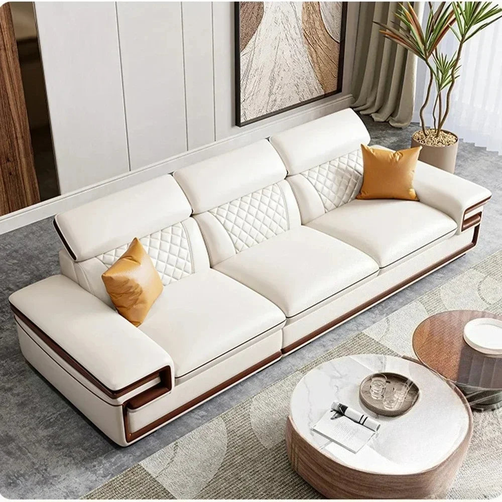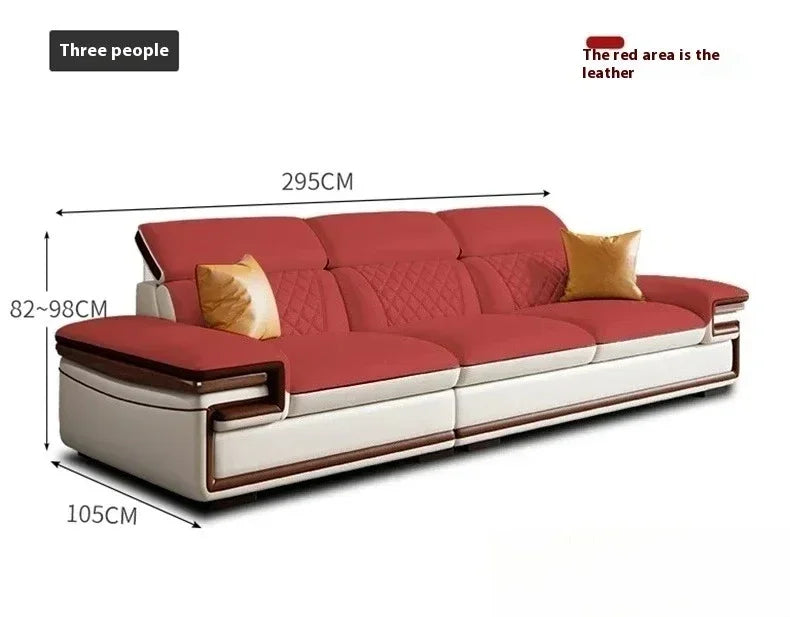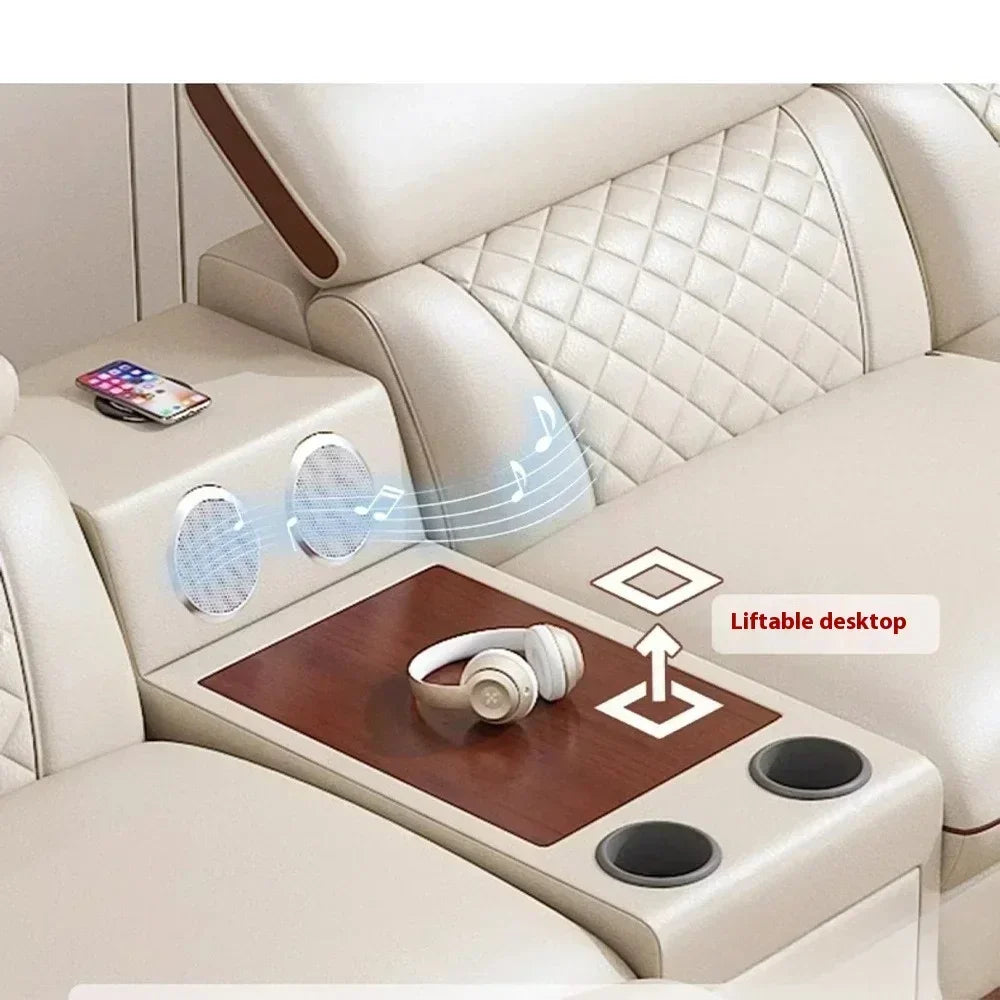 MINGDIBAO Premium Italian Genuine Leather Sofa Set for Living Room with Adjustable Headrests, Bluetooth Speaker, Wireless Charge