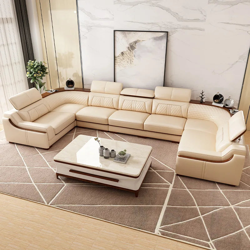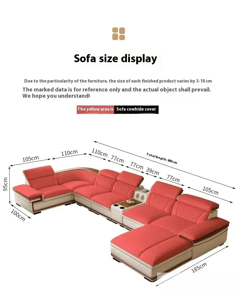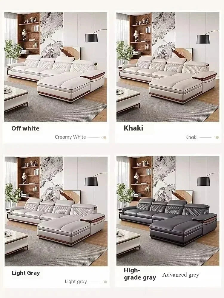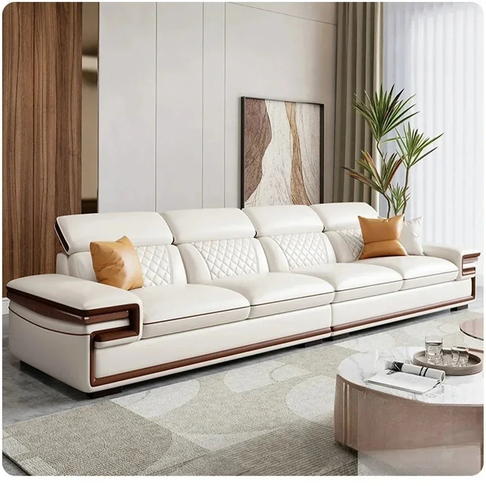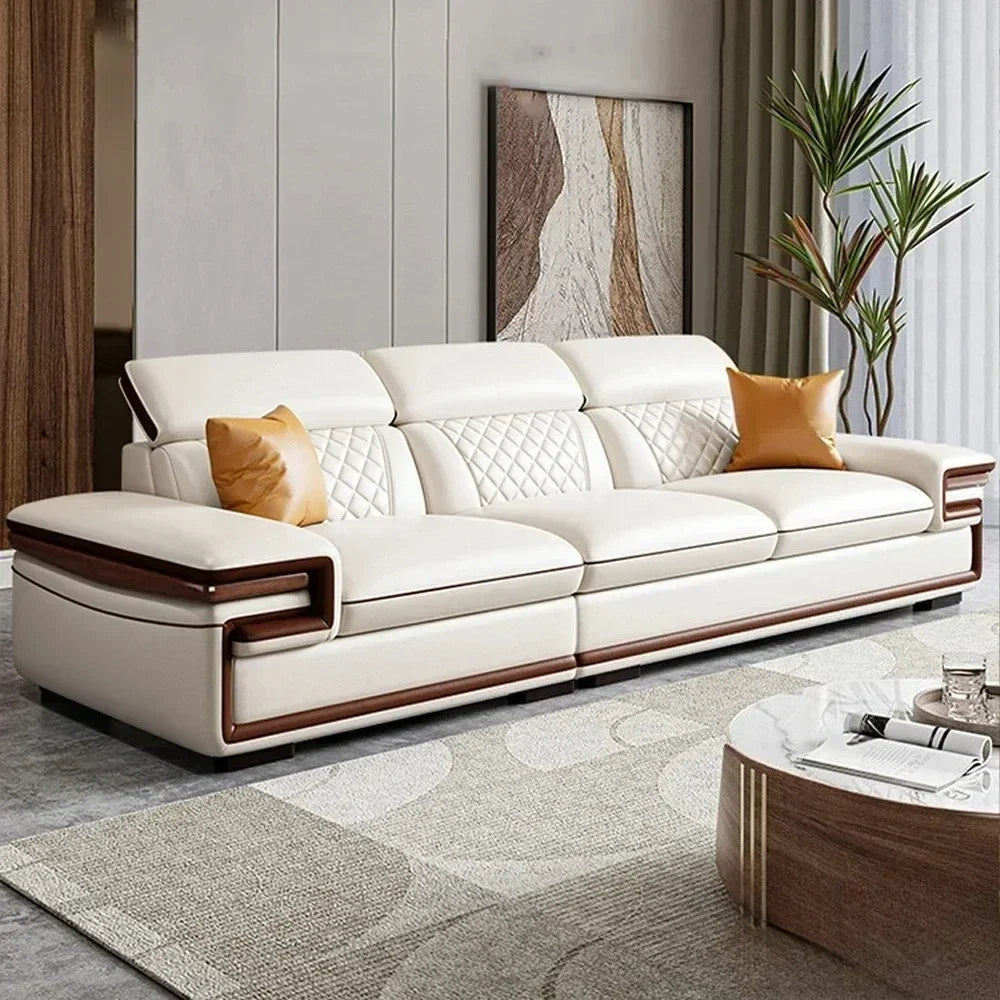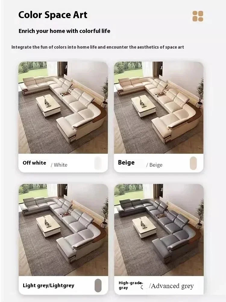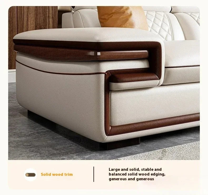 MINGDIBAO Premium Italian Genuine Leather Sofa Set for Living Room with Adjustable Headrests, Bluetooth Speaker, Wireless Charge