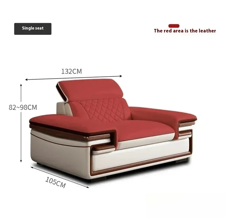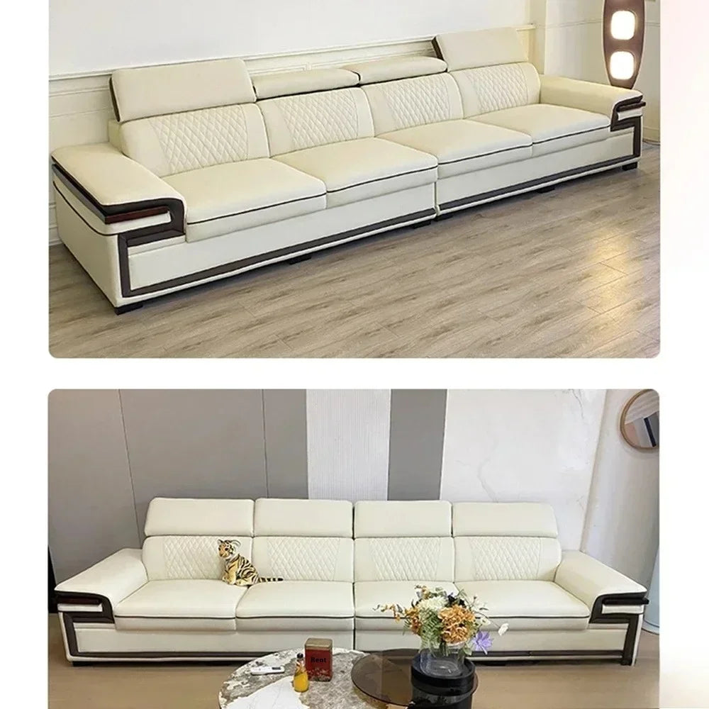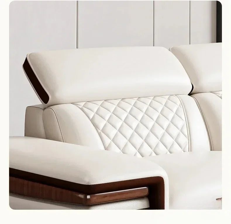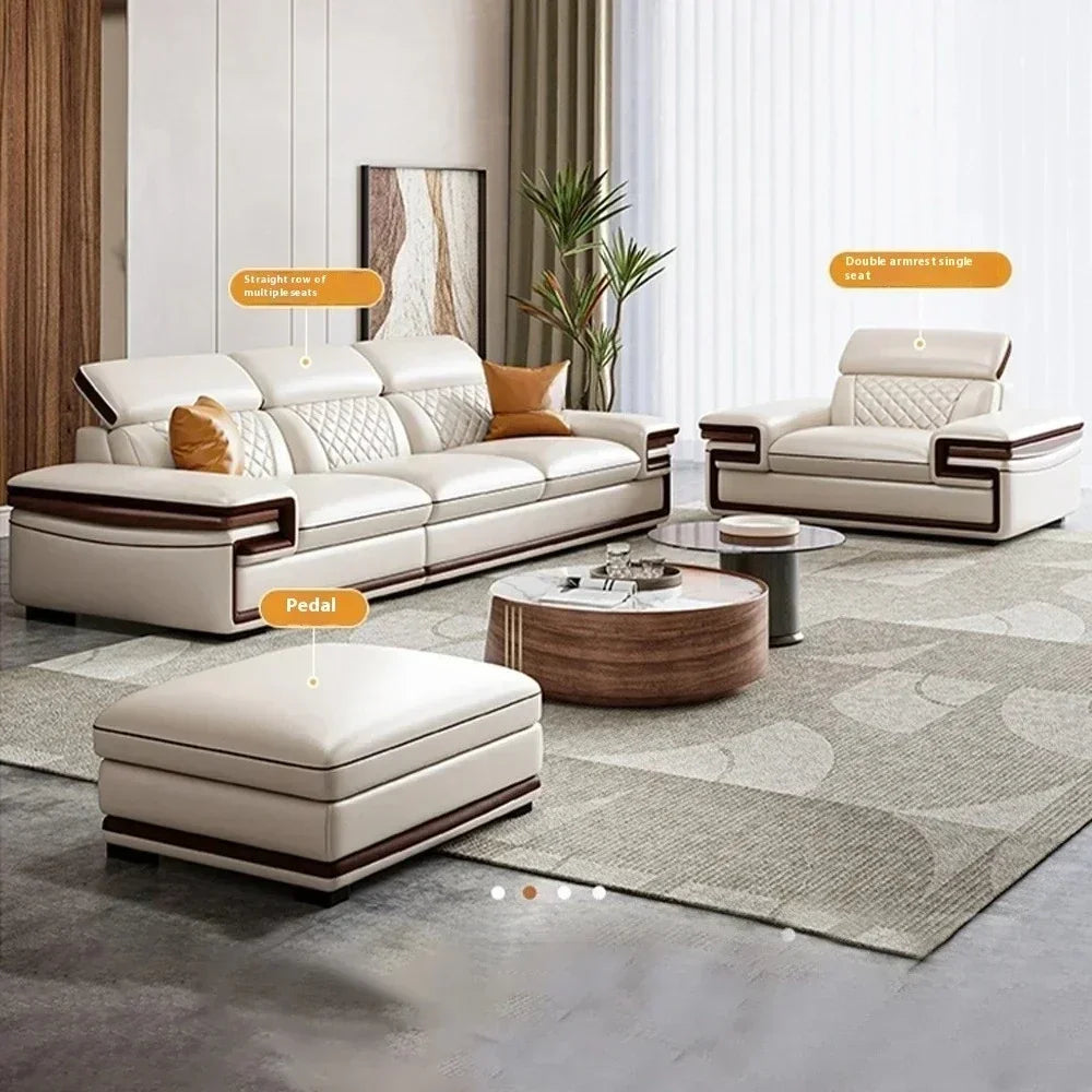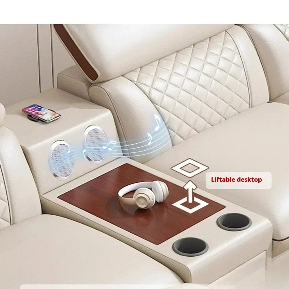 MINGDIBAO Premium Italian Genuine Leather Sofa Set for Living Room with Adjustable Headrests and Built-in Bluetooth Speaker, USB