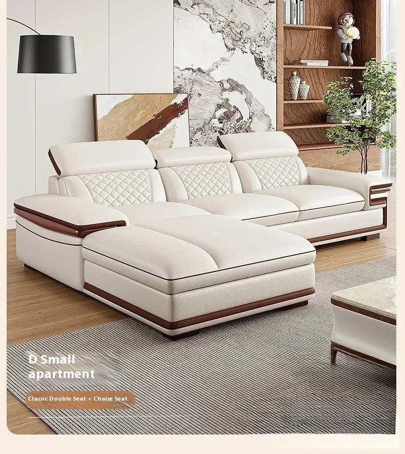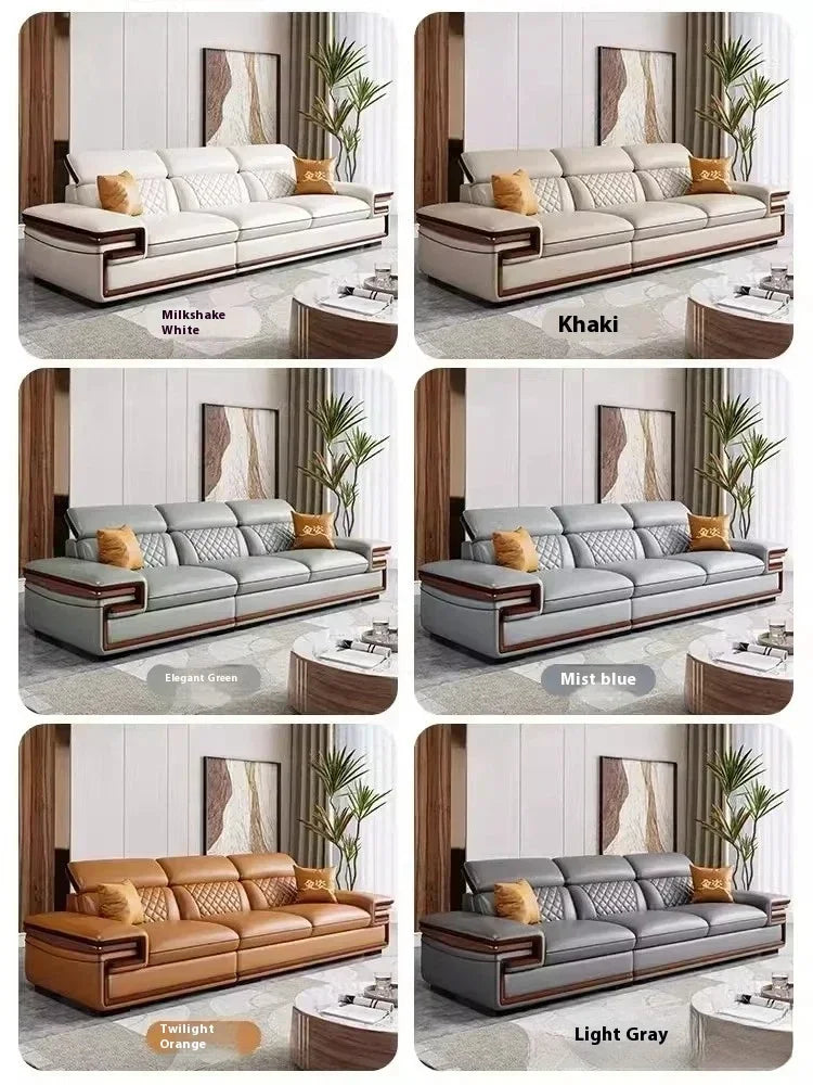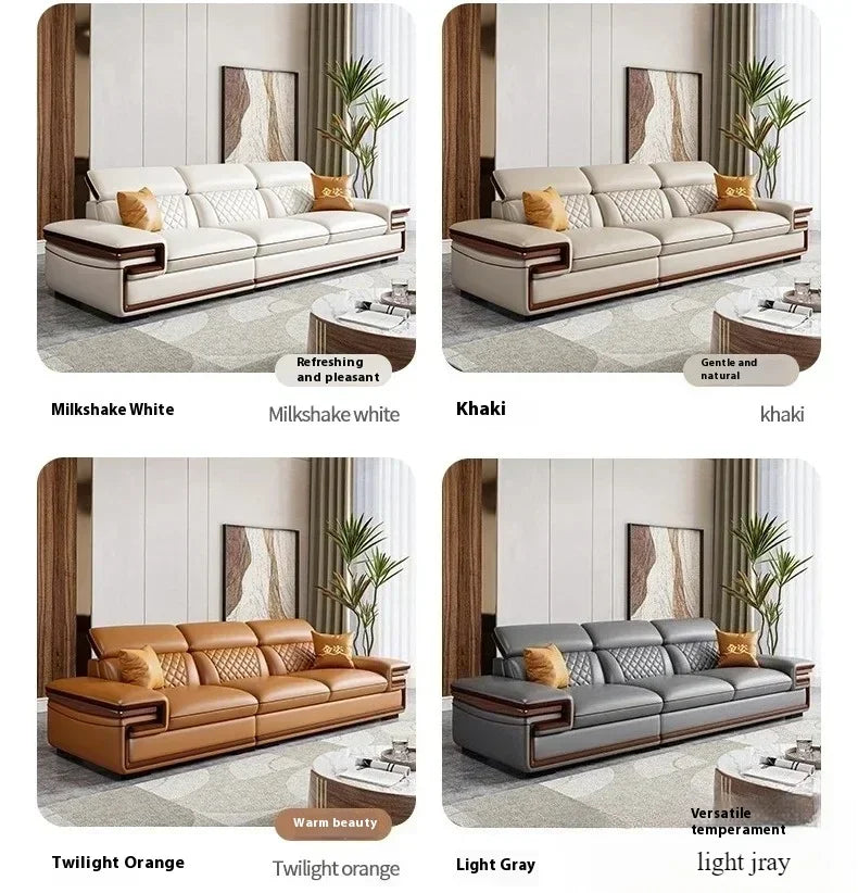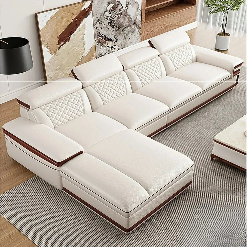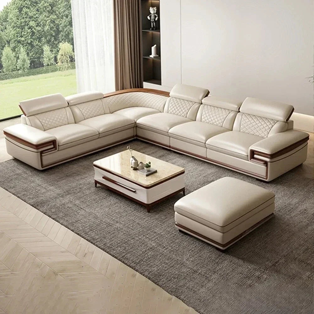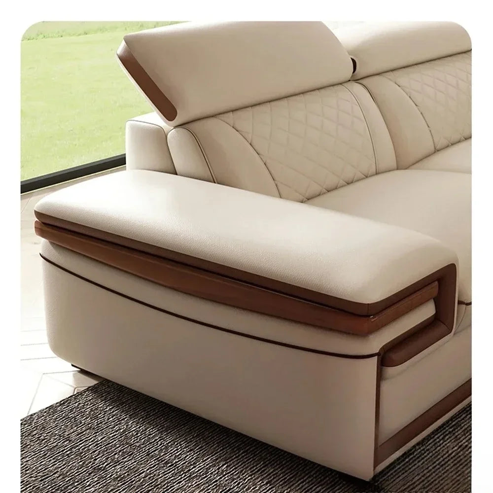 MINGDIBAO Premium Italian Genuine Leather Sofa Set for Living Room with Adjustable Headrests and Built-in Bluetooth Speaker, USB