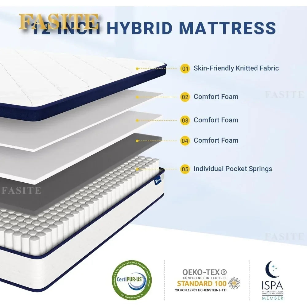 Mixed Spring Mattress with Comfortable Foam and Pocket Coil 12 Inch Box Full Mattress