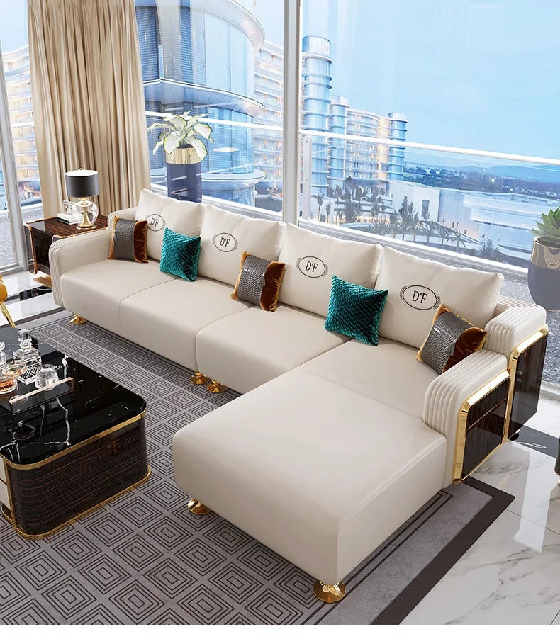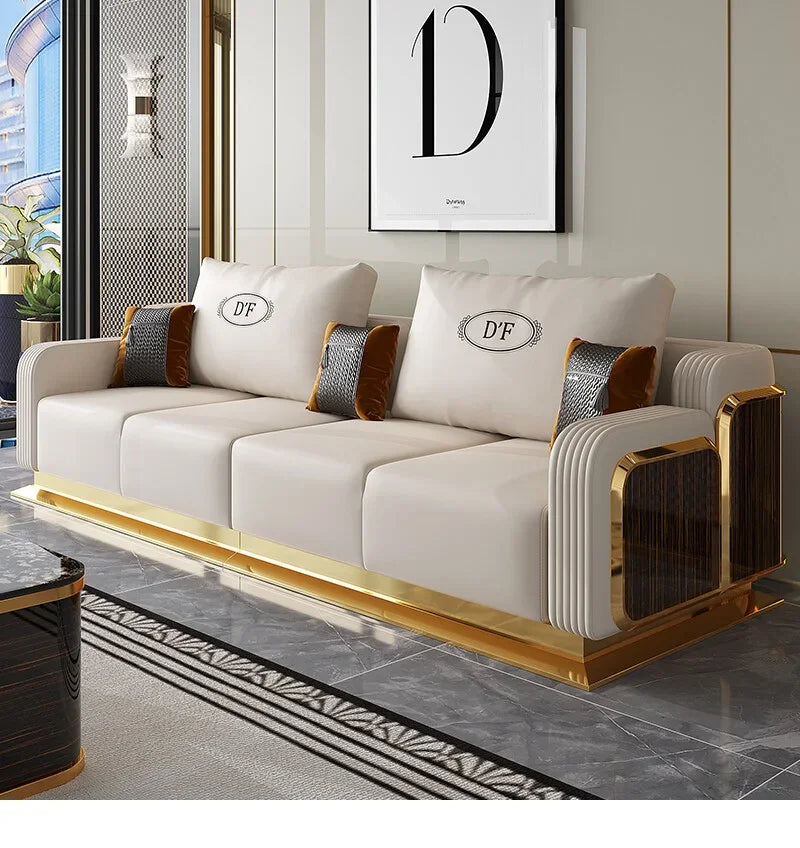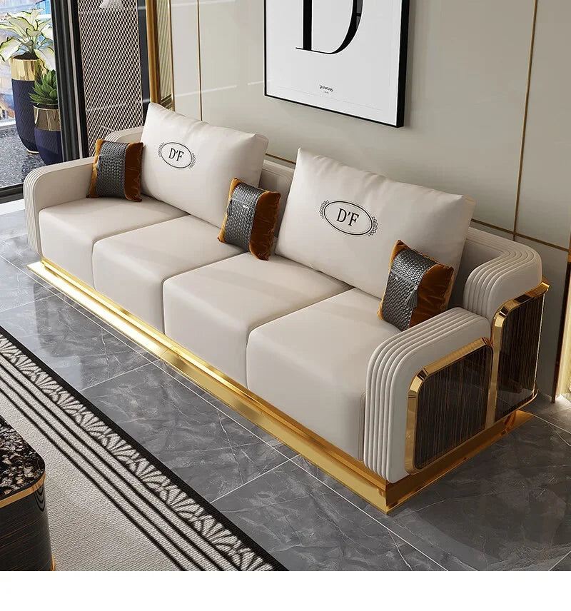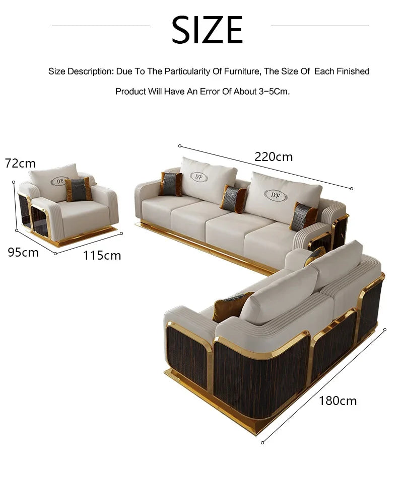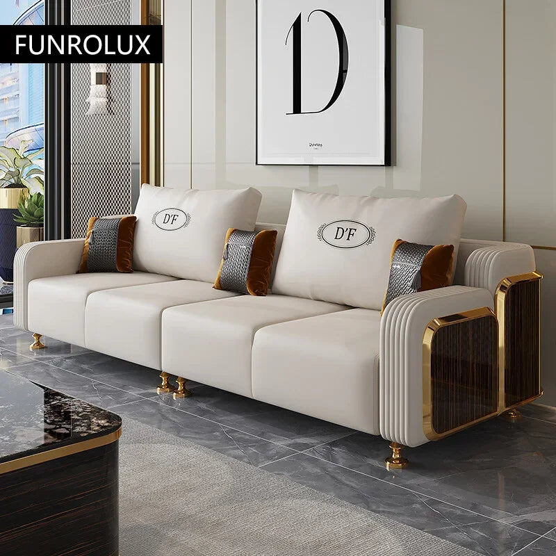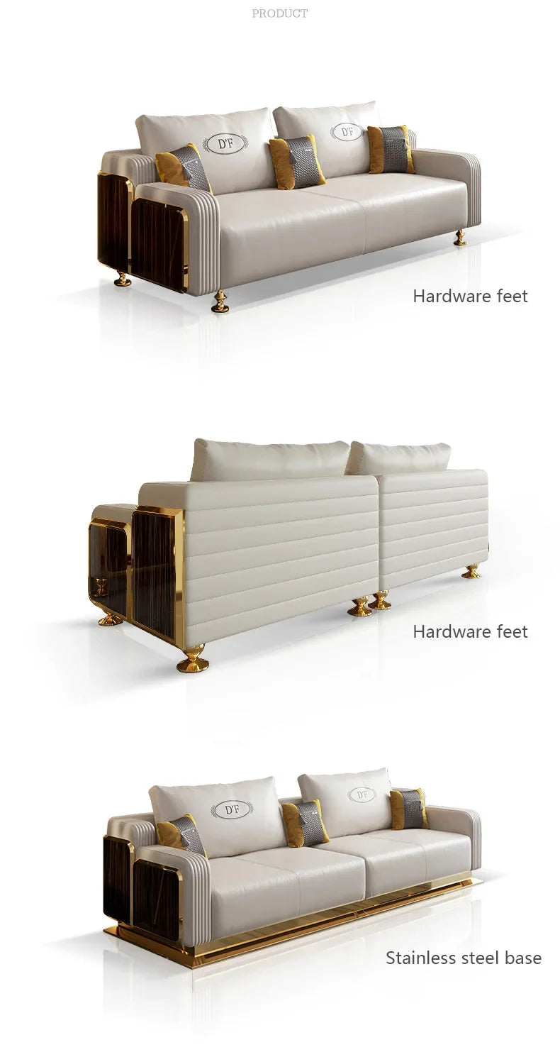 Modern Luxury Leather with Wooden Sofa Set, Fashion 2/3/4 Seater Sofa, Leather Couch for Living Room Accept Customzied Color