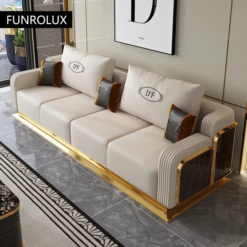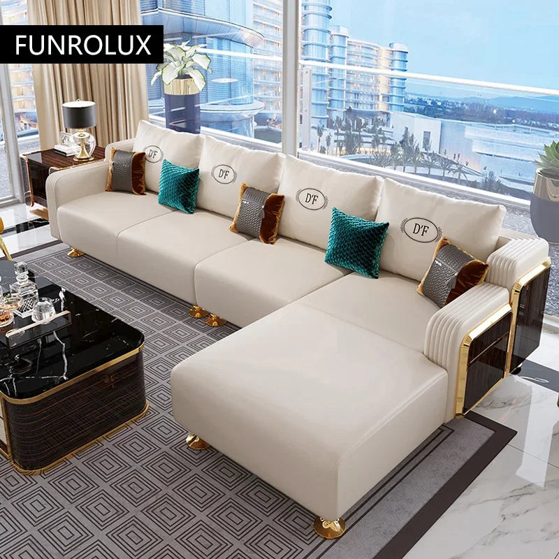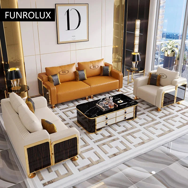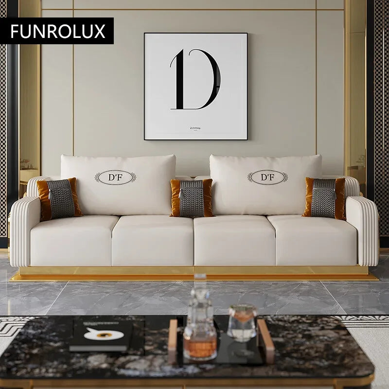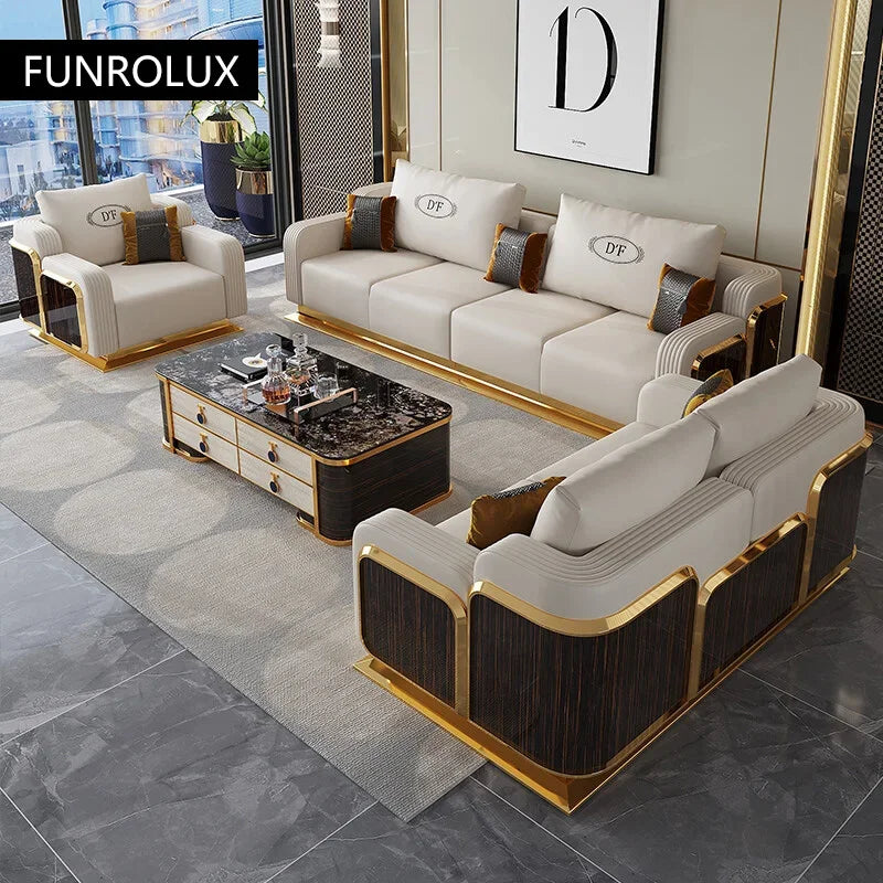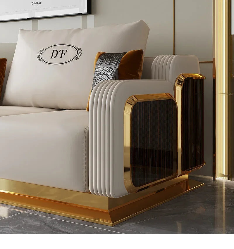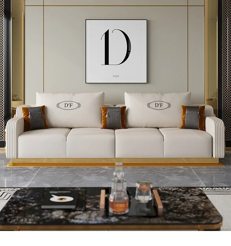 Modern Luxury Leather with Wooden Sofa Set, Fashion 2/3/4 Seater Sofa, Leather Couch for Living Room Accept Customzied Color